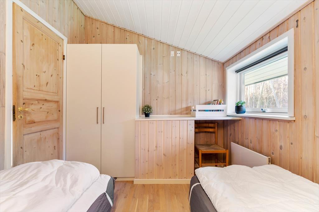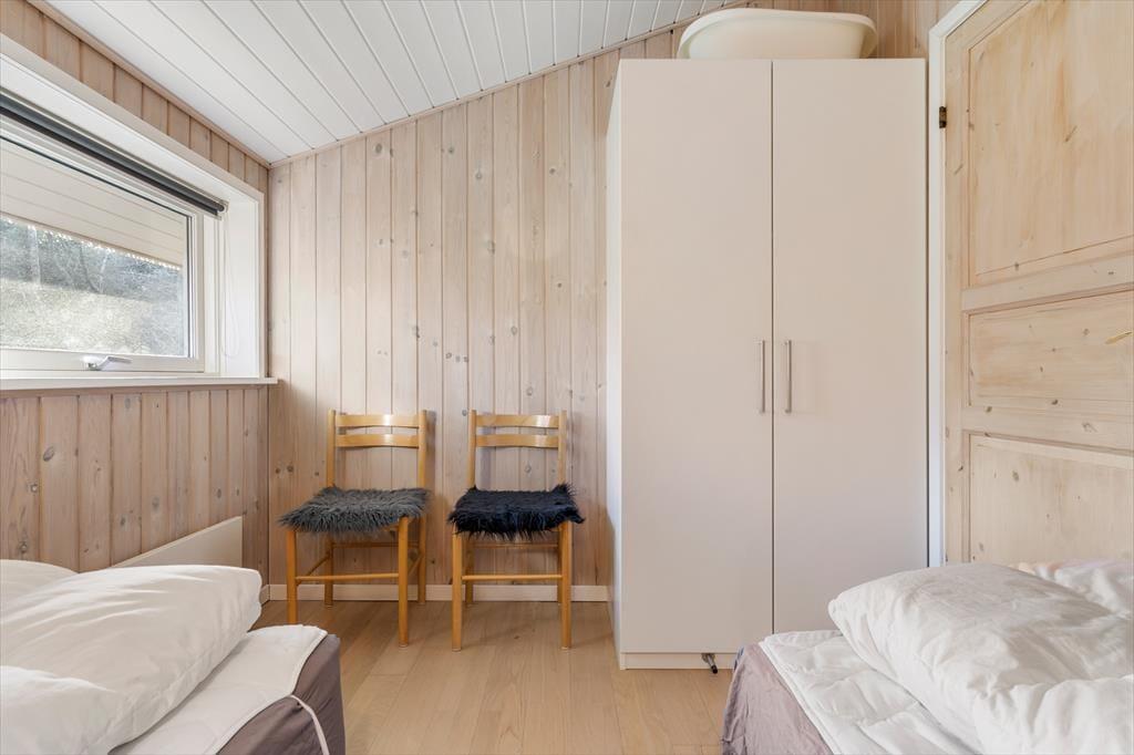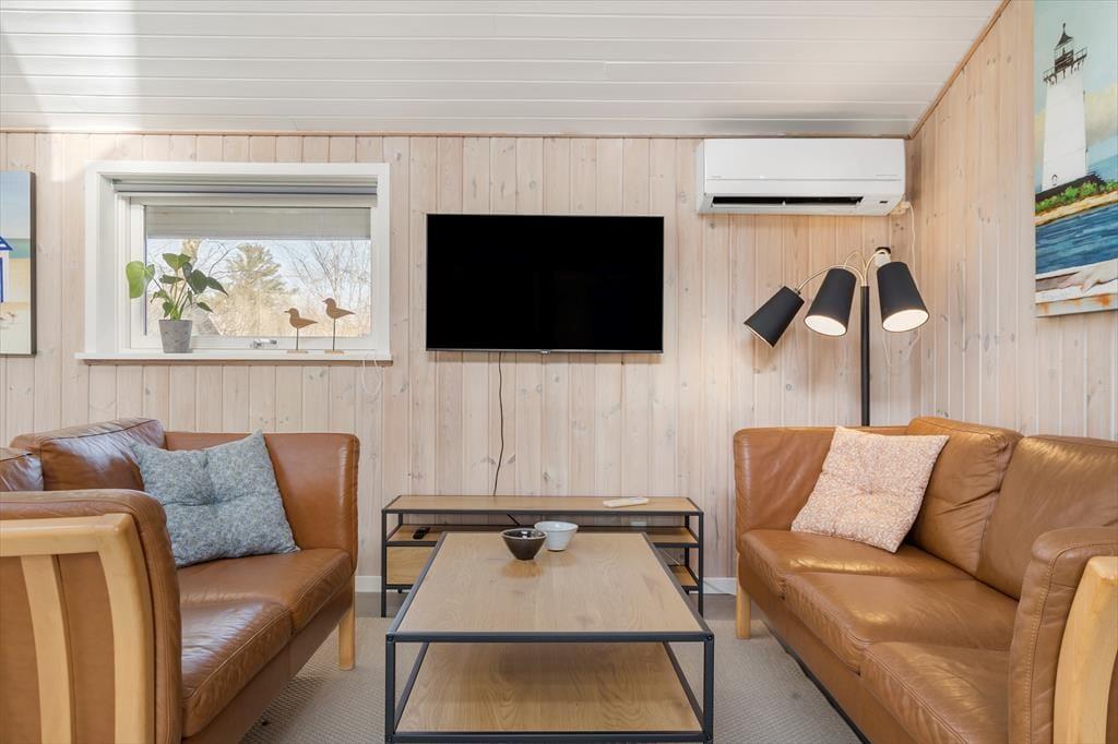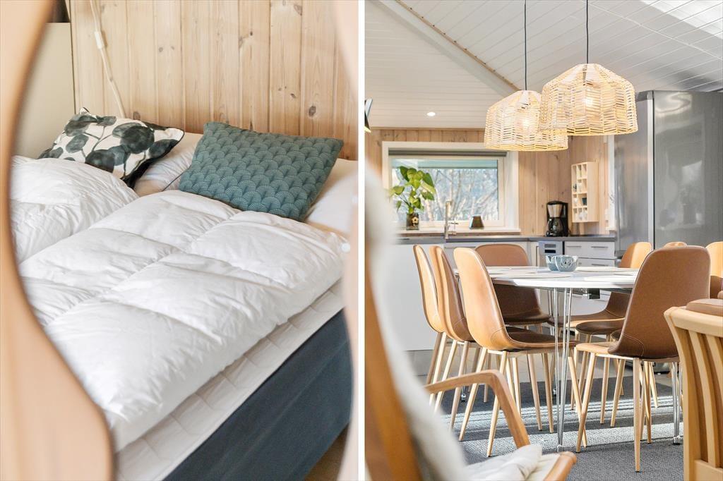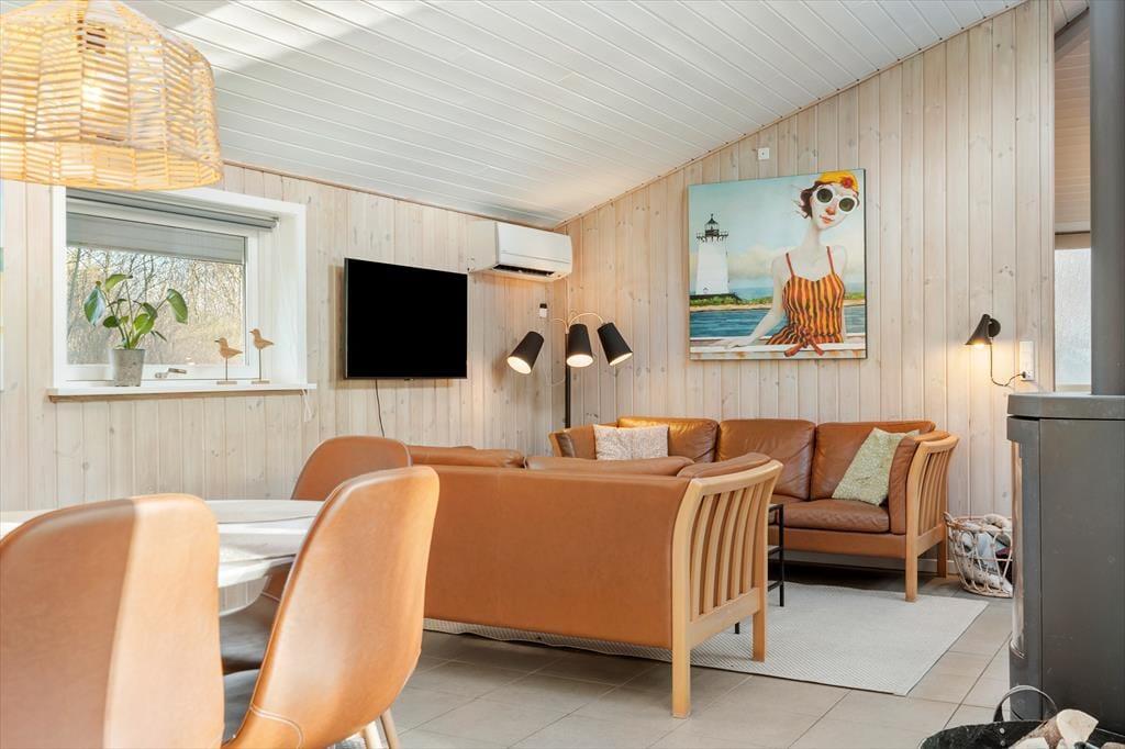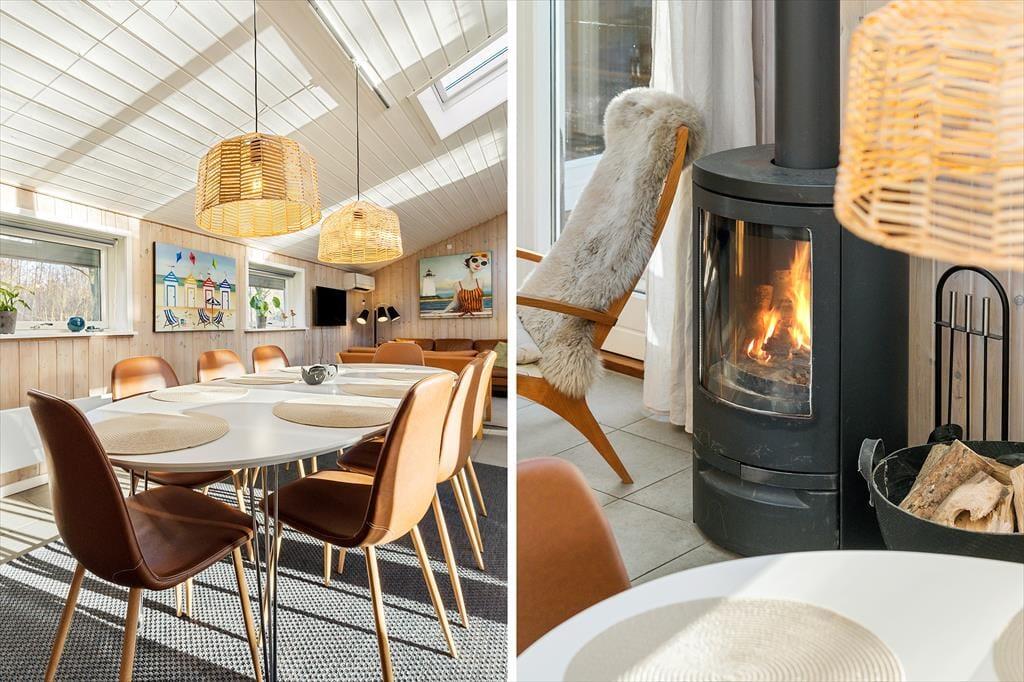 Det 110 m2 store sommerhus fremstår pænt og velholdt, og der er foretaget yderligere forbedringer her i 2024. Blandt andet er alle lofter malet hvide og der er blevet opgraderet på møbler og interiør. I opholdsrummet er der brændeovn og varmepumpe, og de store glaspartier skaber en god kontakt til terrassemiljøet. Også på de fire soveværelser er der rart at være, så I kan se frem til at sove godt og længe, og når det er tid til at stå op igen, kan I få et opkvikkende brus på de to badeværelser. På det ene badeværelse er der sauna, så hvis I kommer hjem efter en vandretur på klitheden eller en dag på surfbrættet, kan I genfinde energien i varmen.