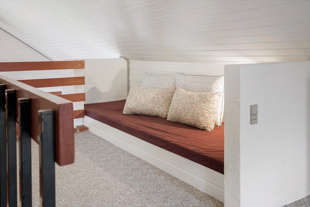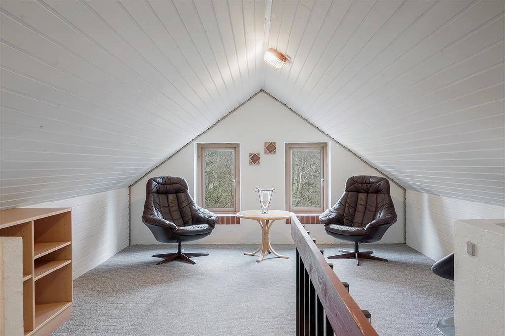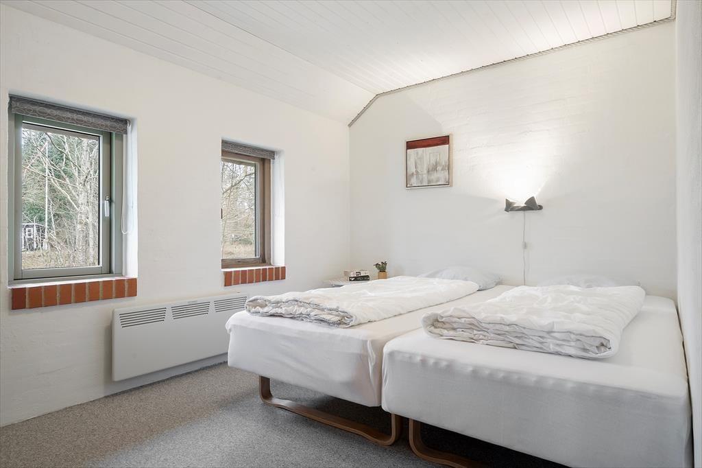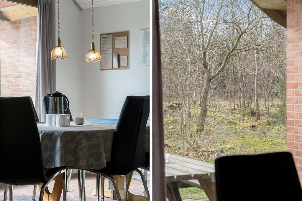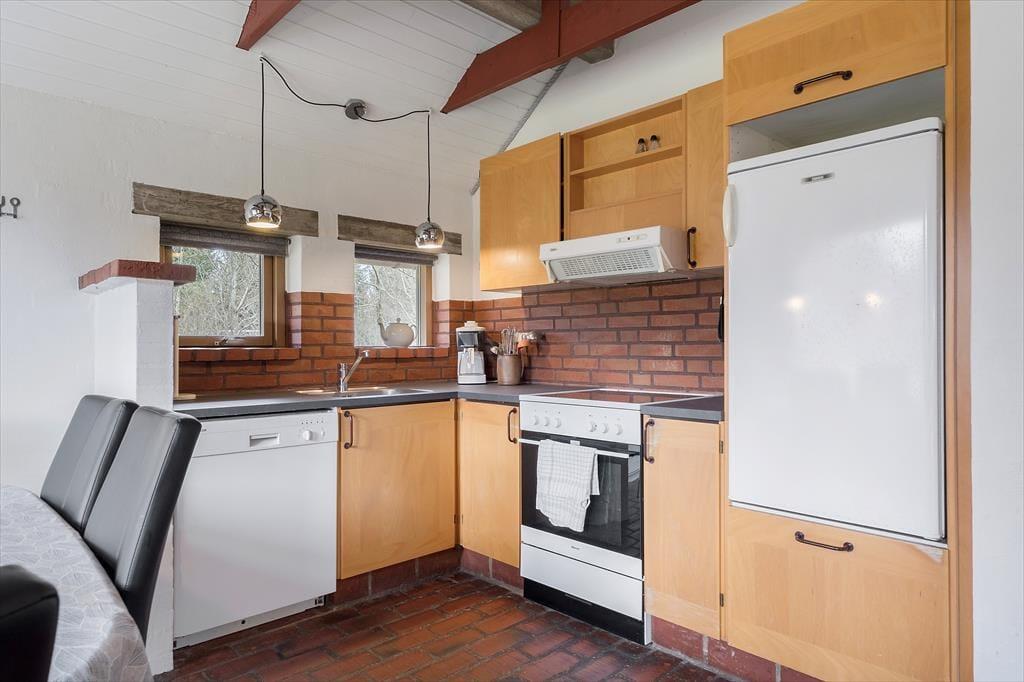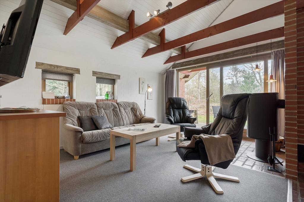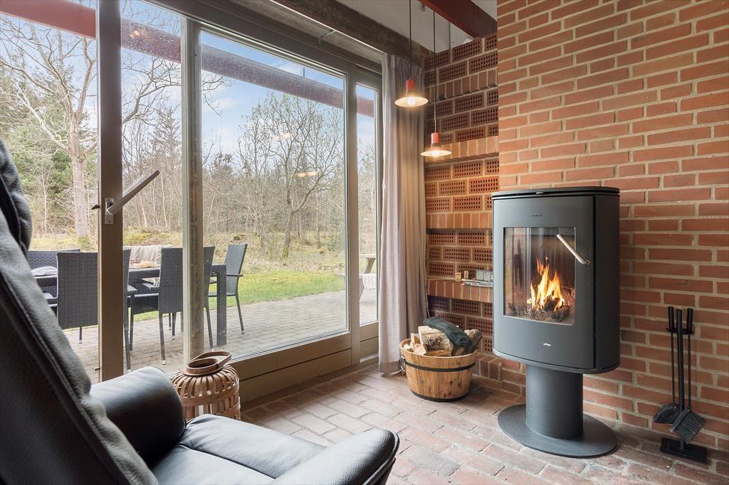 Huset byder på et hyggeligt og veludstyret køkken med opvaskemaskine. En stue der er i åben forbindelse med køkkenet og medloft til kip. Der er fin udsigt ud i haven fra de store vinduer og man får fornemmelsen af, at skoven bliver trukket ind i huset. I stuen er der en god sofa og 2 lænestole. Her kan man slappe af foran TV-et eller nyde flammerne i den lune brændeovn, efter en dag med gode oplevelser eller badetur på stranden. Der er 2 store soveværelser med dobbeltsenge og masser af skabsplads, derudover også et godt værelse med 2 enkeltsenge. På husets 1. sal er der en lille hems, her kan man trække sig tilbage hvis man vil sidde i ro med en god bog eller kigge ud på naturen, mens familien ser TV nedenunder. På hemsen er der også et lille åbent rum ved trappen, her kan børnene lade fantasien få frit løb og lege hule. På badeværelset er der foruden toilet og bruser også vaskemaskine og tørretumbler. Her er også adgang til en lille sauna med plads til 2 personer. Der er gulvvarme i badeværelse og sauna. Gratis internetforbindelse i huset og både din hund eller kat er velkommen, så ingen skal blive hjemme fra ferien. Book en miniferie i huset og hele familien kan se frem til spændende oplevelser.