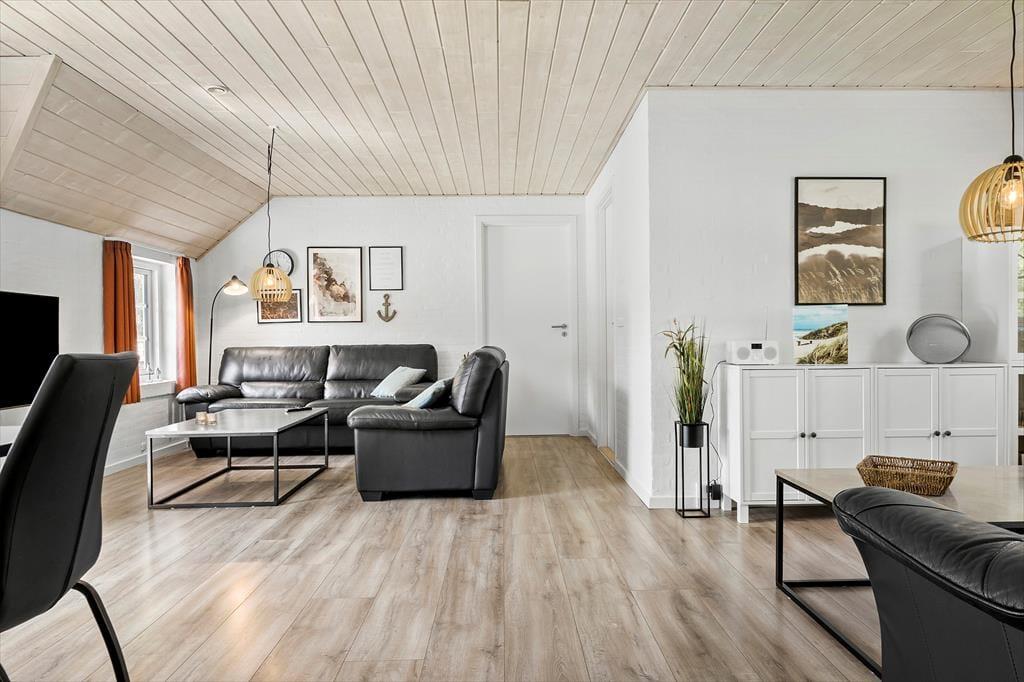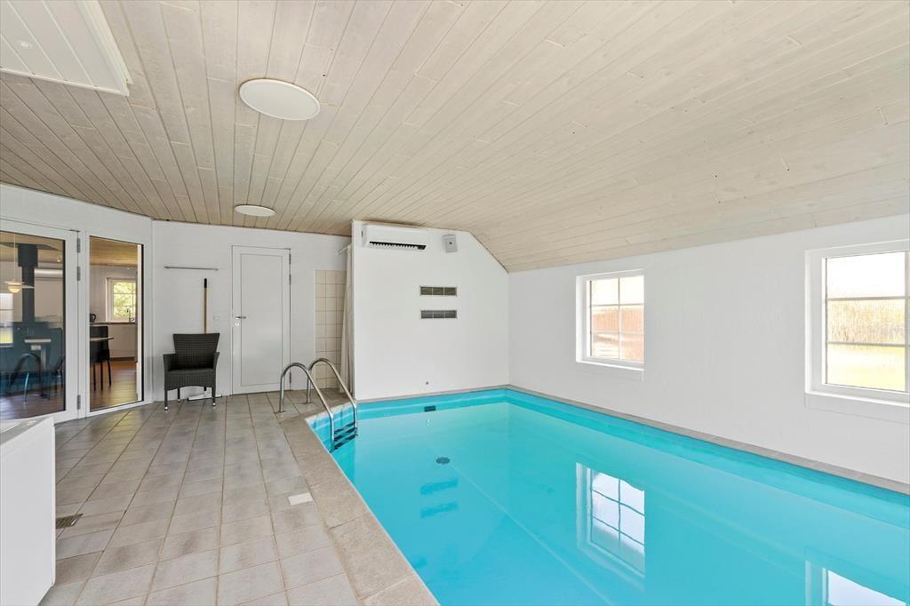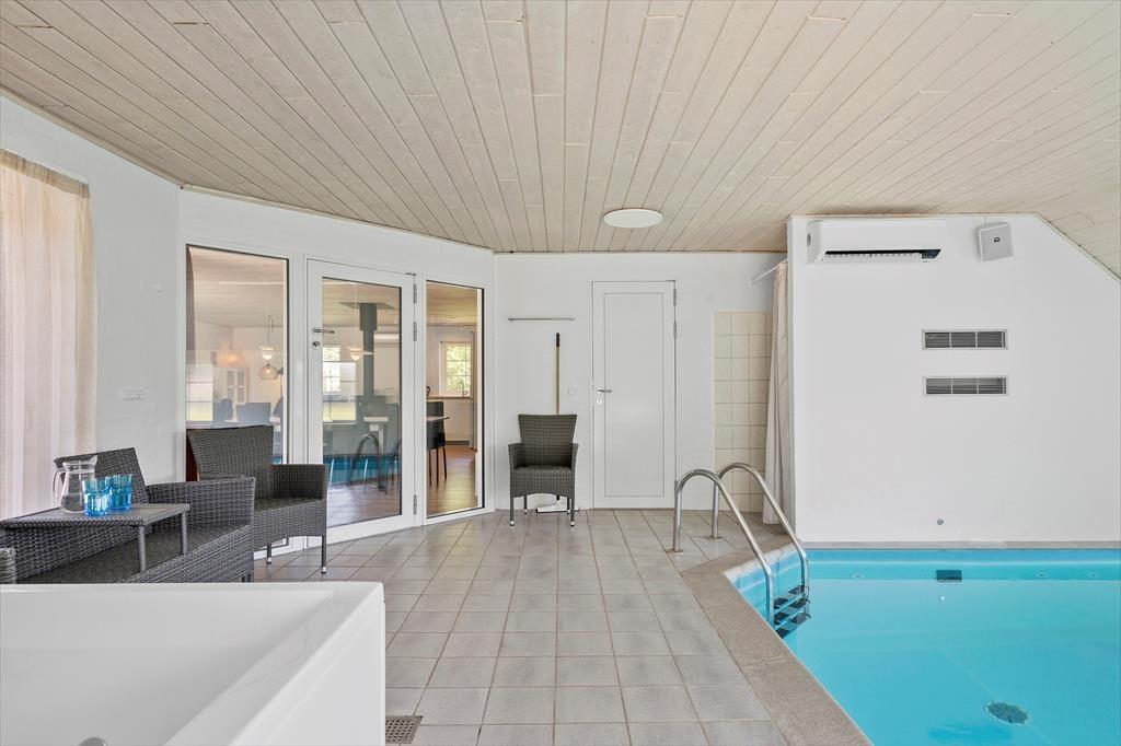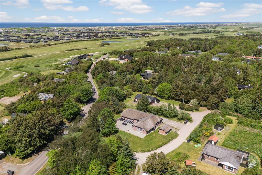 Når du holder ferie i dette store og skønne kvalitetssommerhus, bor du tæt på Søndervig Strand, Ringkøbing Fjord og Holmsland Klit Golfklub – og det er bare et lille udvalg af alt det skønne, du har i vente i lokalområdet. Selvom der er meget at se og opleve på egnen, er det nu fristende at blive hjemme i sommerhuset, for det byder blandt andet på en lækker poolafdeling, seks gode soveværelser og et solrigt terrassemiljø i den grønne have.