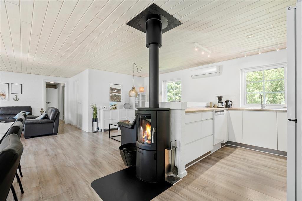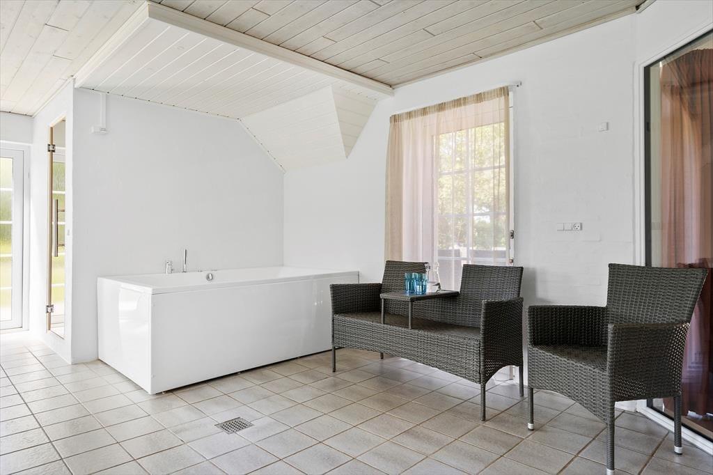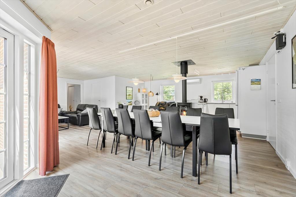 Når der er hele 204 m2 at gøre godt med inden døre, er det selvfølgelig oplagt at deles om pladsen med andre. Den gennemtænkte planløsning gør det muligt at samles helt op til 14 personer, så hvis du er i gang med at arrangere en ferie for den store familie eller måske to eller tre børnefamilier, er huset et rigtig godt bud. Børnene vil helt sikkert synes, at det er fantastisk at have en swimmingpool i huset – og mon ikke de voksne også vil elske den såvel som spabadet og saunaen, når det er tid til wellness og afslapning. I det lyse opholdsrum får I en skøn ramme om madlavning, måltider og sofahygge, og når det er sengetid, kan I sige godnat og fordele jer på soveværelserne.