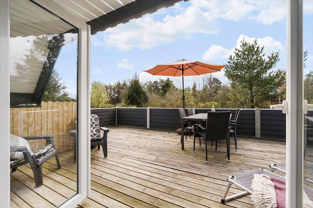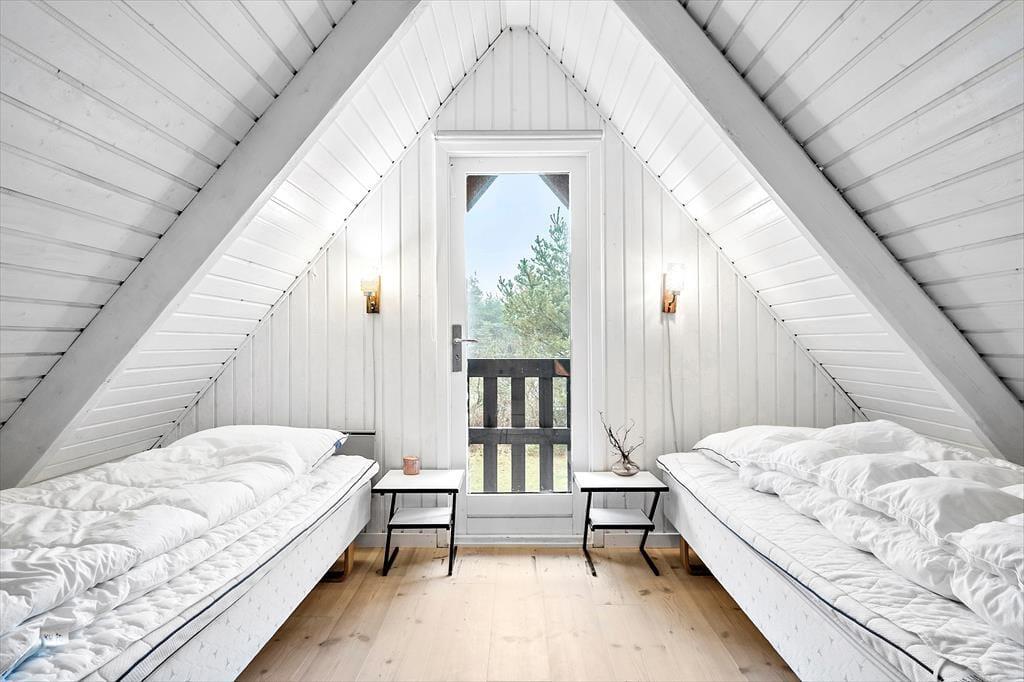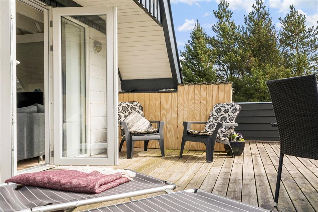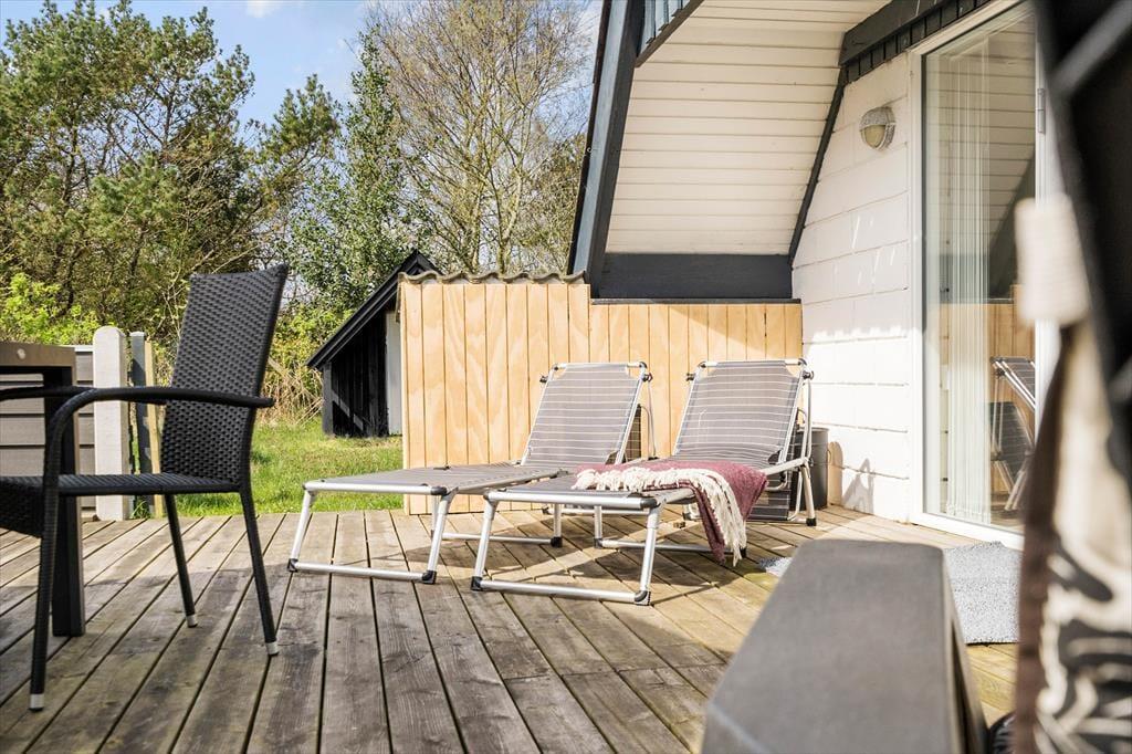 Huset ligger skønt placeret for enden af en vej, og fra grunden har I direkte adgang til en sti, som I kan følge langs med sommerhusområdet og videre ned mod Houvig Strand. En gåtur til Vesterhavet er skøn i al slags vejr, men I kan selvfølgelig også blive i Lodberg Hede for at lege på legepladserne og fiske i den lokale ørredsø. Fra sommerhuset har I desuden kort afstand til Holmsland Klit Golfklub, og hvis I vil i badeland eller på restaurant, kommer I hurtigt frem til feriebyen Søndervig. En tur til Ringkøbing kan også anbefales, og hvis I er vilde med surfing og andre vandaktiviteter, er det perfekt at have både Ringkøbing Fjord og Vesterhavet i nærheden.