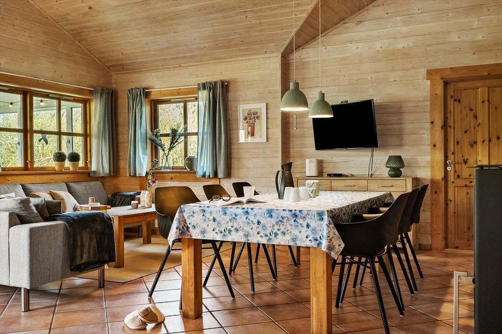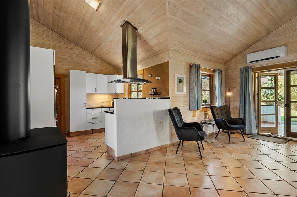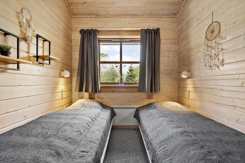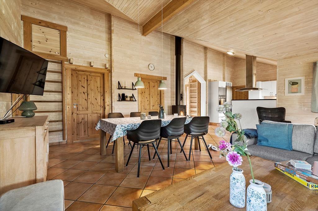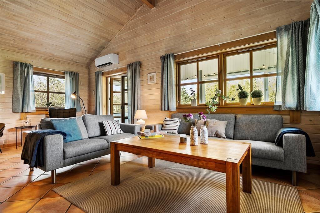 Når du træder ind i sommerhuset, bliver du mødt af en lys og rummelig atmosfære med højt til loftet og plads til nærvær. Hjerterummet er det store, åbne opholdsrum, hvor køkken, spiseplads og stue smelter sammen – perfekt til lange morgenmåltider, hyggelige kortspil og afslappende aftener foran brændeovnen. Store vinduespartier trækker naturen helt ind i stuen og skaber en rolig ramme om feriedagene. Når du har brug for lidt ekstra forkælelse, kan du tænde op i saunaen eller synke ned i spabadet på badeværelset – en perfekt afslutning på en lang strandtur. De fire gode værelser sikrer samtidig, at hele familien eller vennegruppen har hver sin base til afslapning og opladning.