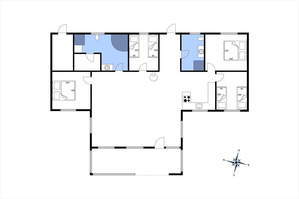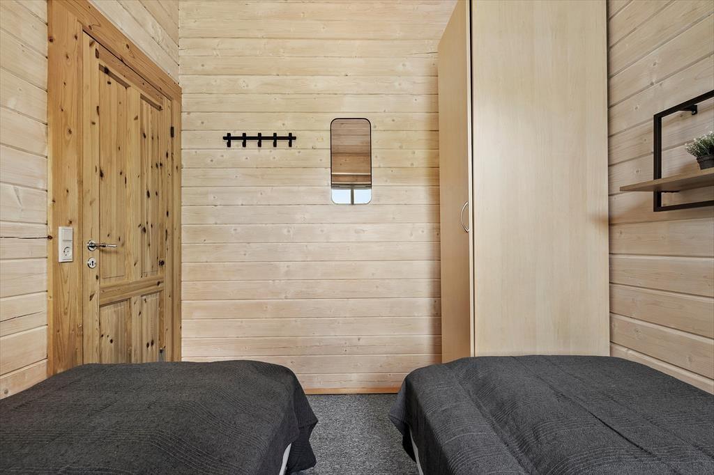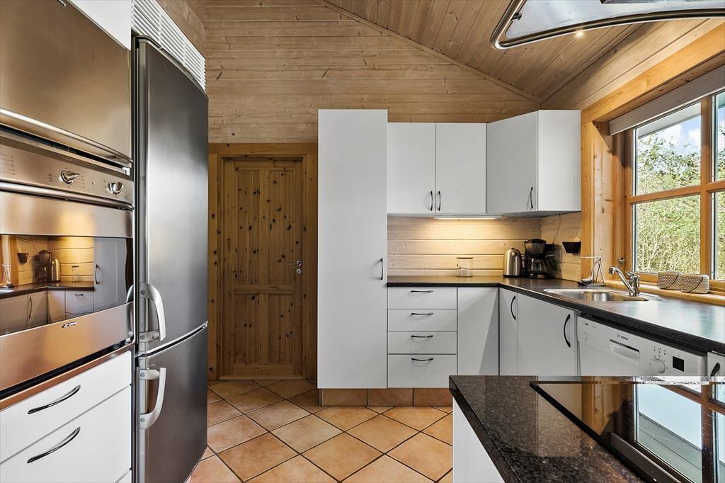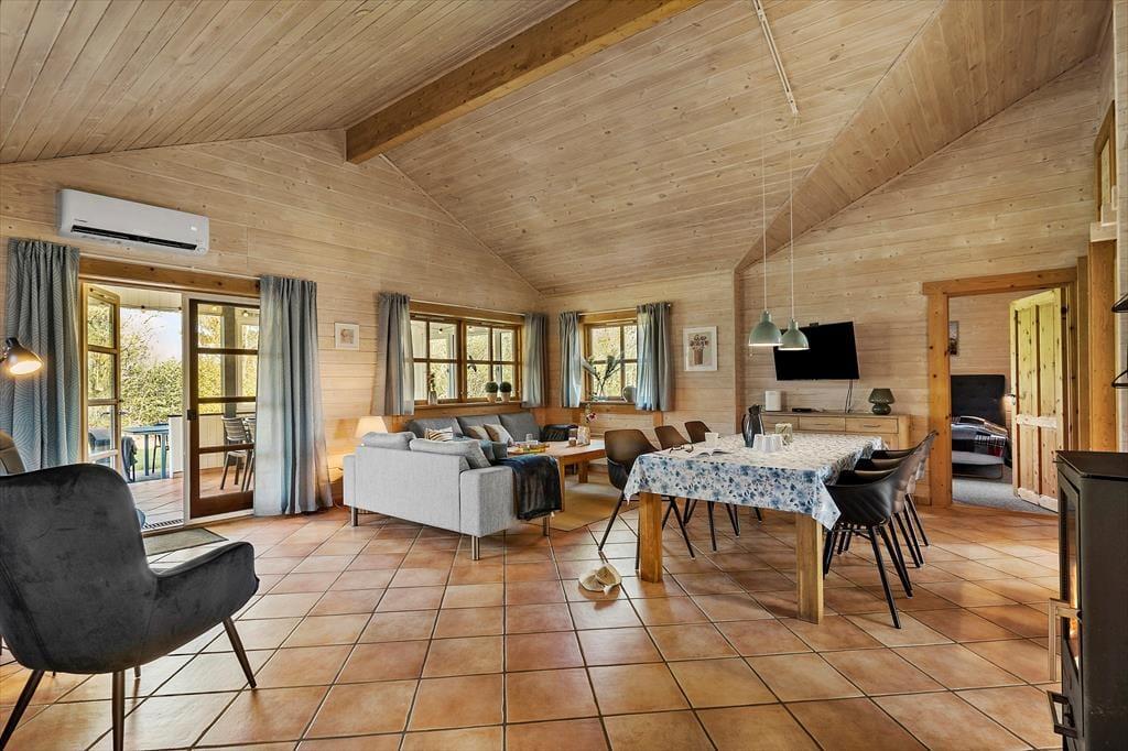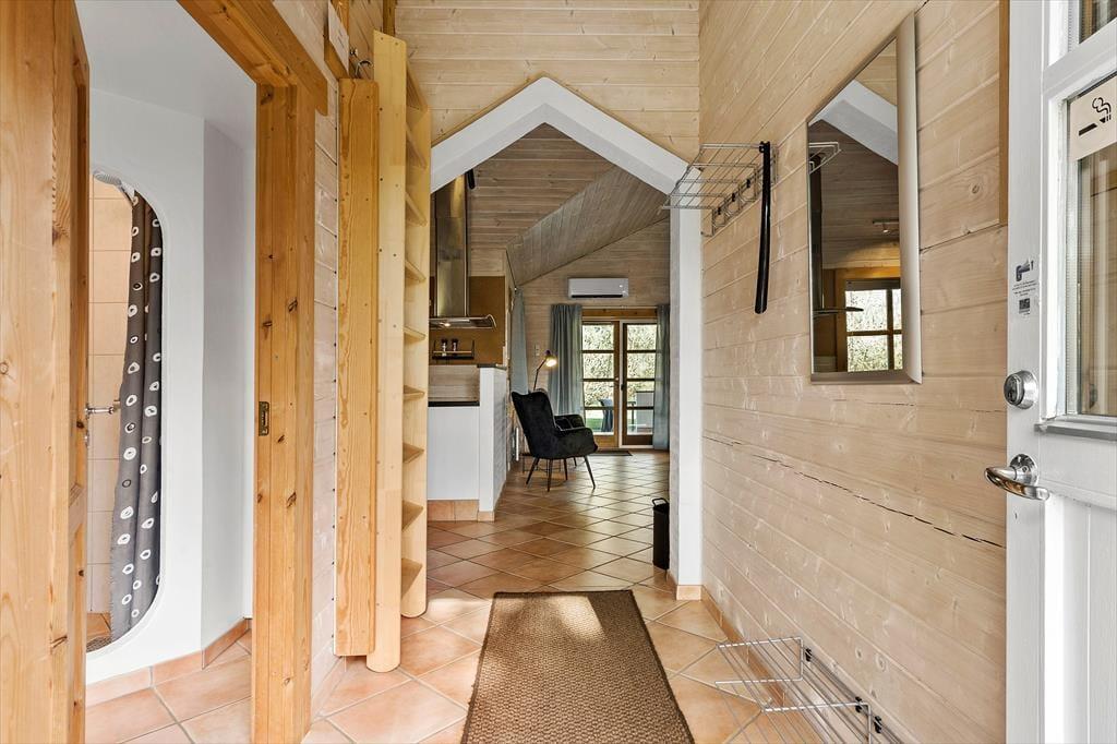 Når du træder ind i sommerhuset, bliver du mødt af en lys og rummelig atmosfære med højt til loftet og plads til nærvær. Hjerterummet er det store, åbne opholdsrum, hvor køkken, spiseplads og stue smelter sammen – perfekt til lange morgenmåltider, hyggelige kortspil og afslappende aftener foran brændeovnen. Store vinduespartier trækker naturen helt ind i stuen og skaber en rolig ramme om feriedagene. Når du har brug for lidt ekstra forkælelse, kan du tænde op i saunaen eller synke ned i spabadet på badeværelset – en perfekt afslutning på en lang strandtur. De fire gode værelser sikrer samtidig, at hele familien eller vennegruppen har hver sin base til afslapning og opladning.