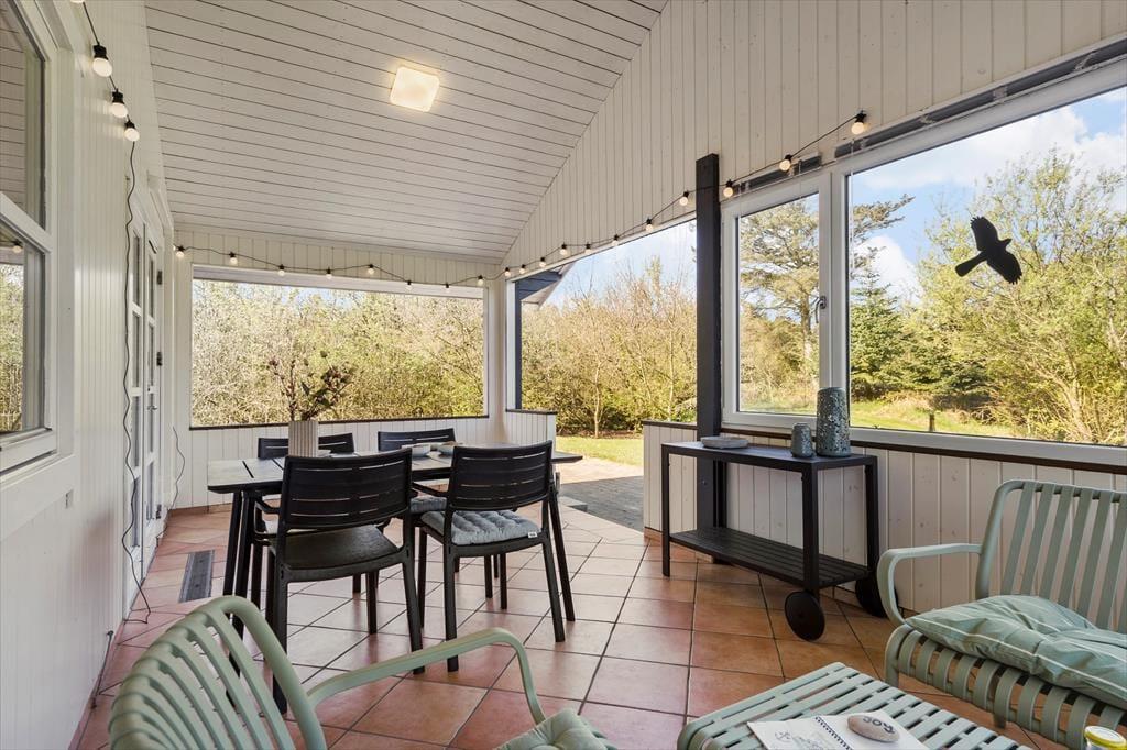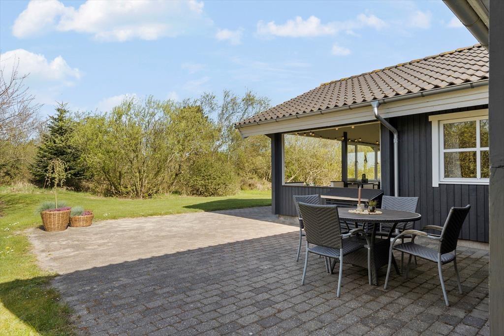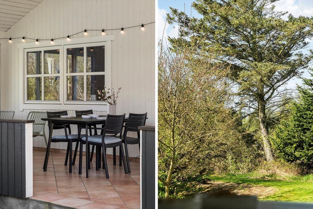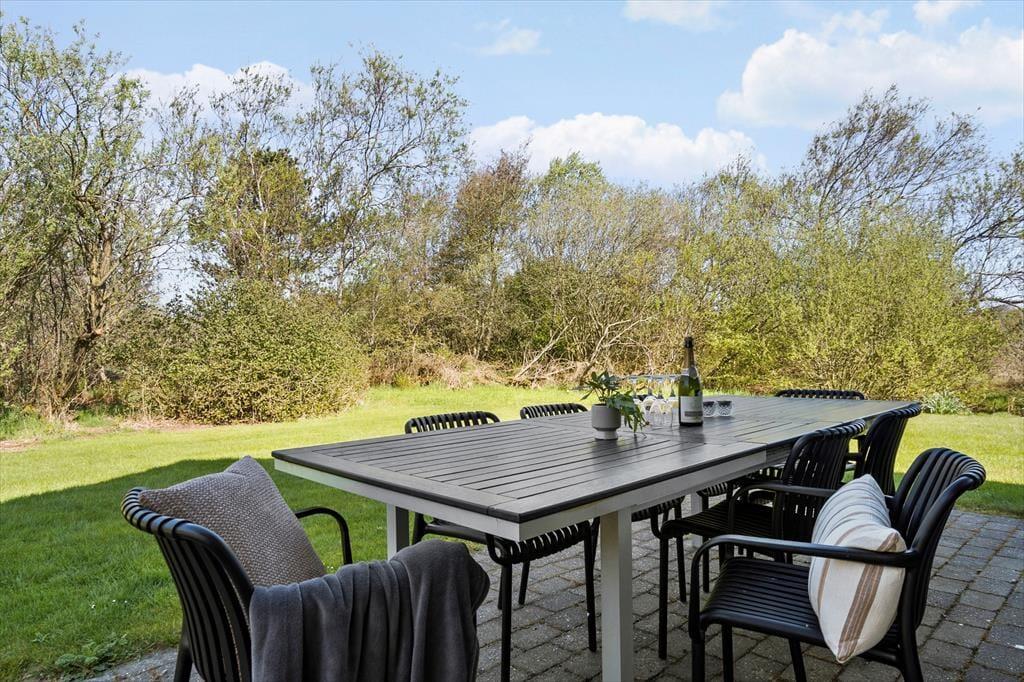Sommerhuset ligger på en lukket grund, hvor I kan nyde solen og stilheden helt uforstyrret. I den overdækkede udestue er der lunt og lækkert uanset årstid, og herfra kan I skimte dyrene, der lister forbi, mens I nyder morgenkaffen eller et glas vin i skumringen. På terrassen venter det udendørs spabad – et oplagt sted at runde dagen af under en stjerneklar himmel, mens I lader kroppen synke ned i det varme vand. Her kan I virkelig mærke, hvordan ferien falder på plads, og hvordan det særlige tempo i Søndervig sætter sig i kroppen. Børnene har samtidig god plads til leg og spil på græsplænen, mens de voksne kan finde ro i den omkransende natur.