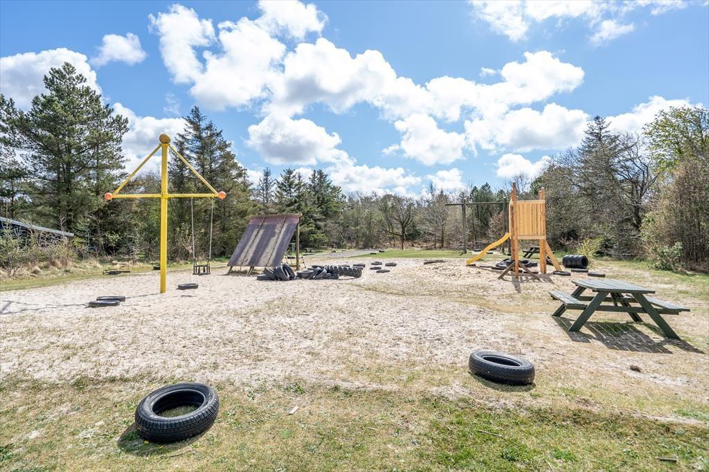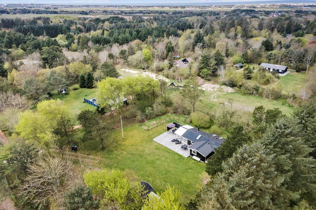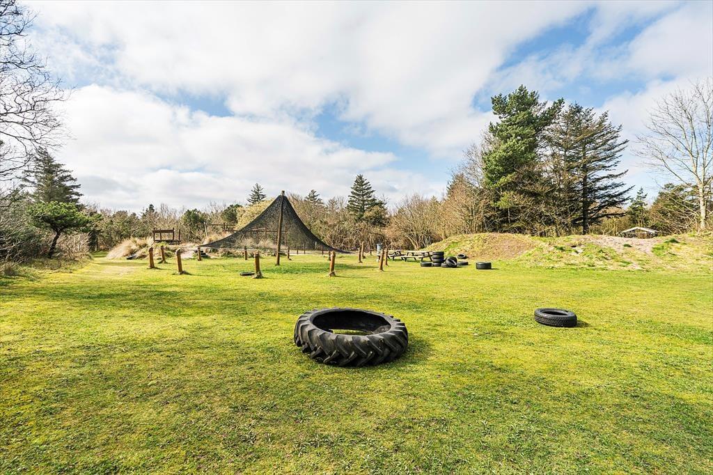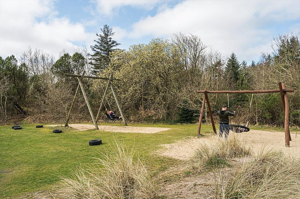 Sommerhuset har en dejligt rolig adresse på den lukkede Birkealle. Lige vest for grunden finder I en stor legeplads: Her er der sjove legeredskaber, petanquebane og fodboldmål mellem træerne, så I kan nemt få timevis til at gå. Fra Lodberg Hede kan det også anbefales at tage ud mod kysten, hvor I kan bade i Vesterhavet eller boltre jer på stranden – hvis ikke I sætter kursen mod den nærmeste fiskesø eller den lokale golfbane. Søndervig har et stort udvalg af familievenlige ferieaktiviteter samt gode indkøbsmuligheder og spisesteder.