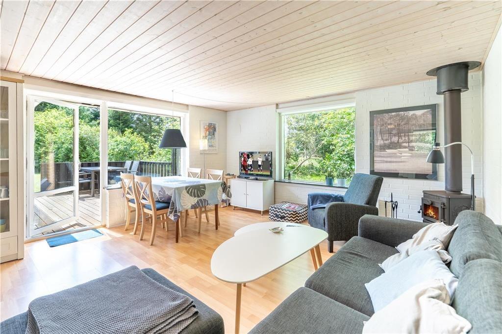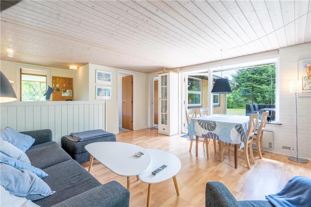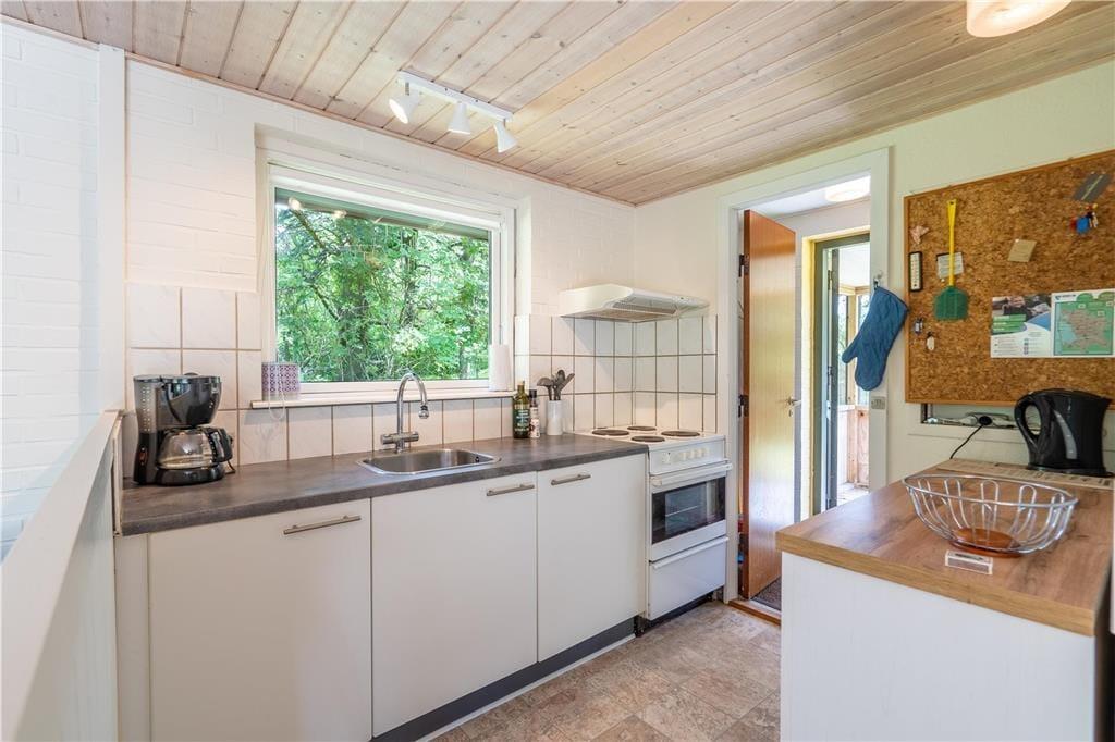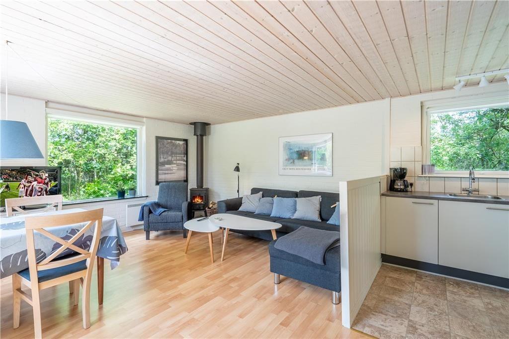 Sommerhuset, der måler 60 m2, passer godt til en børnefamilie, for der er nemlig sengepladser til to voksne og to børn inden døre. Sengene er fordelt på tre soveværelser, og et flisebadeværelse med bruser hører også med til den fornuftige planløsning. Husets køkken ligger i åben forbindelse med stuen, så I kan sagtens hyggesnakke eller følge med i børnenes leg, mens I fremtryller familiens yndlingsretter. For at gøre hyggestemningen endnu mere fuldendt, kan I tænde op i brændeovnen, og om aftenen kan I slappe af med en god film på fladskærms-tv’et, der har både parabol og Chromecast tilsluttet.