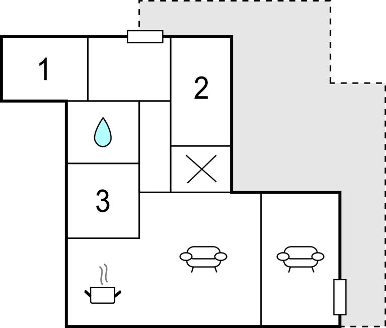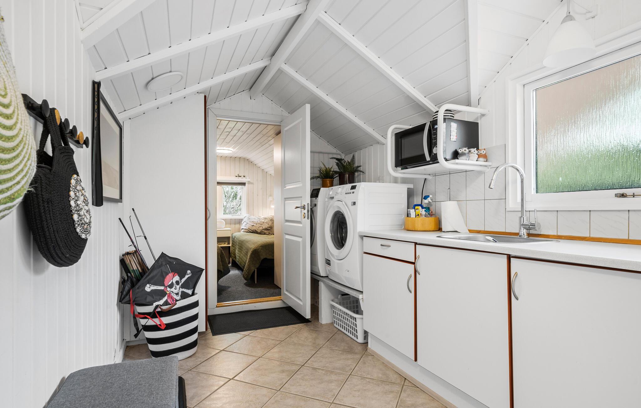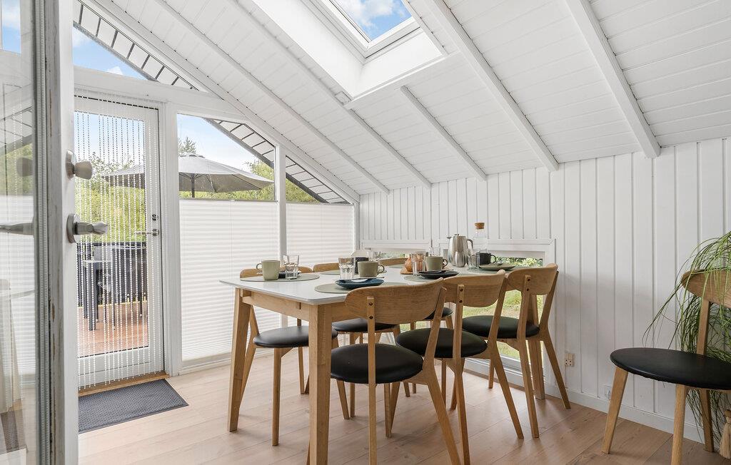 Huset er indrettet med et hyggeligt, kombineret køkken/alrum med god plads til seks personer. Her findes tre soveværelser, et badeværelse med brus samt en skøn udestue, der ligger i forbindelse med stuen. Udendørs har I en dejlig terrasse, hvor I kan nyde vejret, mens børnene leger i haven.