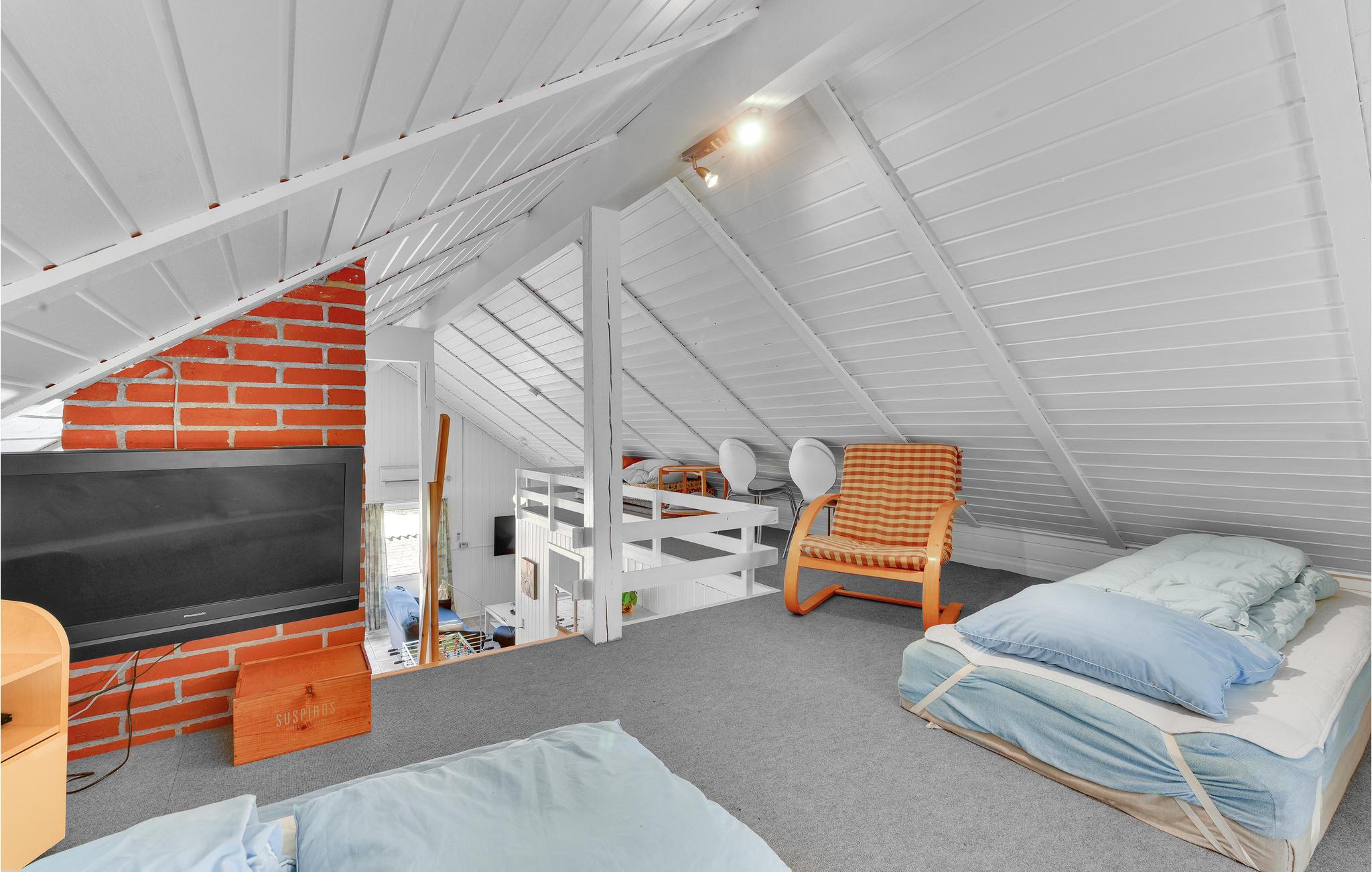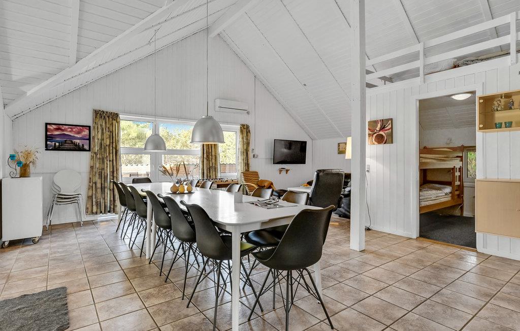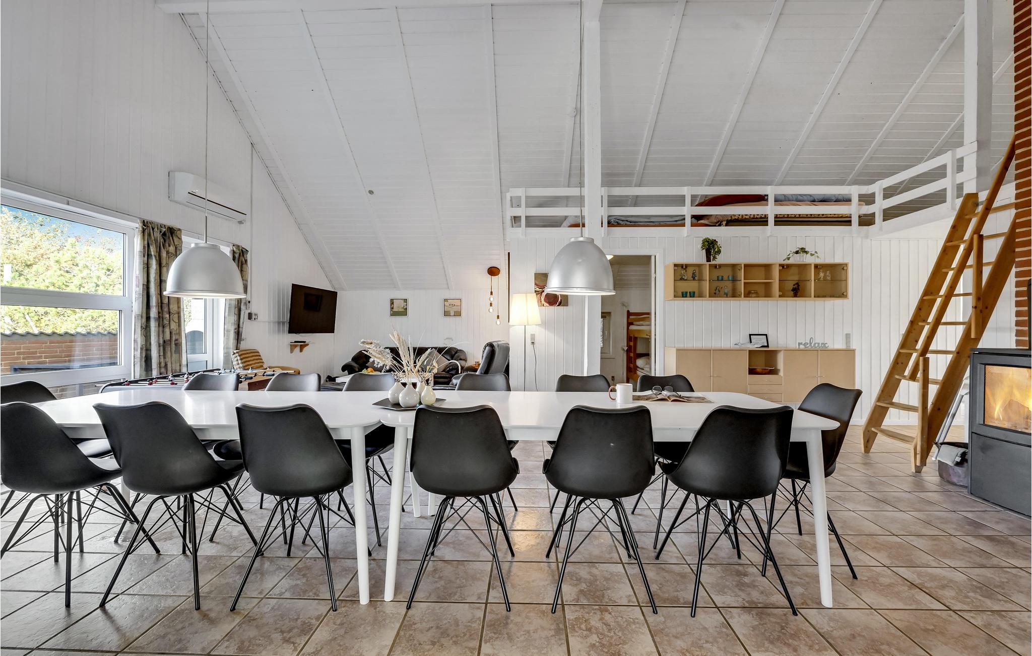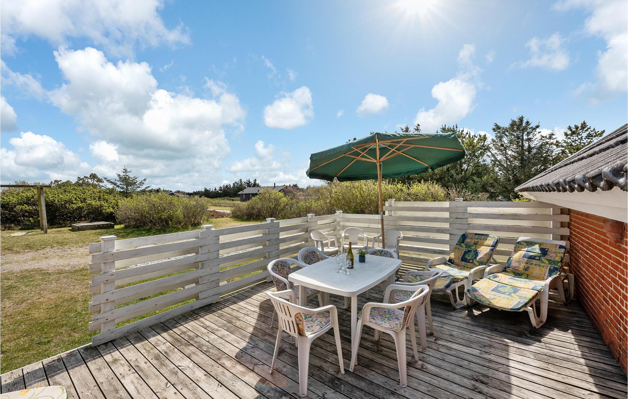 Huset er veludstyret og hyggeligt indrettet med tidløse møbler. I det store stue-/køkkenområde er der loft til kip, og på hemsen findes et tv, der kan benyttes til spillekonsoller, så børnene kan hygge sig i fred. Både indendørs og udendørs aktiviteter er der nok af bl.a. bordtennis, fodboldbord og beachvolleybane. På den dejlige, ugenerte, vestvendte terrasse kan I sidde og nyde solen og grille en lækker middag. Stranden ligger kun fem minutters kørsel væk. Huset ligger tæt på Lodbjerg Hede Ørredsø: en stor put and take fiskesø på 15.000 m2, der altid indeholder en stor bestand af ørreder. For golfentusiaster findes en udfordrende 27 hullers golfbane i Holmsland Klit Golfklub nær Søndervig. I Søndervig er der mulighed for tennis og billard, besøg også en af restauranterne som altid tilbyder fisk på menuen. Hvide Sande er også altid et besøg værd - miljøet på havnen eller shopping i en af de mange butikker der ligger tæt på havnen. I byen Kloster kan I dyppe lys, og i Hee ligger Fiske- og Familiepark West med oplevelser og aktiviteter.