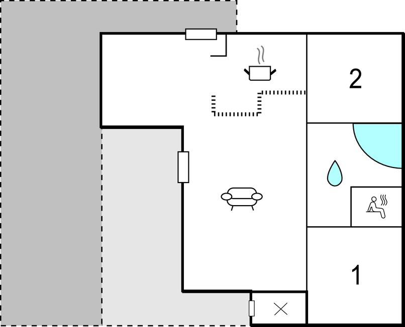 Badeværelse 7m2 (nr. 1) - WC. Varmt og koldt vand. Bruser