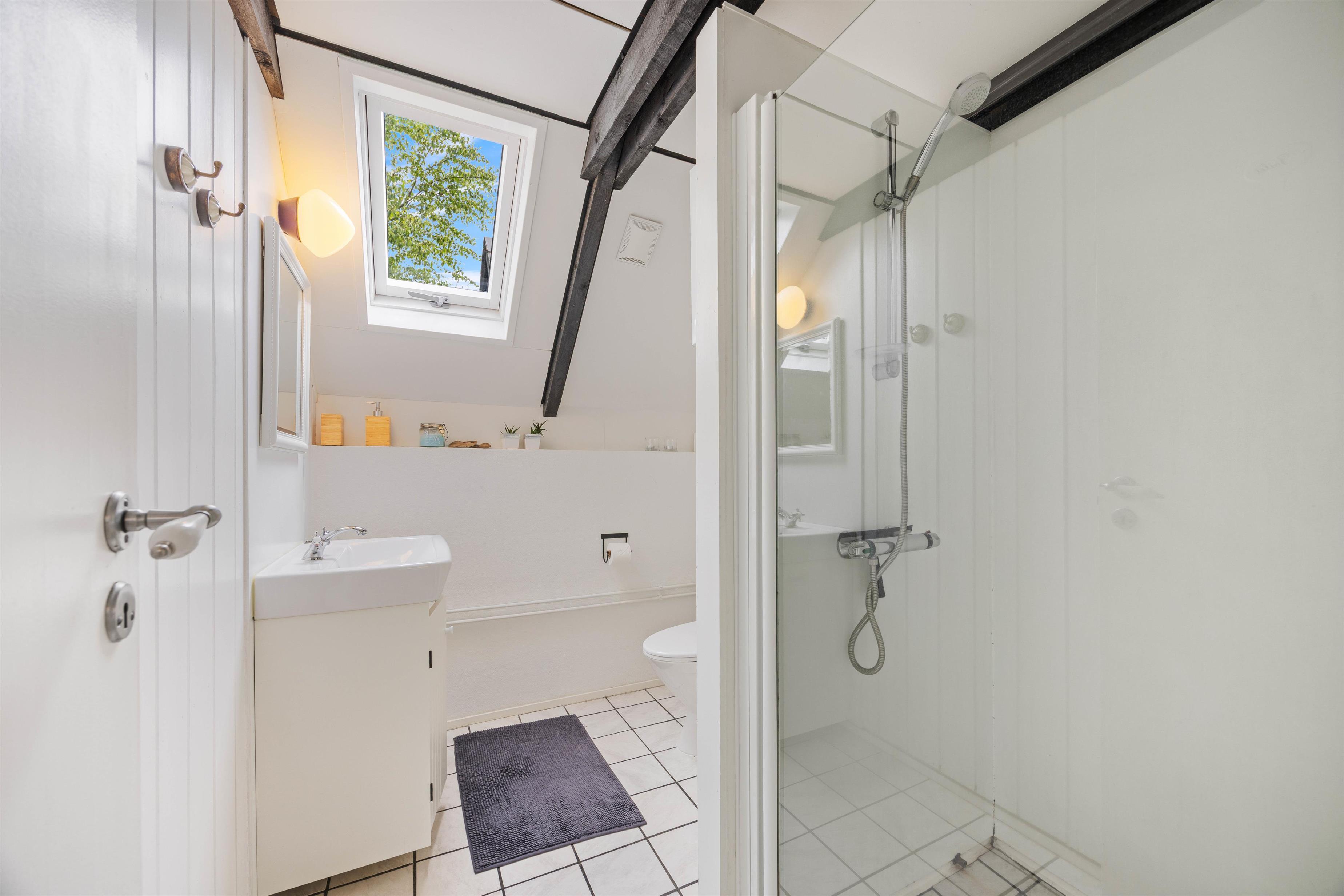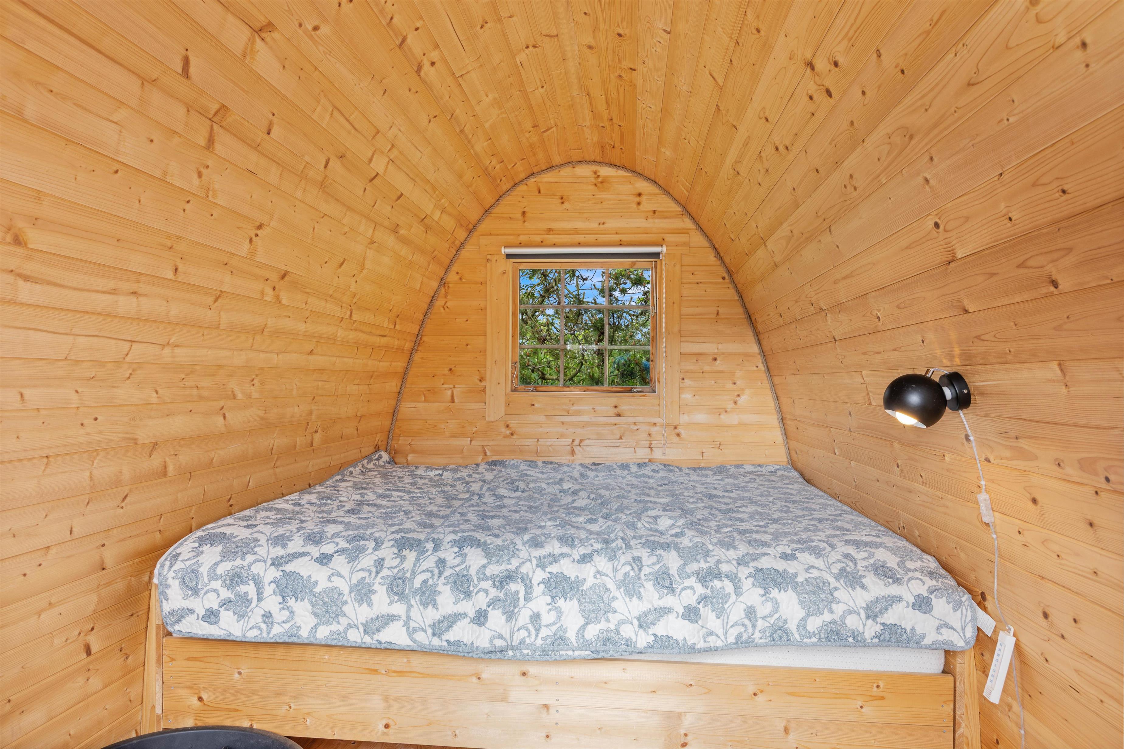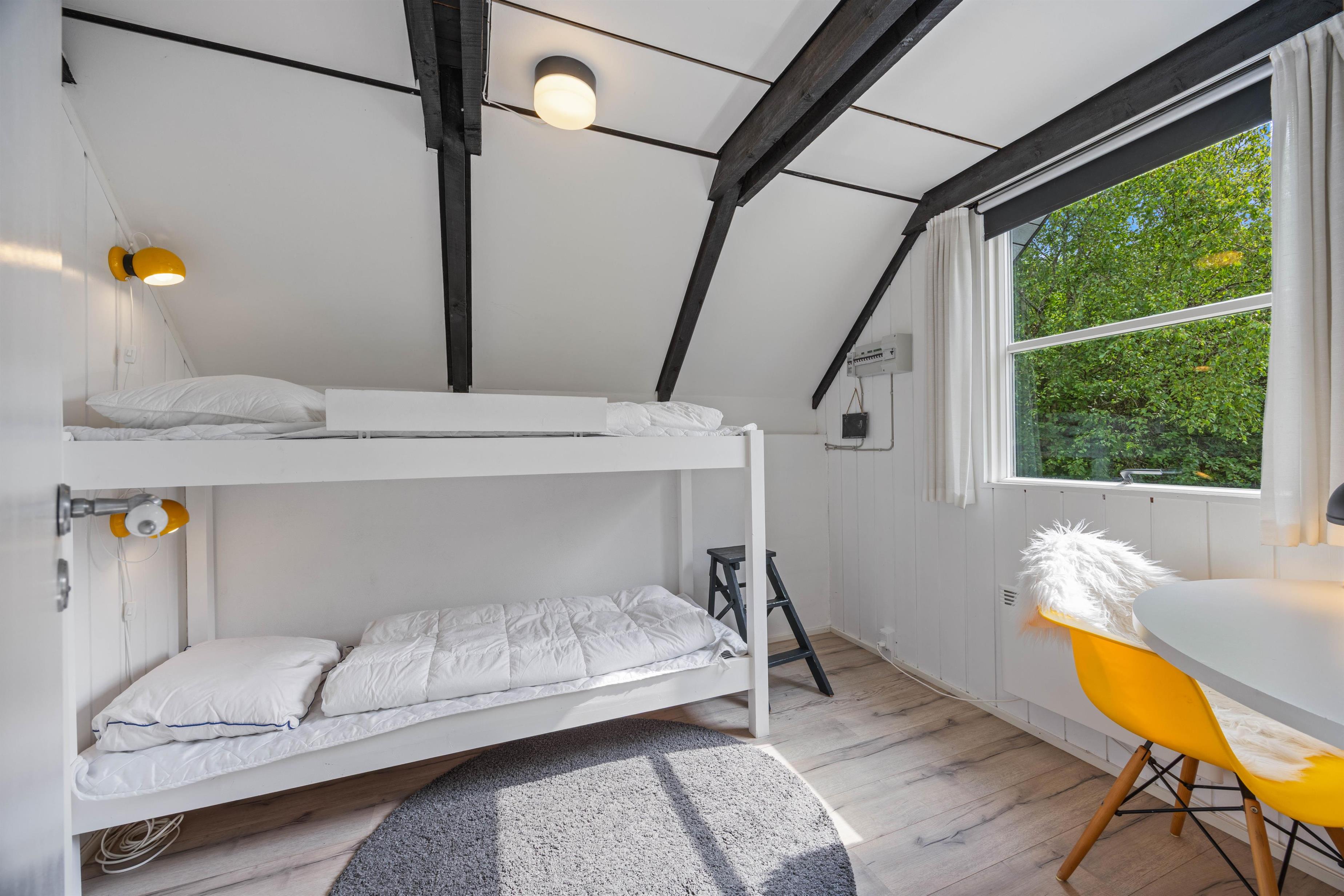 Huset er indrettet med et dejligt soverum med dobbeltseng og til børnenes glæde, er det andet udstyret med en køjeseng. Især i den kolde årstid vil I sikkert nyde, at det fine lyse badeværelse har gulvvarme.