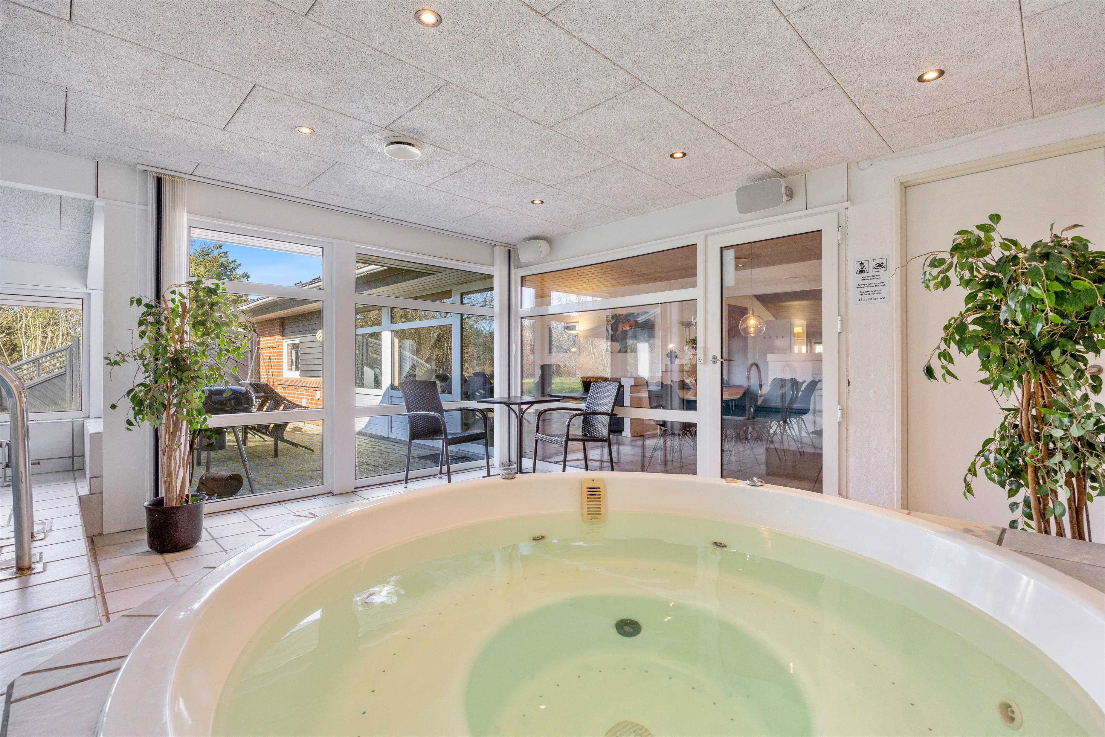 Et af sommerhusets absolutte højdepunkter er den dejlige pool, hvor man kan nyde en forfriskende dukkert og masser af vandleg. Poolen er perfekt til både børn og voksne og kan bruges året rundt. Inde i poolrummet er der også et spabad, hvor de voksne vil kunne sidde med et glas vin og stadig holde øje med børnene i poolen. I ville kunne slutte af I saunaen, hvor I virkelig kan blive varmet igennem.