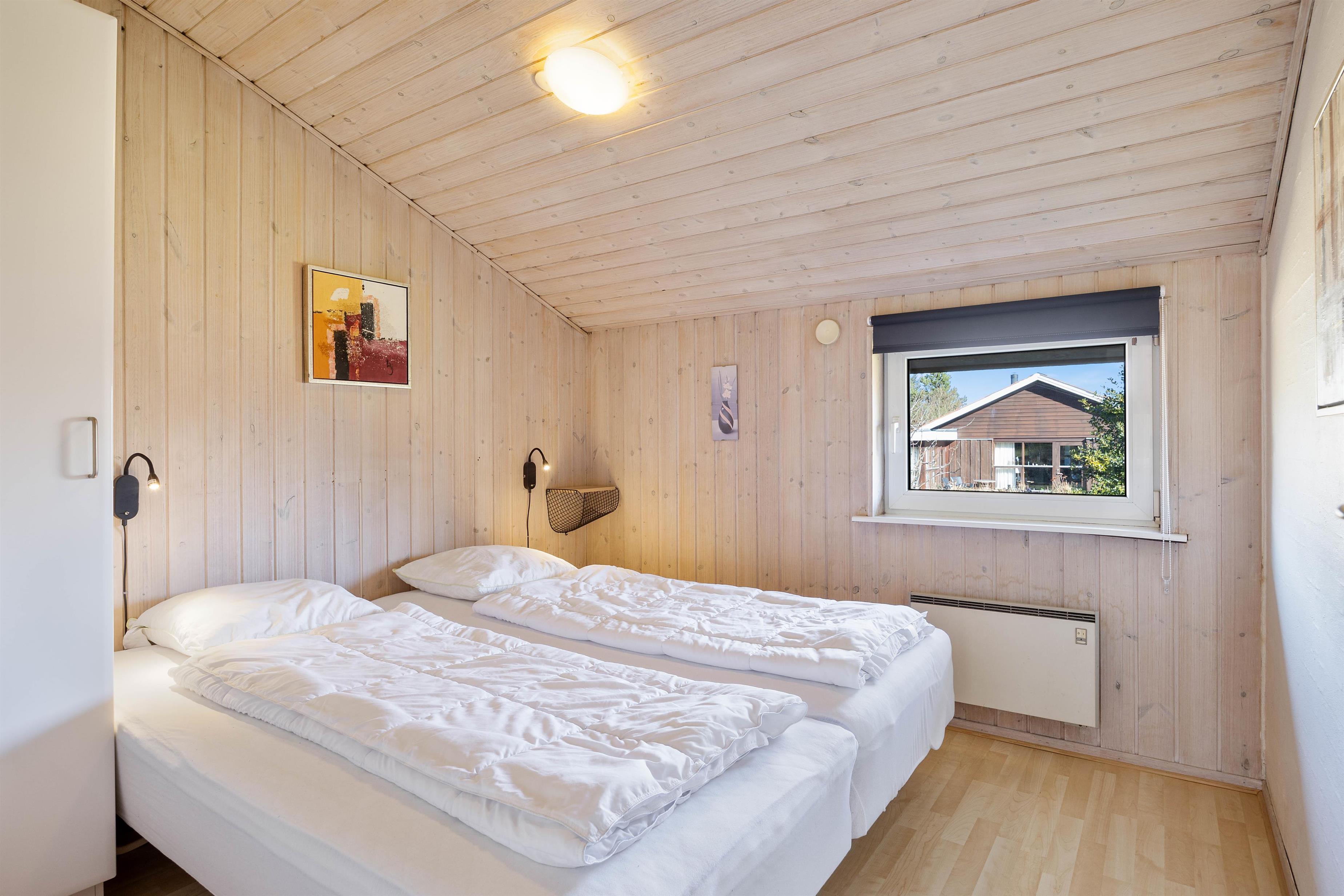 4 af sommerhusets 5 soveværelser er indrettet med dobbeltsenge. Det sidste værelse er indrettet med to køjesenge, som giver rig mulighed for at flere børn kan sove sammen. Der er to gode badeværelser med bruser og god plads til at klæde om. På det ene badeværelse er der også både vaskemaskine og tørretumbler.