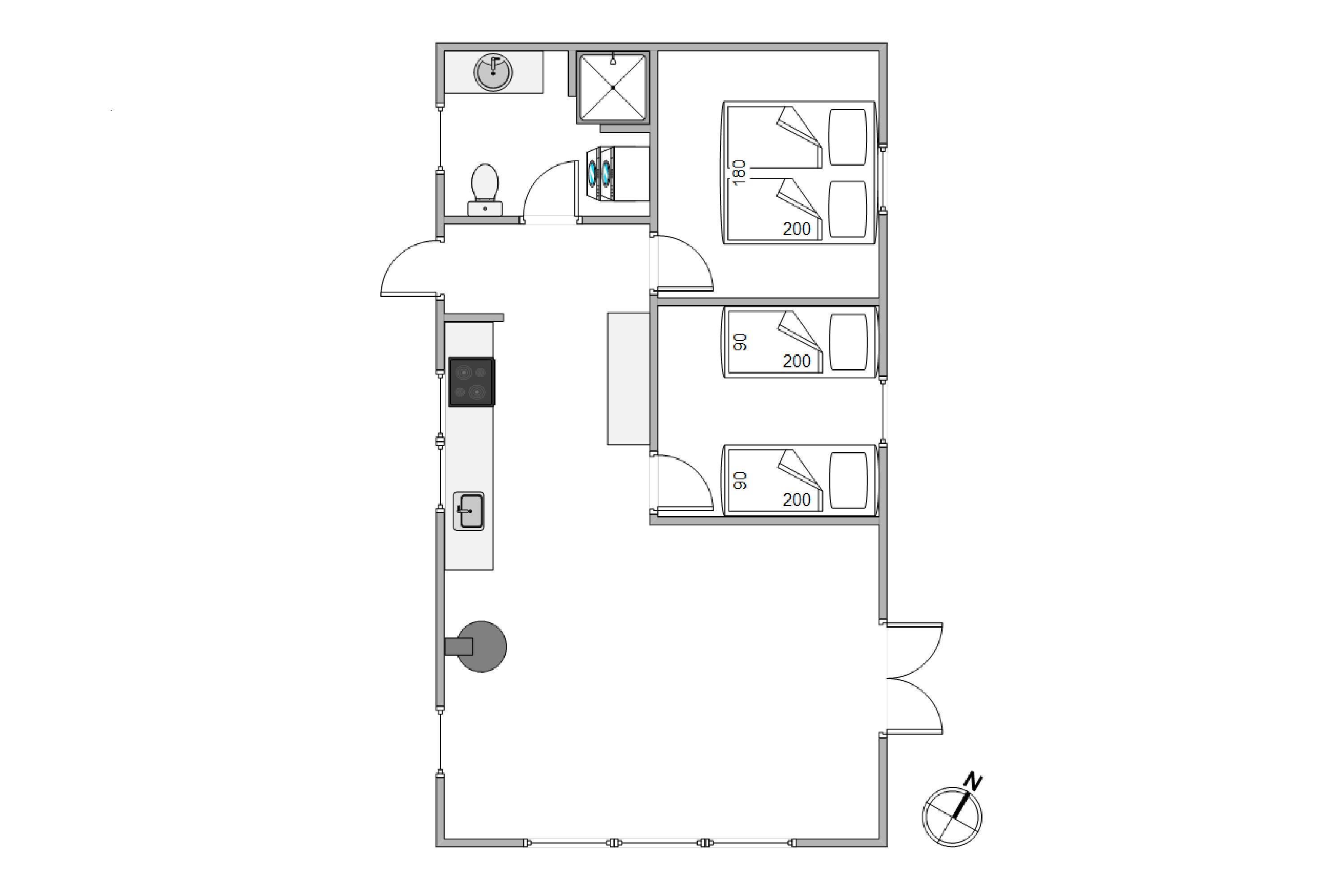 Det 64 kvadratmeter store sommerhus er indrettet med 2 gode soveværelser. Det ene soveværelse er indrettet med en dobbeltseng, mens det andet soveværelse er indrettet med 2 enkeltsenge. Derudover er der 1 badeværelse med gulvvarme i sommerhuset.