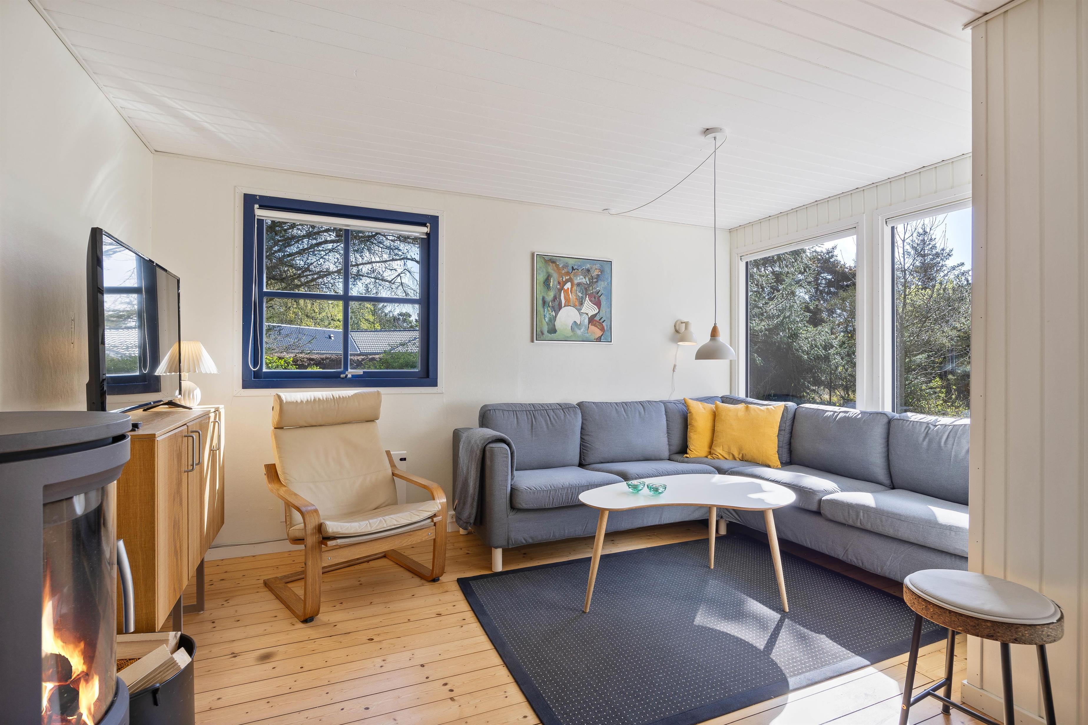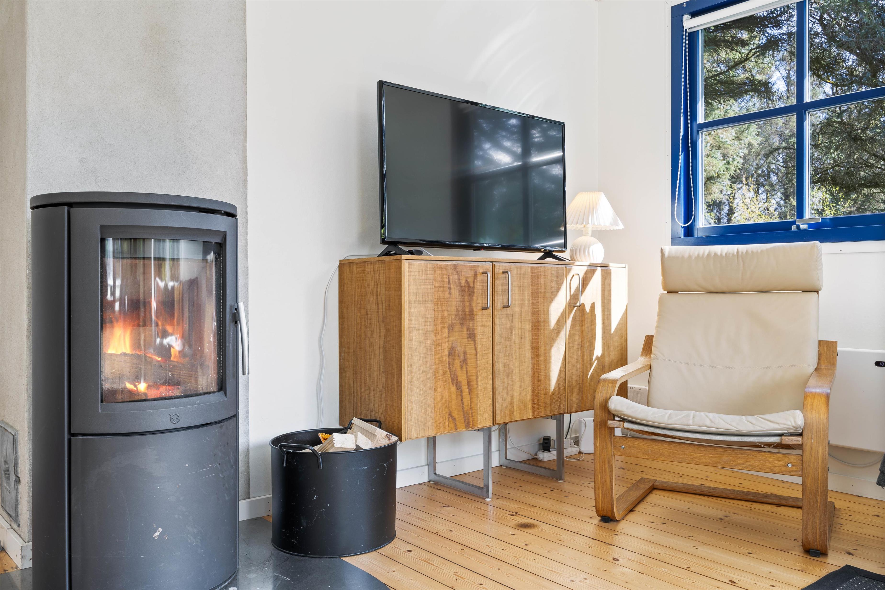 For at få en følelse af ægte sommerhusstemning på ferien, er feriehuset også udstyret med en brændeovn. Her kan I efter en skøn spadseretur i området på Lodberg Hede, nyde de knitrende lyde fra brændeovnen, og lade varmen fra ilden skabe den perfekte atmosfære til en afslappet aften sammen med hinanden.