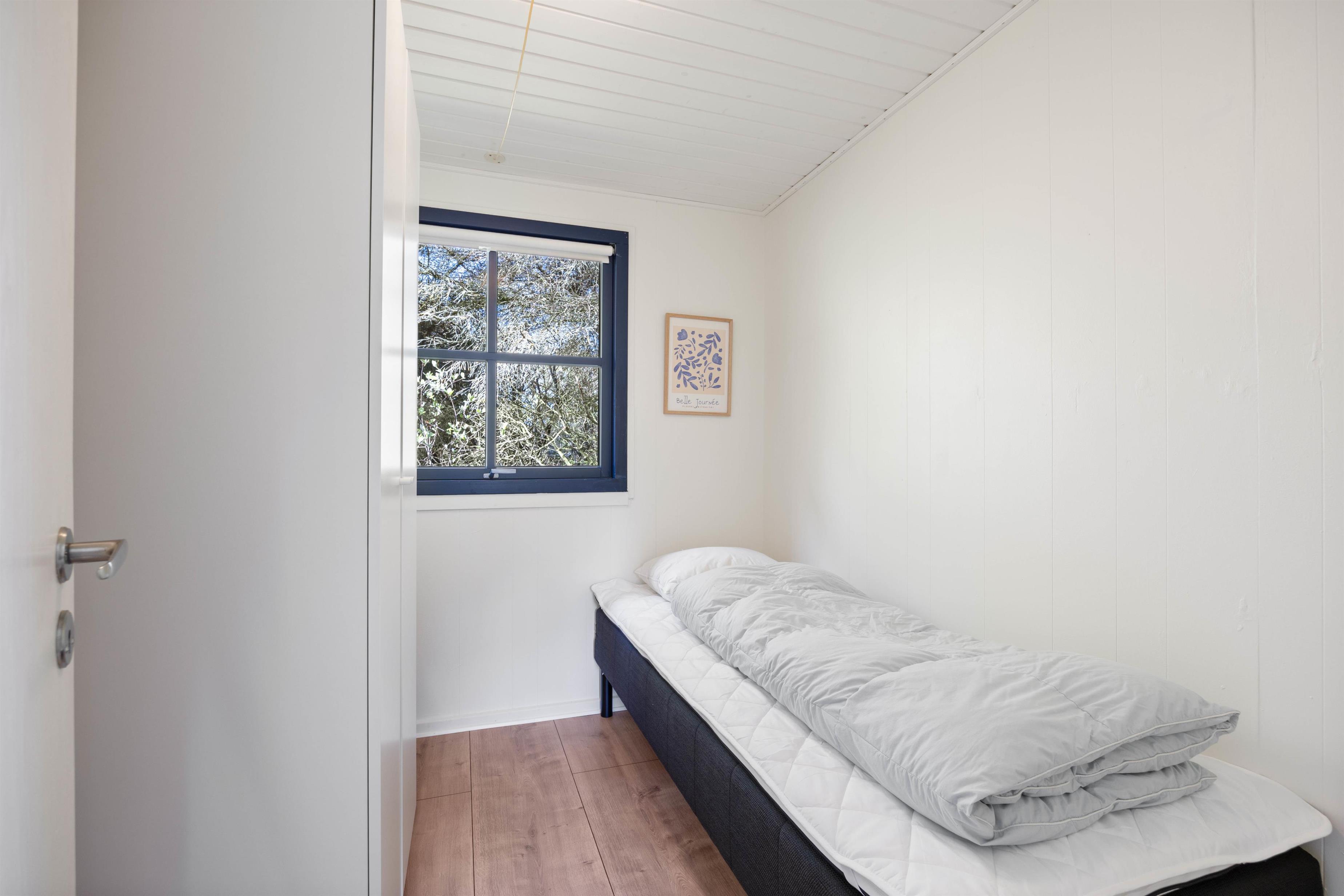 Feriehuset råder over 5 sovepladser fordelt på 3 hyggelige soveværelser med henholdsvis dobbeltseng på det ene værelse og enkeltsenge fordelt på de to sidste værelser. Her har I rig mulighed for igen at få ladet batterierne op, så I kan være friske og veludhvilede til en ny og oplevelsesrig dag. Det lille sommerhus er udstyret med et åbent og fint køkken, der ligger i forbindelse med stue og spiseplads. Dermed har I mulighed for at være sammen om de forskellige måltider samtidig med, at andre planlægger resten af ugens aktiviteter.