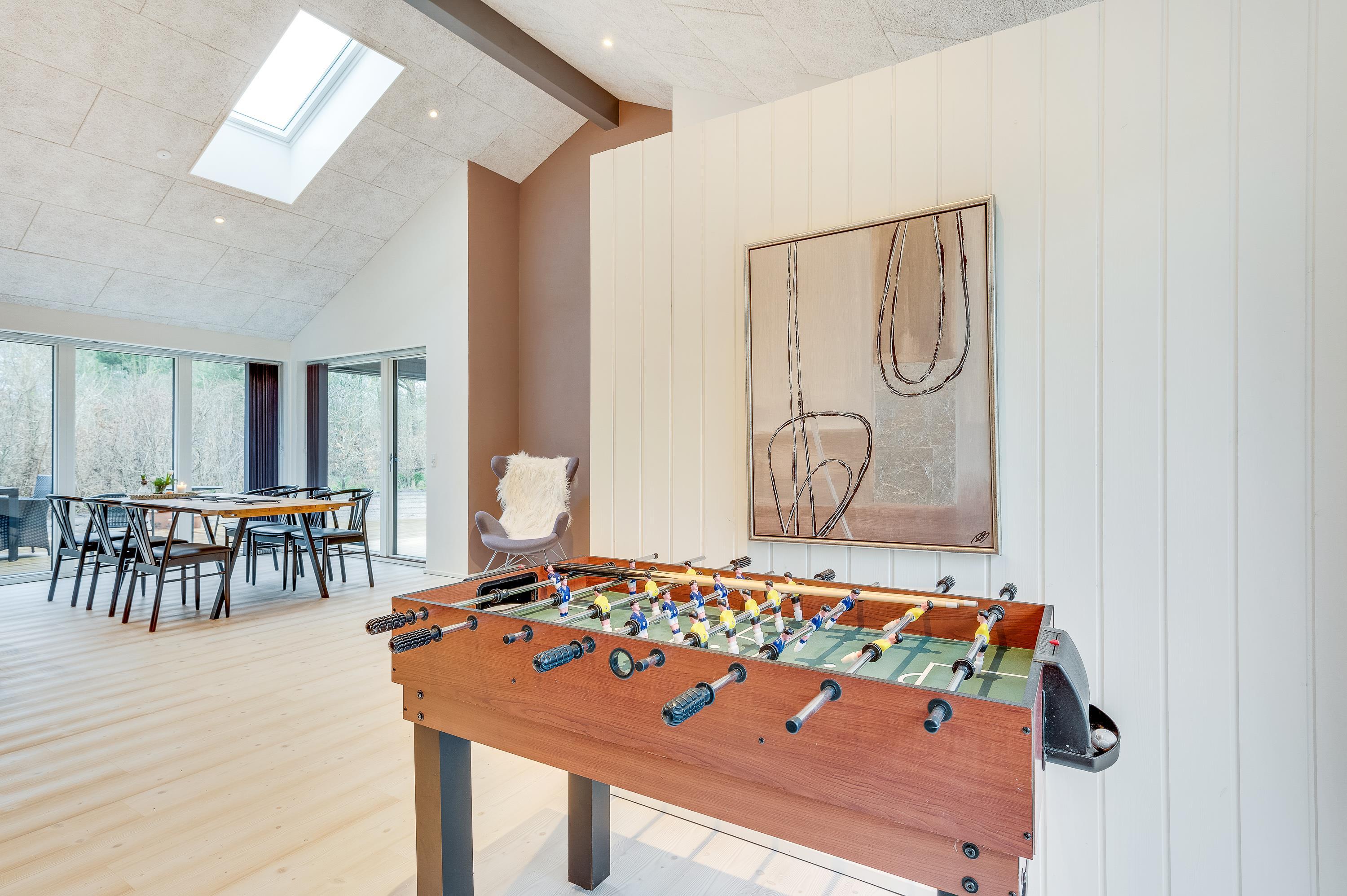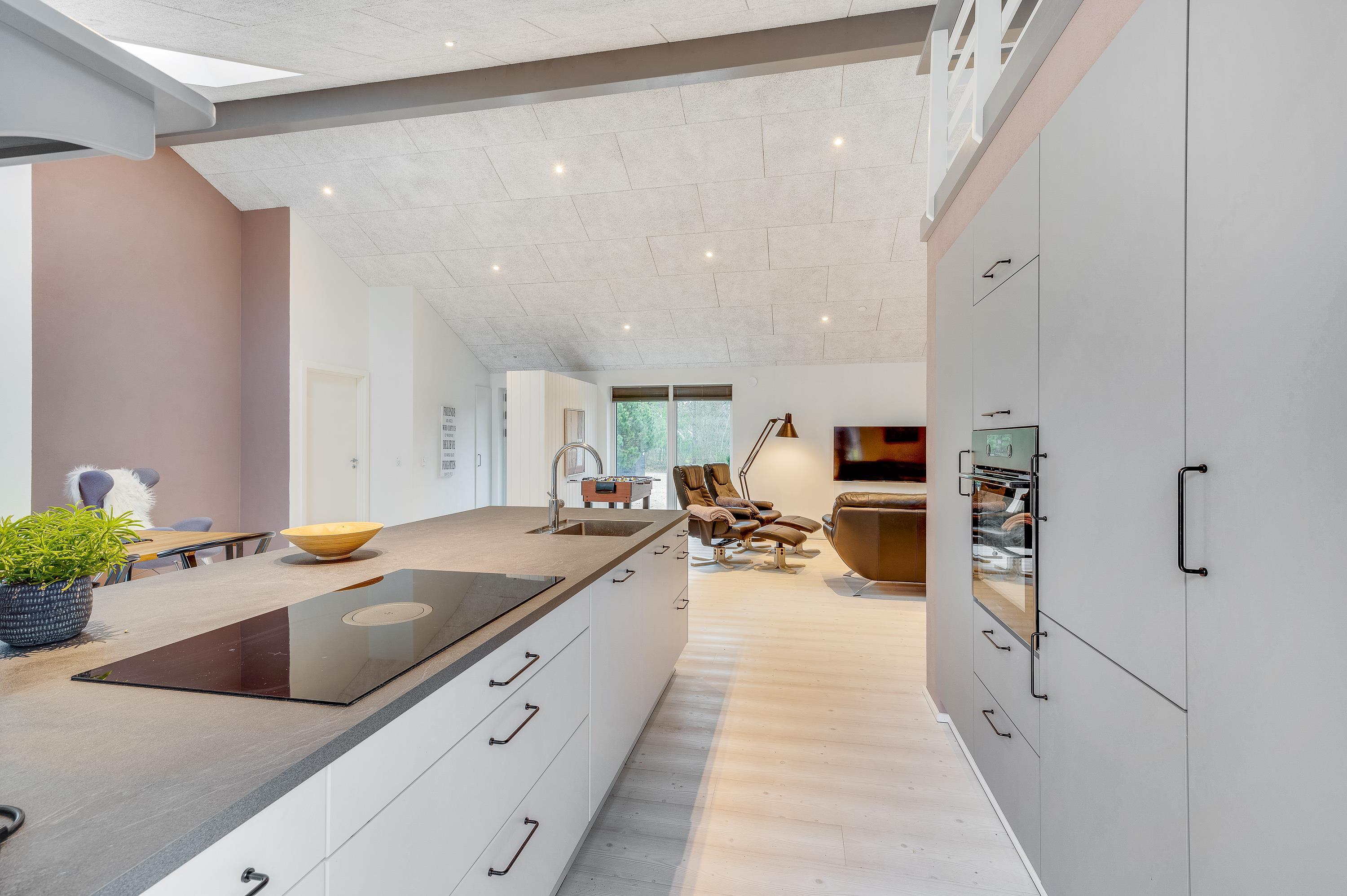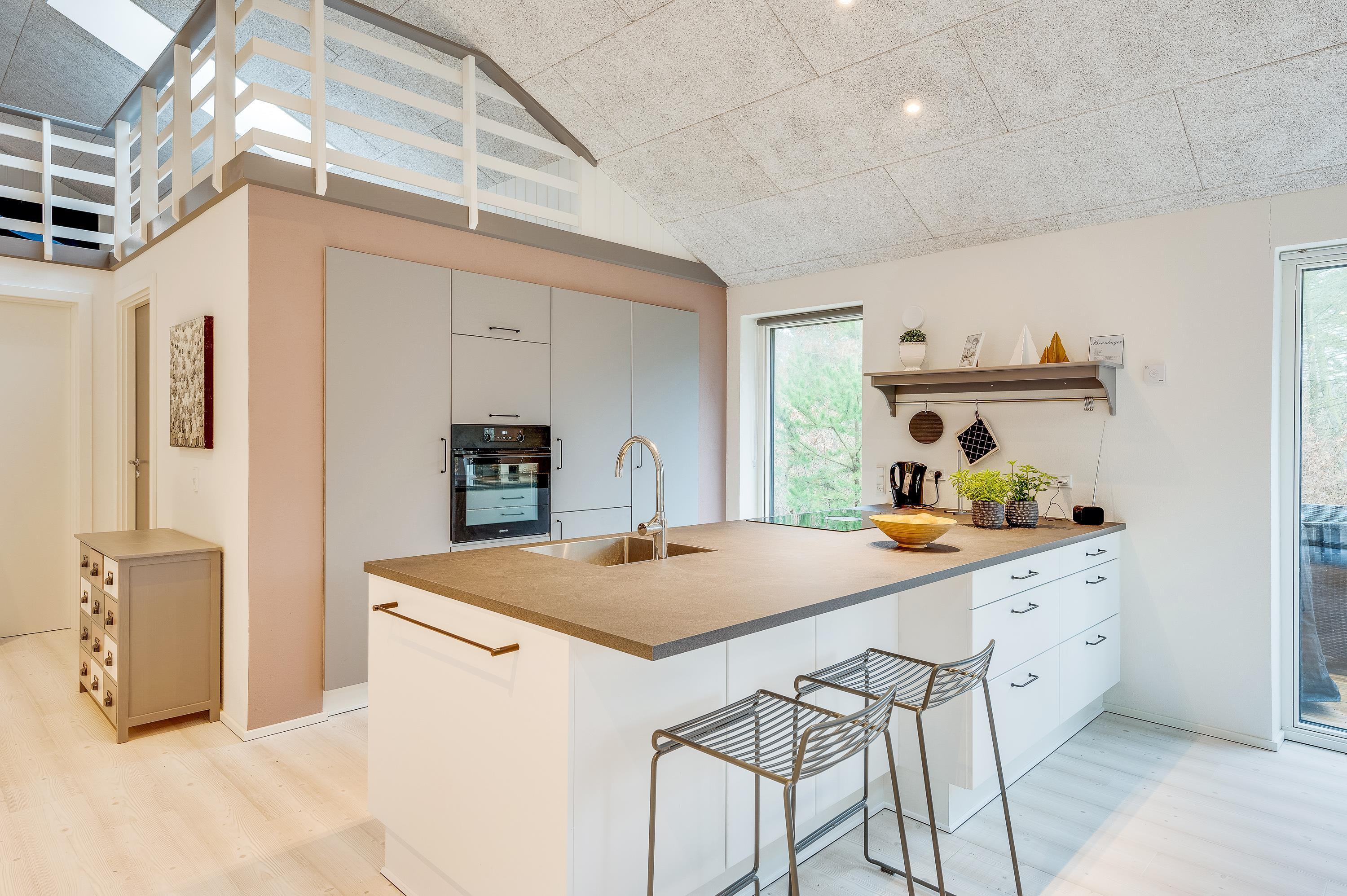 Det flotte sommerhus på Fyrreallé 16 emmer af feriehygge. Sommerhus byder på et rummeligt og smagfuldt indre med et skandinavisk præg over sig. Loftet er åbent til kip, og store vinduer sørger for et dejligt lysindfald og giver jer samtidig udsyn til den grønne natur, I er omgivet af. Alt i alt er der skabt en virkelig hyggelig og indbydende atmosfære i sommerhuset.