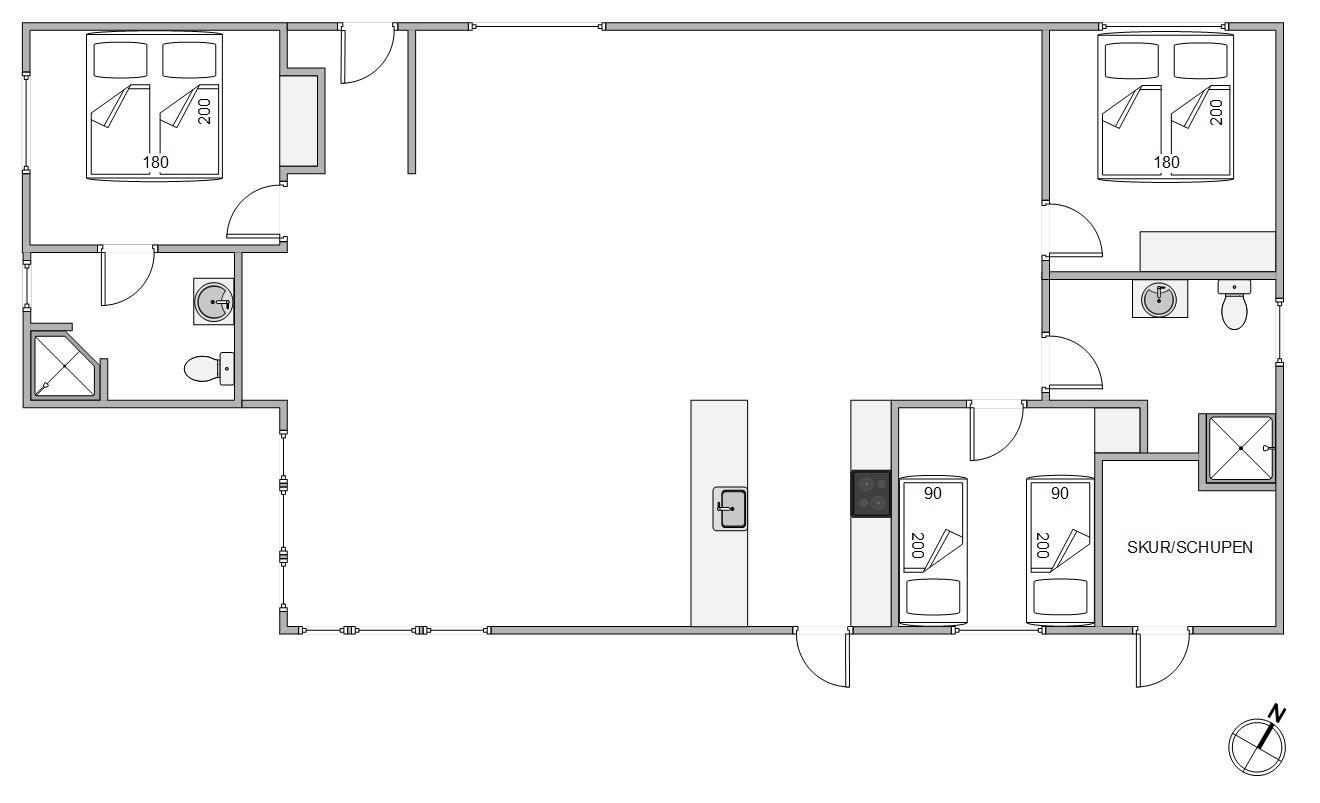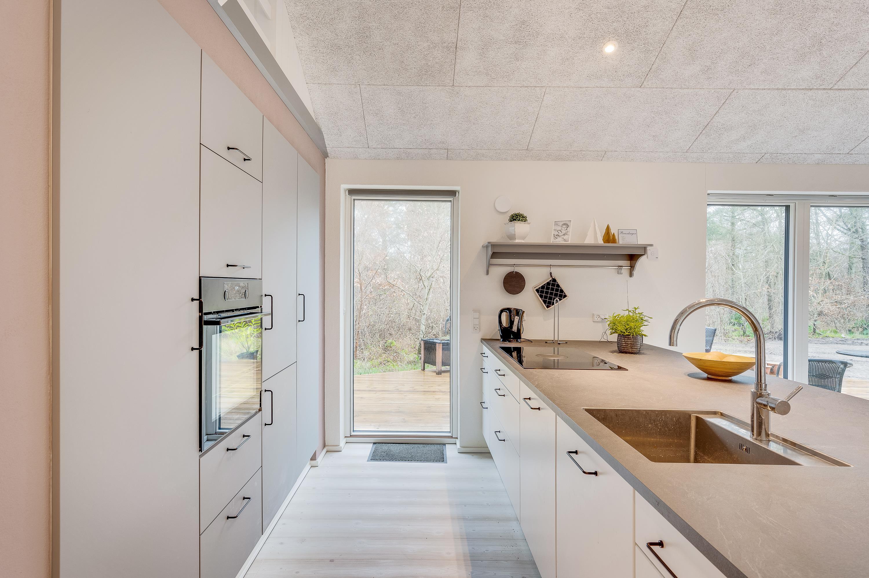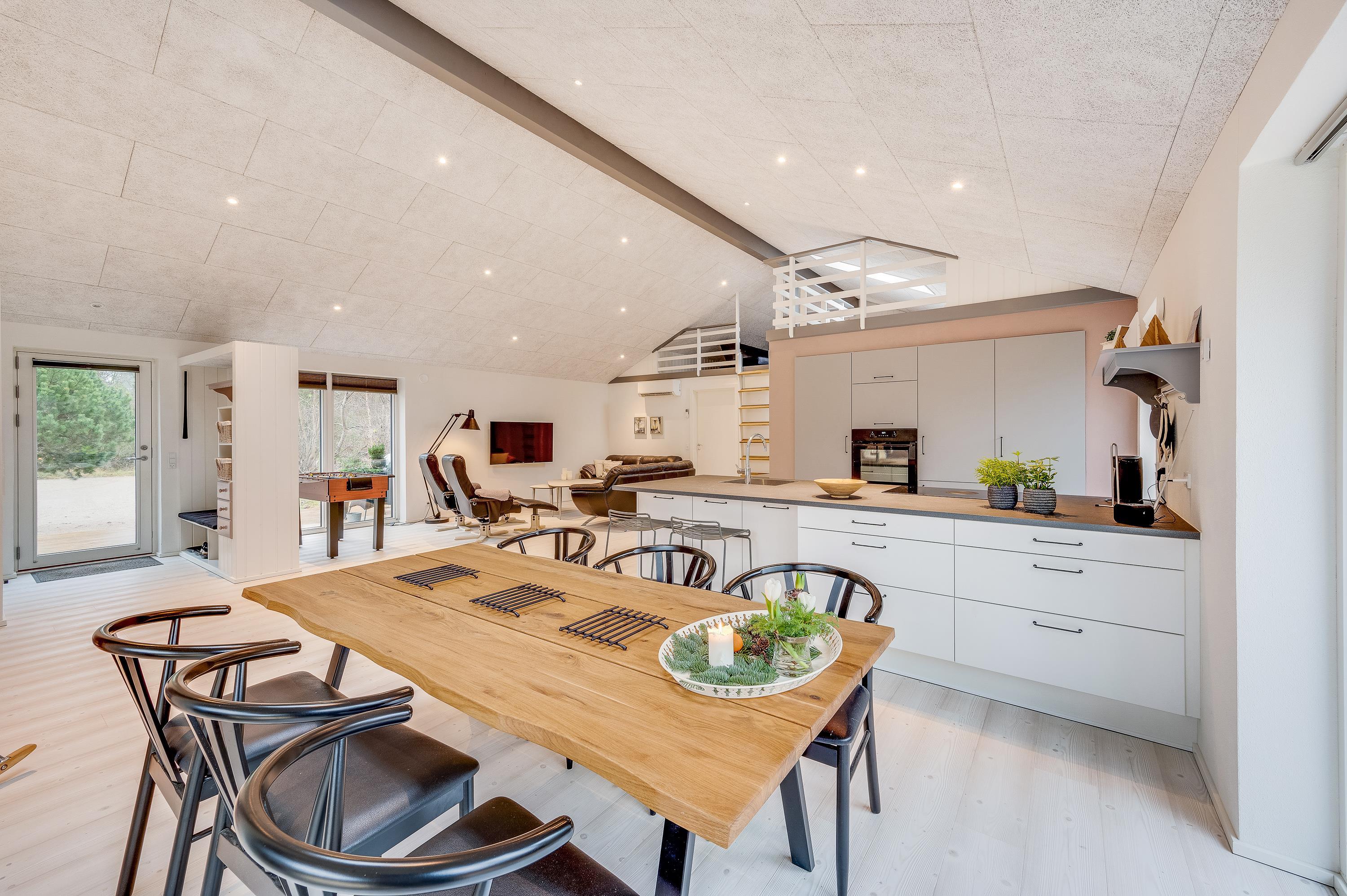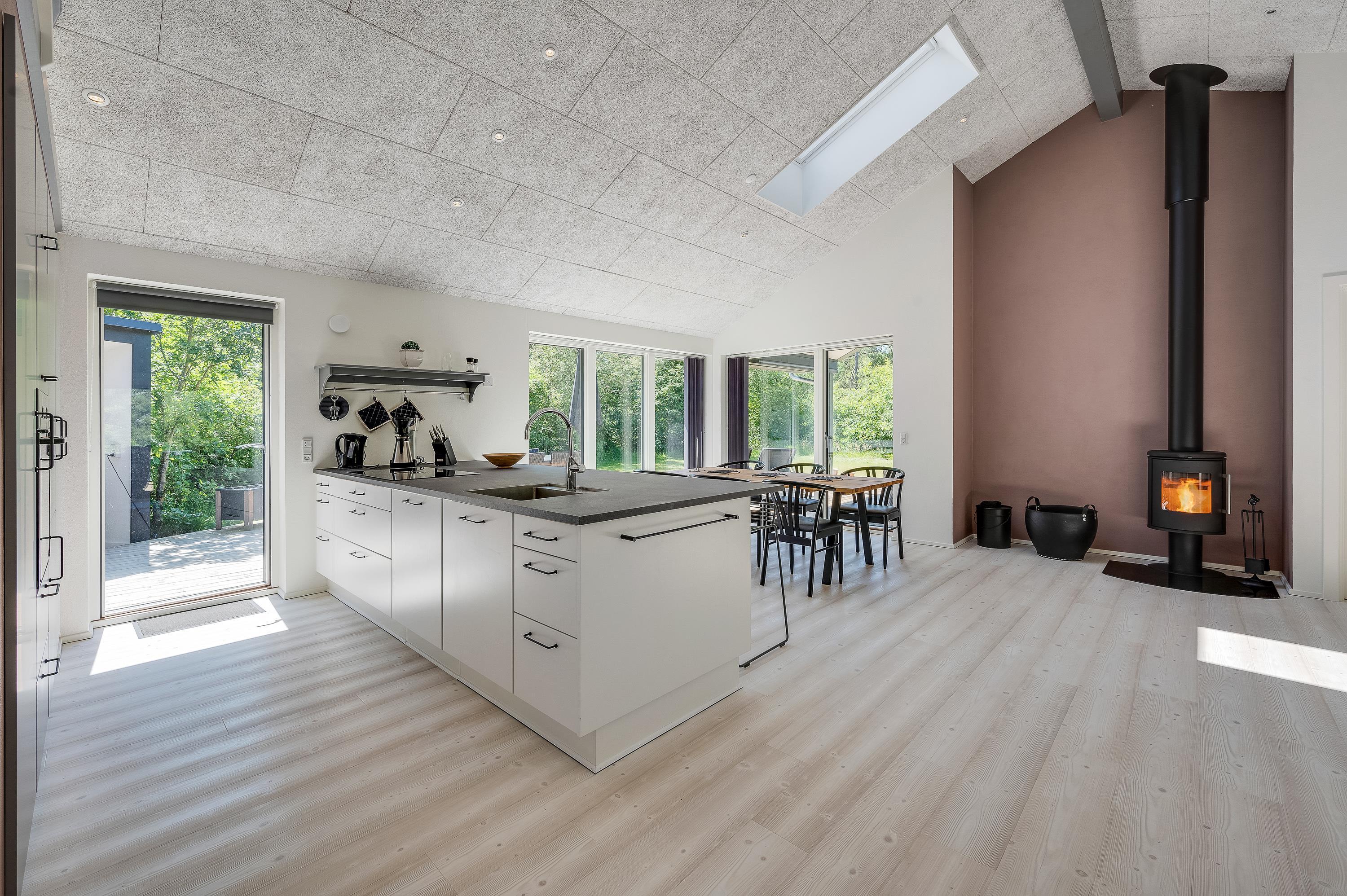 Den moderne feriebolig er udstyret med alt, hvad der er brug for, når der skal holdes en afslappende ferie. I opholdsrummet står brændeovnen, som altid sikrer god stemning og varme, og i køkkenet står opvaskemaskinen klar til lynhurtigt at afhjælpe oprydningsarbejdet efter middagen. Der er også en energibesparende varmepumpe, så I året rundt har et behageligt rumklima.