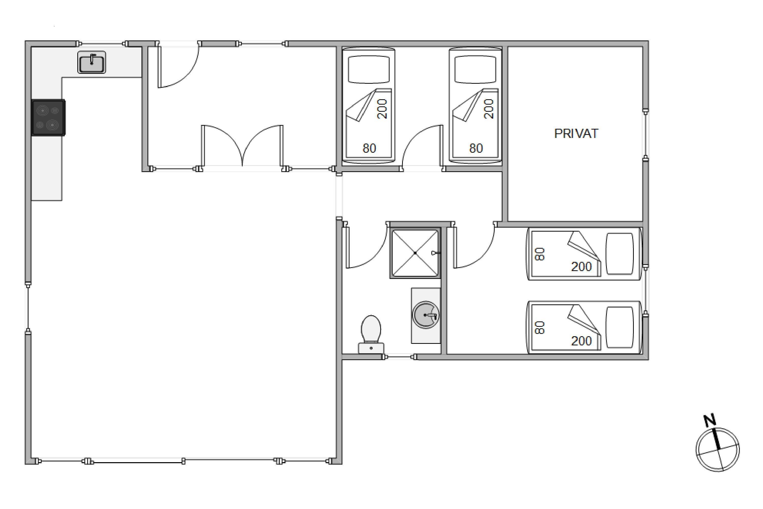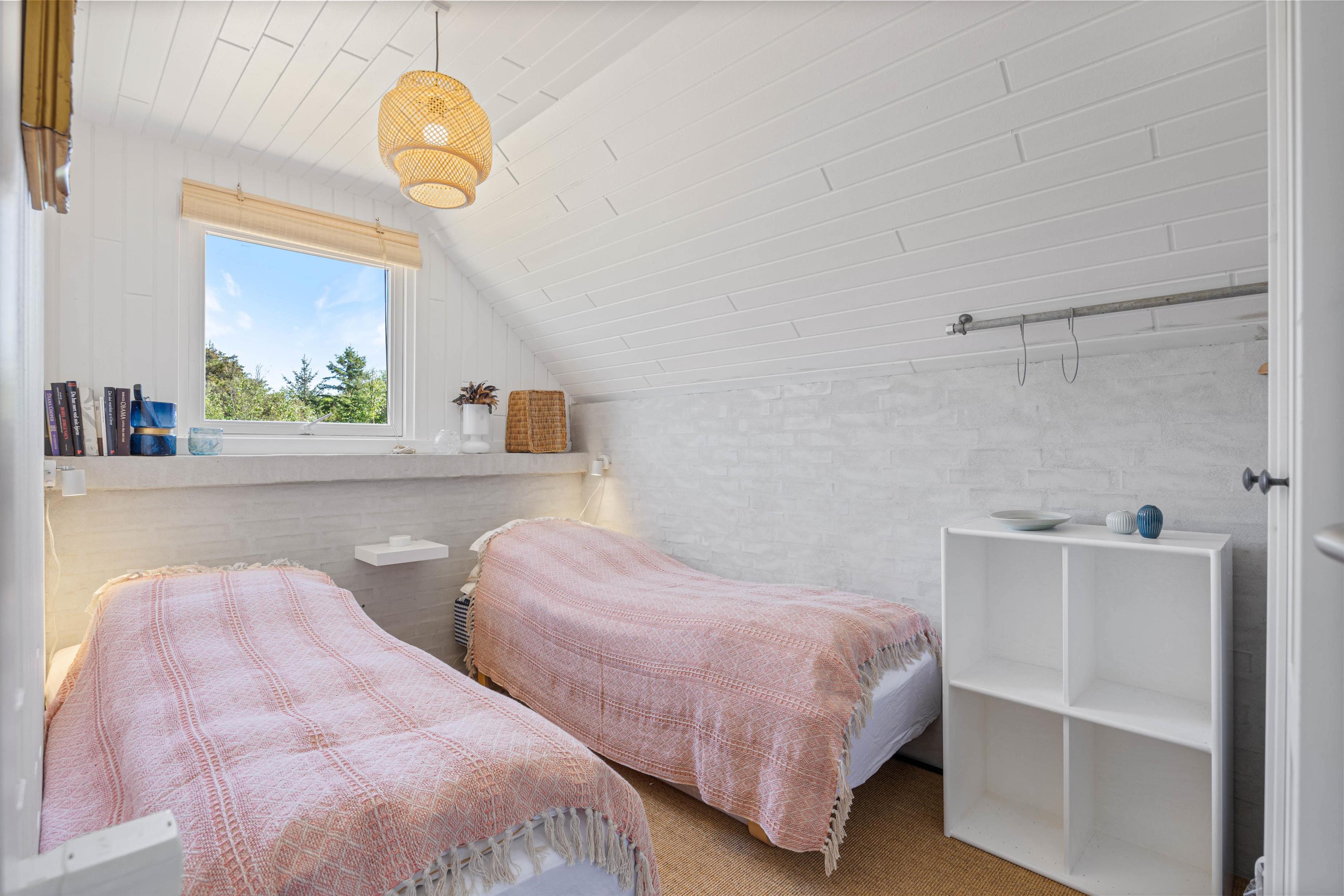 Foruden alrummet byder sommerhuset også på 2 gode soveværelser, der er indrettet med enkeltsenge. Her har I mulighed for at få ladet batterierne op til en ny dag. I køkken - og gangområde er der trægulve og der er gulvtæpper i stue og soverum.
