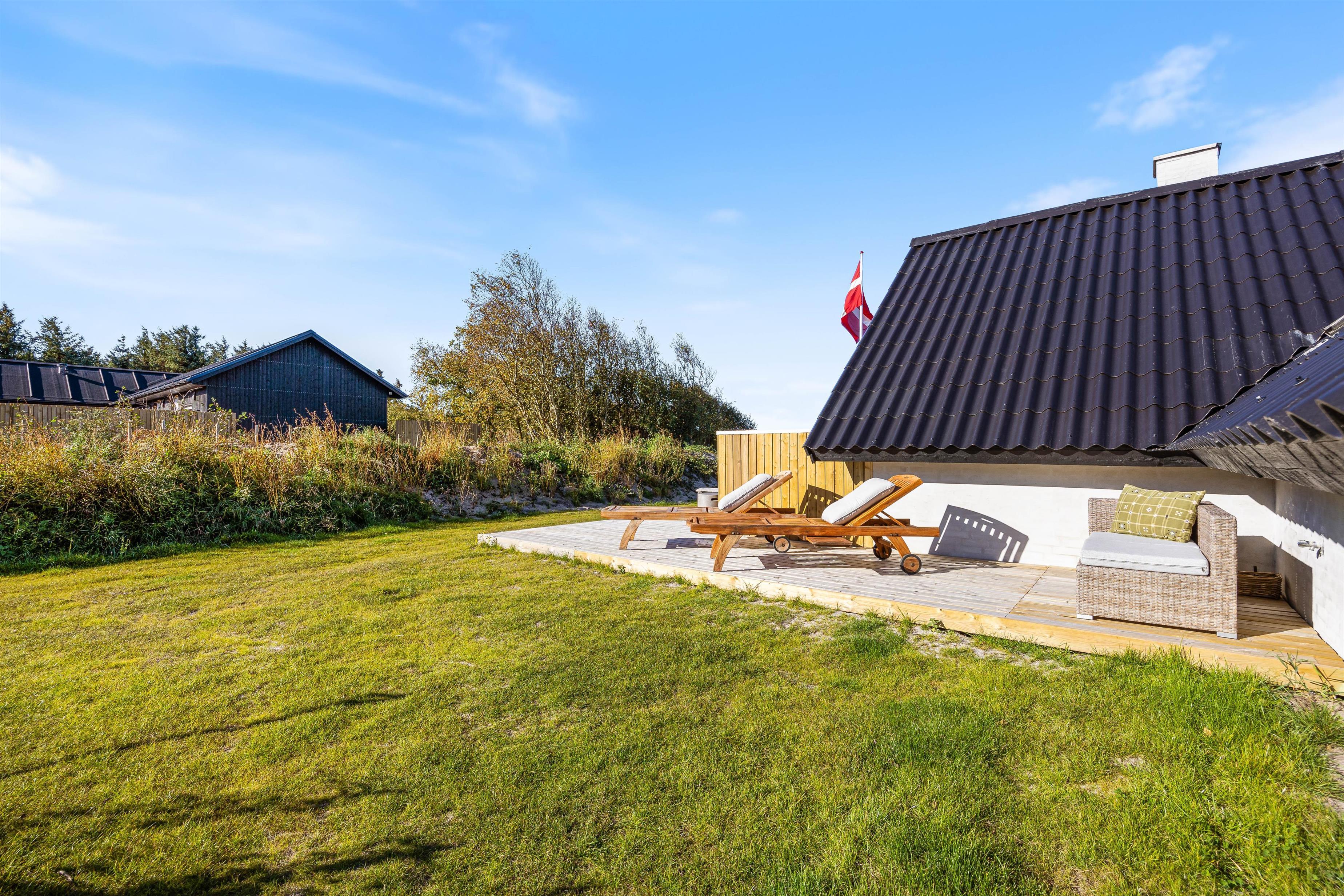 Feriehuset på Egernvej 3 ligger på en stor plænegrund. Her finder I en skøn sydvendt terrasse, som I kan rykke ferien ud på, når ferievejret er varmt og solrigt. Her står der havemøbler og liggestole til jeres rådighed, som I kan læne jer tilbage i.