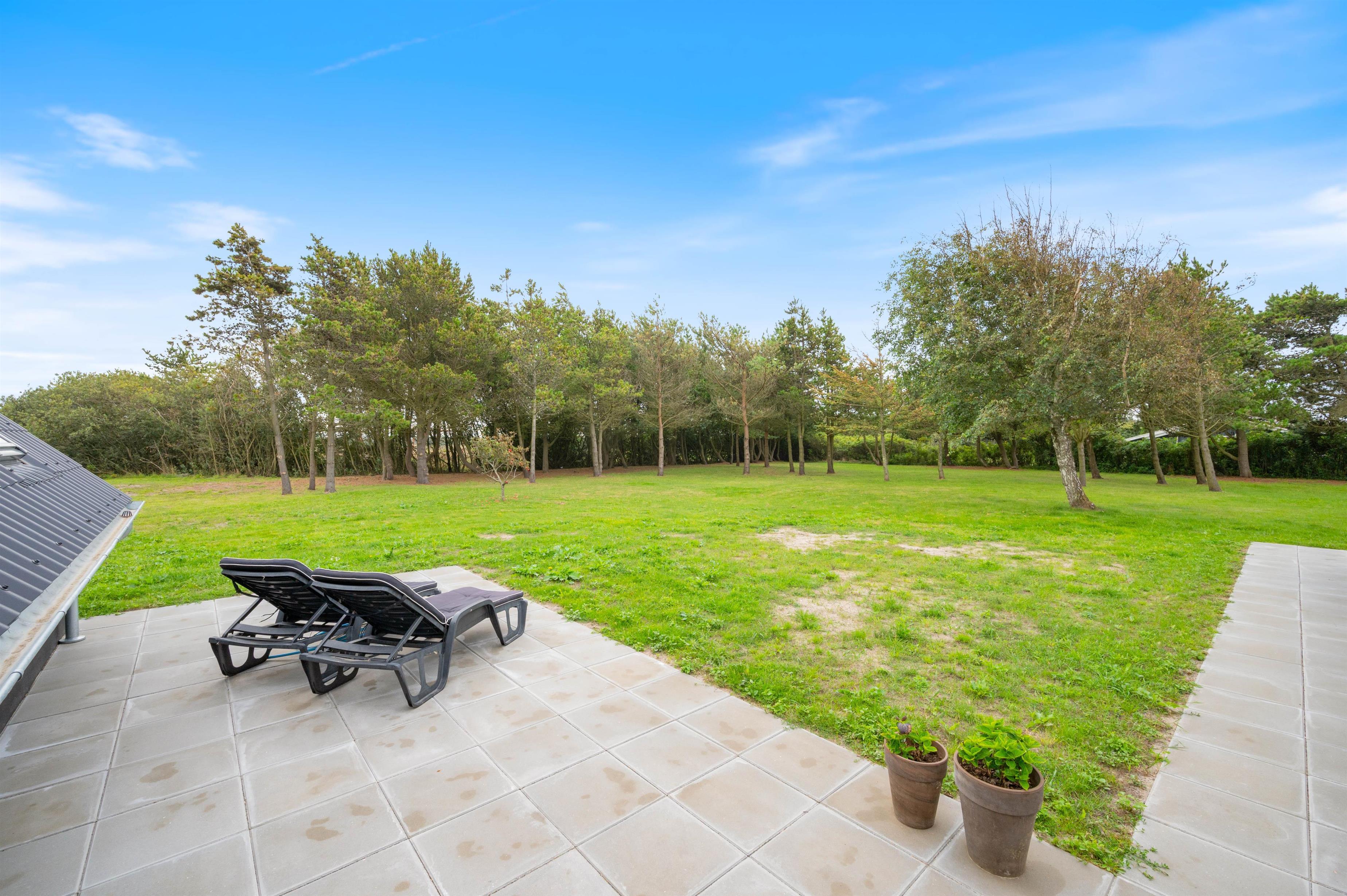 Fra opholdsstuen har I direkte udgang til den sydvendte terrasse og haven. Terrassen er delvist overdækket, og der findes både grill, solvogne og havemøbler til fri afbenyttelse. På den 2346 m2 store grund er der rig mulighed for at de mindste i familien, samt hunden kan boltre sig. Alt imens de voksne får en kølig drink på terrassen eller tilbereder et dejligt måltid mad over grillen.