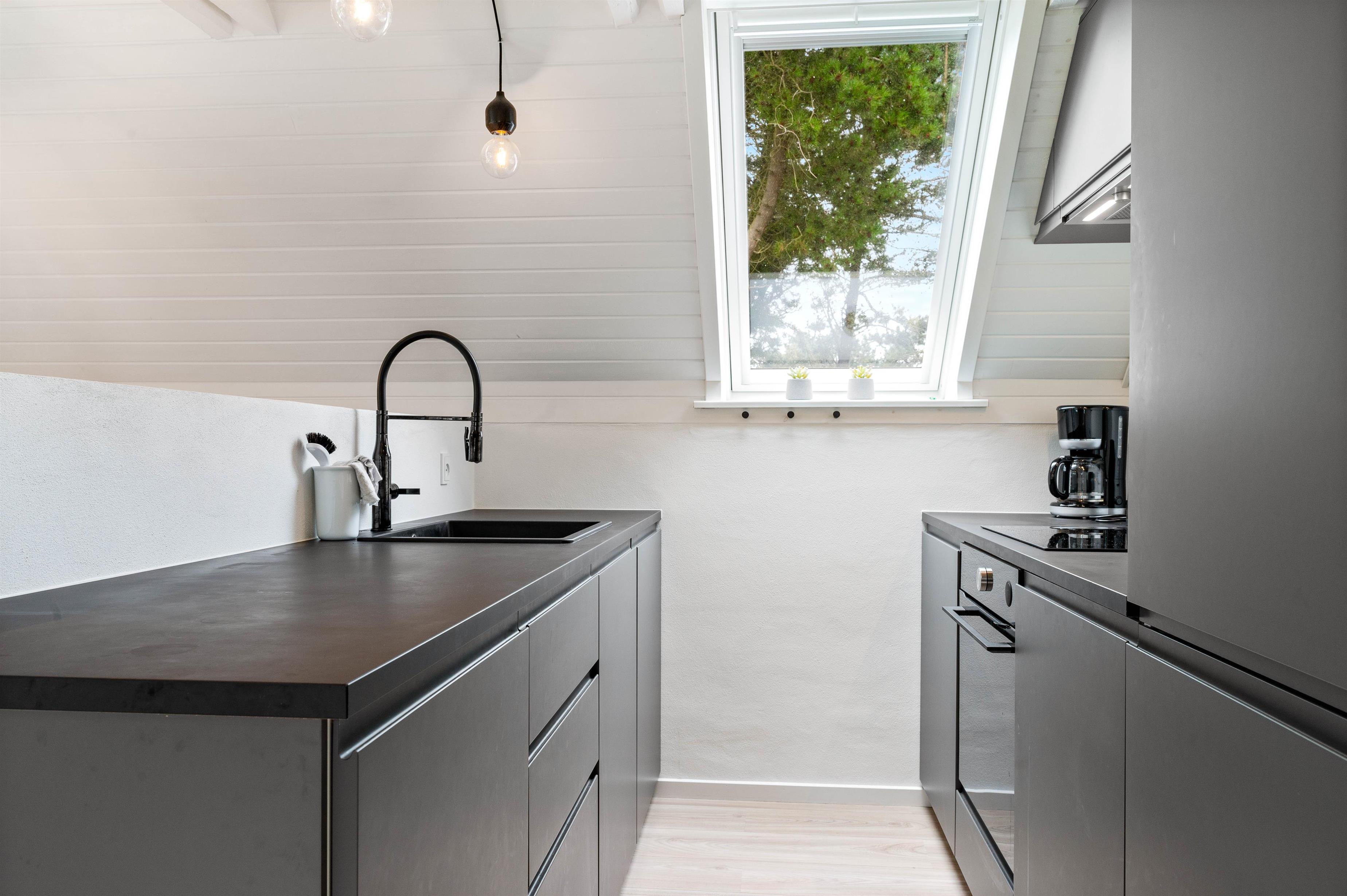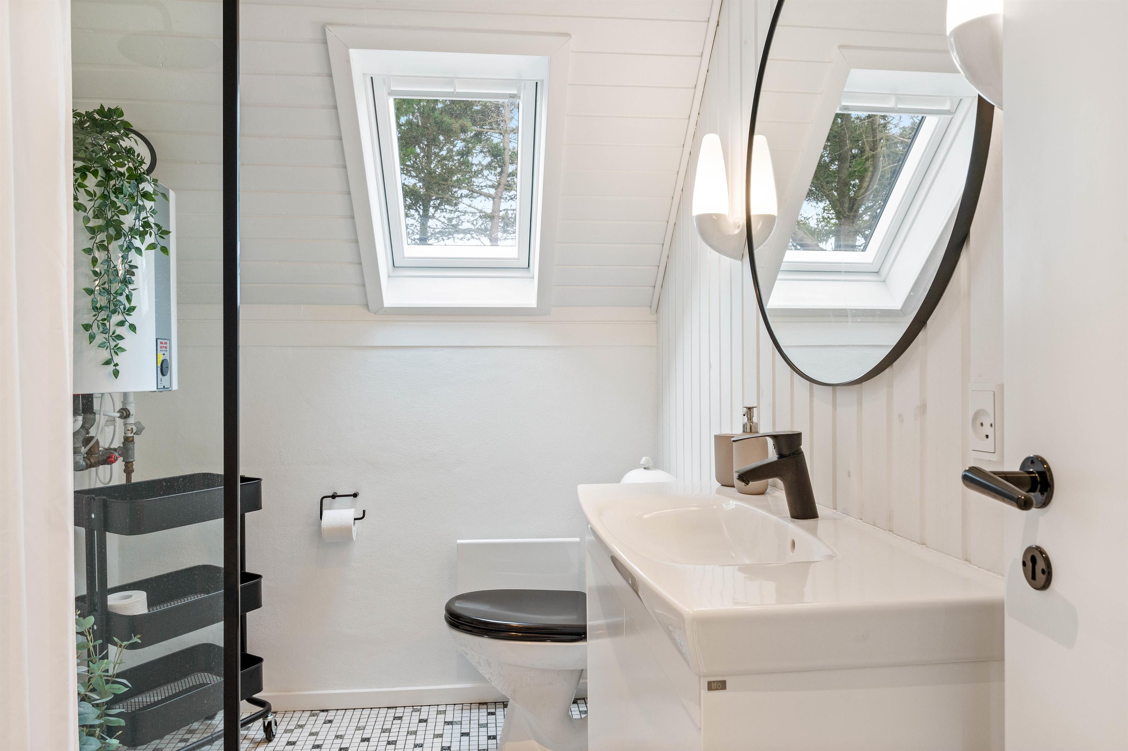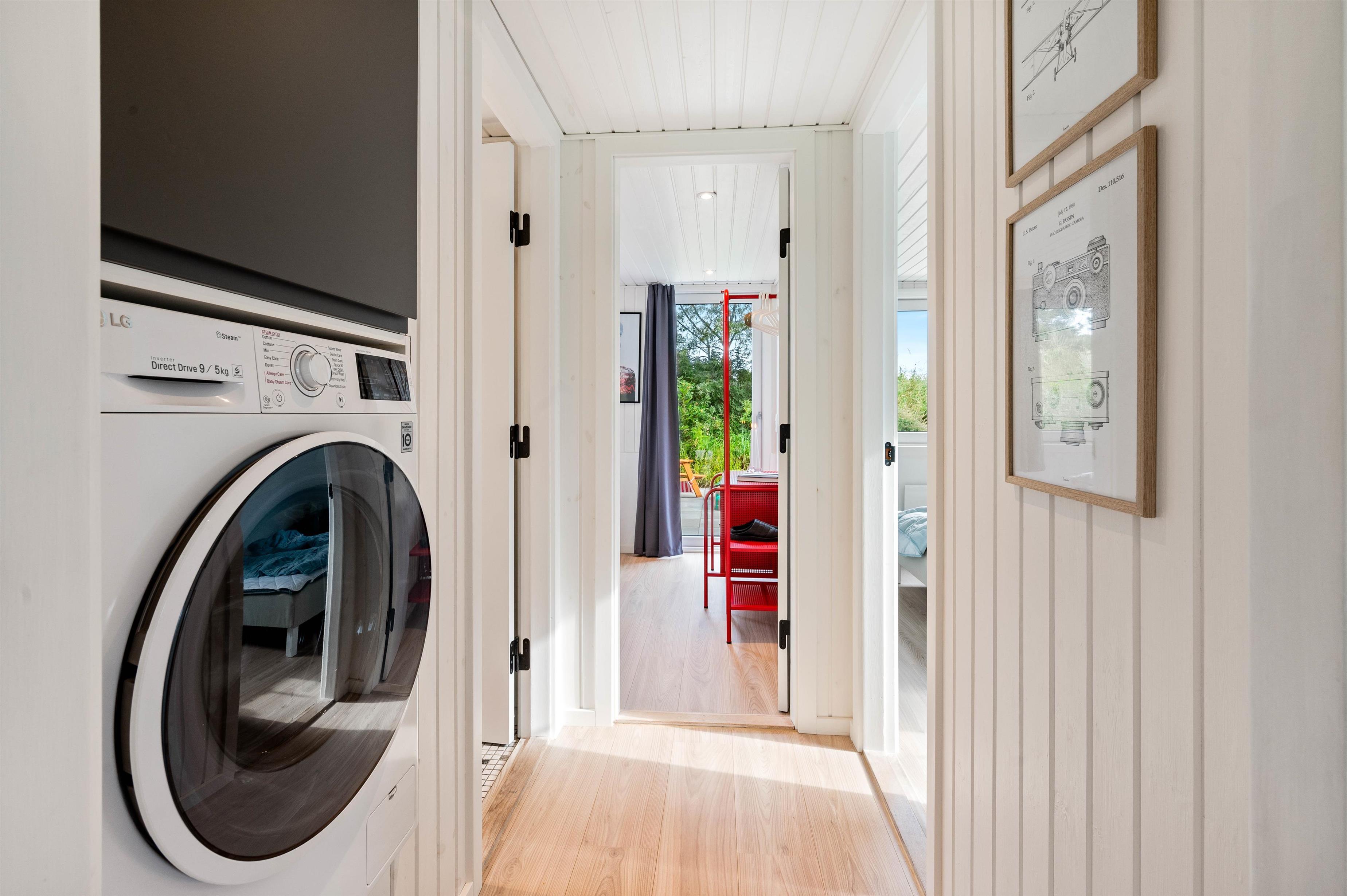 Sommerhuset rummer plads til seks personer og er fordelt på to soverum, og en hems som har kig ned til stuen samt et anneks. I annekset er der yderligere 2 sovepladser. Alle sengene er i størrelsen 180 x 200. Selve indretningen er lys og venlig og sommerhuset fremstår pænt og velholdt. Den fine opholdsstue med loft til kip vil uden tvivl udgøre feriens samlingspunkt, hvor I kan tilberede dejlige middage sammen, mens I planlægger feriens kommende aktiviteter. Brændeovnen sørger for ægte sommerhusstemning på køligere dage, hvor I kan sidde med en god bog i sofaen. Varmepumpen vil desuden sørge for behagelig og energibesparende temperatur. Ferieboligen har også en kombimaskine, dvs. en vaskemaskine og tørretumbler i een, så I kan få vasket tøj under ferien.