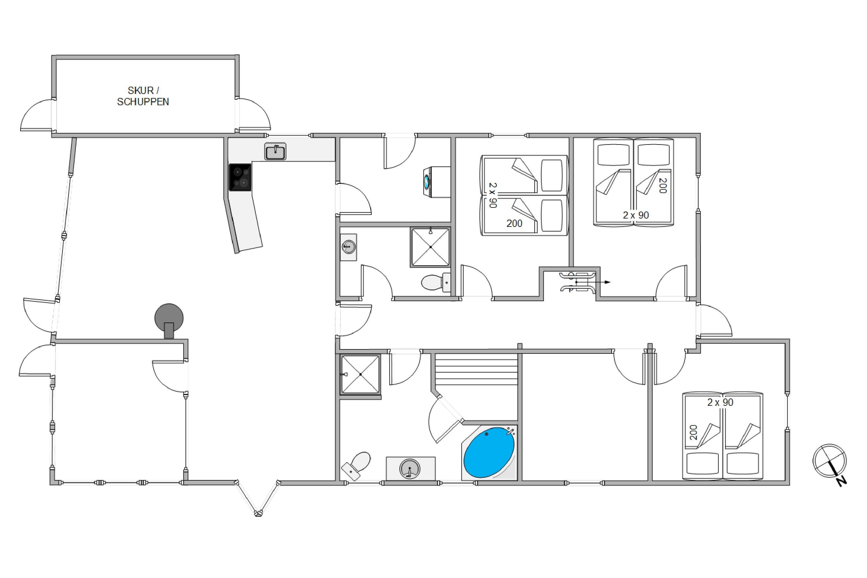 Det ene af de to badeværelser har endda sit eget wellness-område med både sauna og spa. Så når I kommer hjem fra en dejlig dag på stranden og ude i naturen, kan I blive varmet godt igennem.