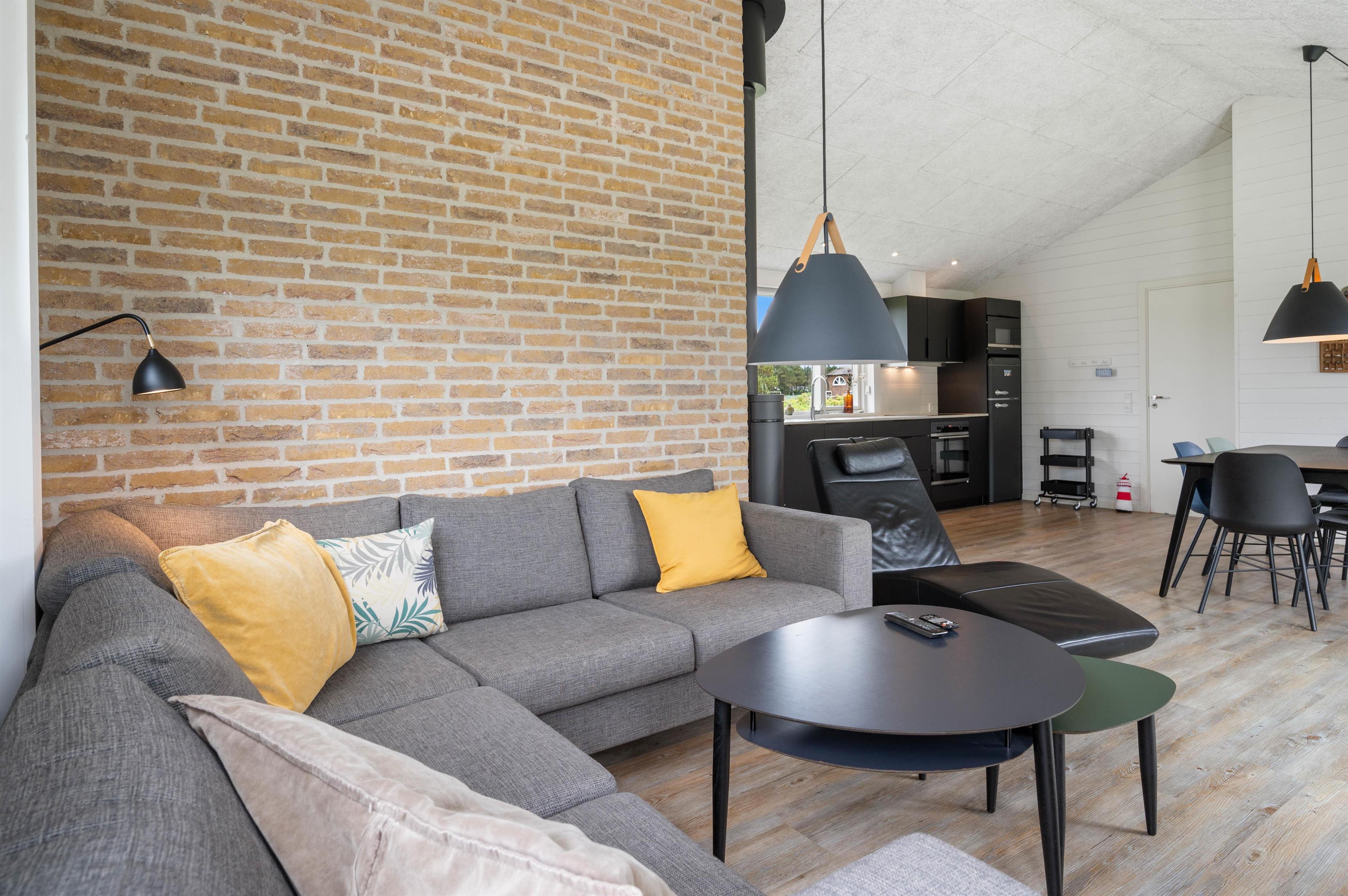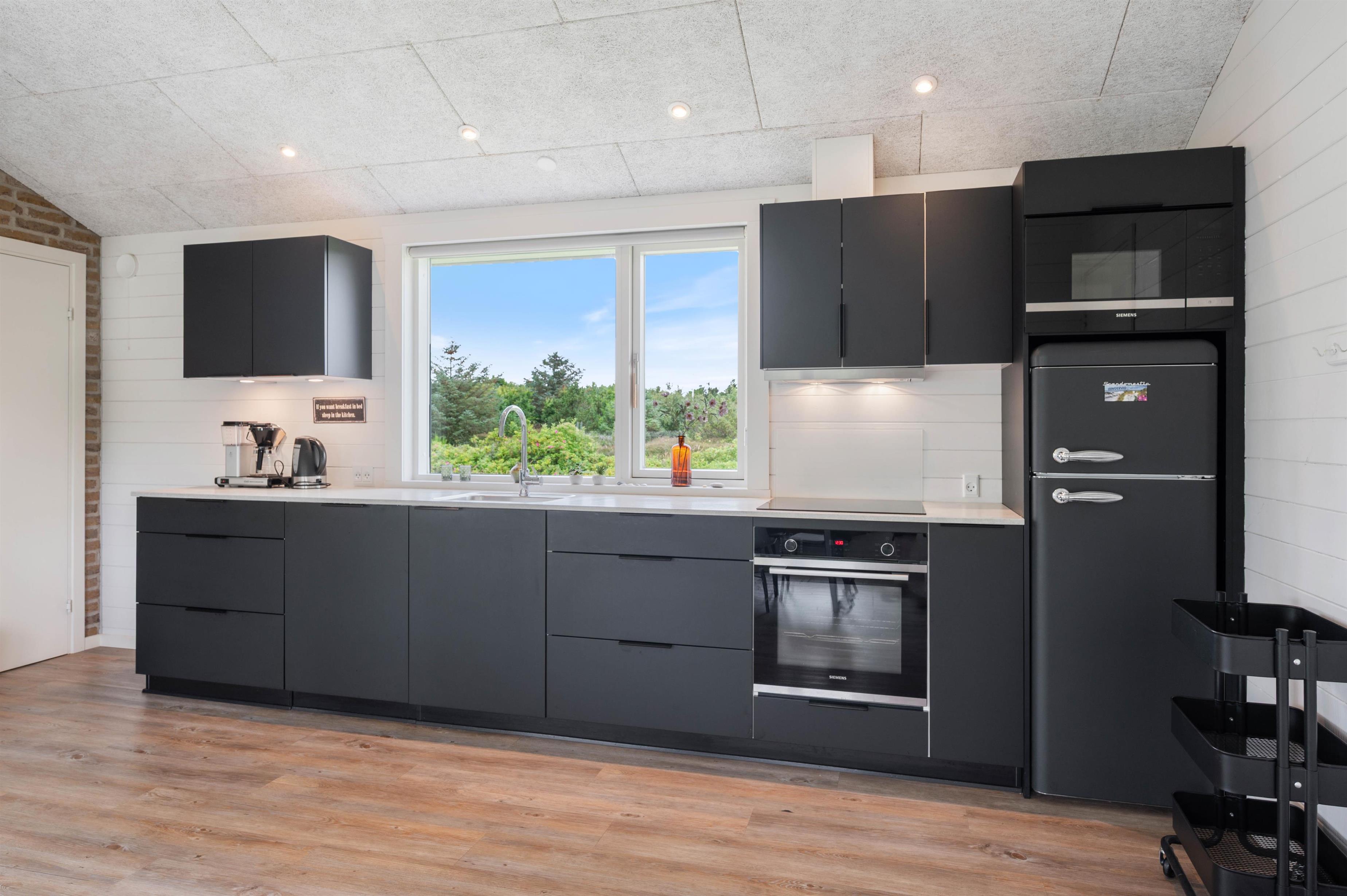 Omgivelserne er lyse og åbne, og det store køkkenalrum med stue er husets hjerte og familiens samlingspunkt på ferien. Det veludstyrede køkken har alt, hvad feriekokken har brug for, inklusiv opvaskemaskine der gør oprydningen efter middagen nem og bekvem, og brændeovnen fylder rummet med varme og hyggelig stemning i årets kolde måneder. Der står også et ekstra køleskab til rådighed.