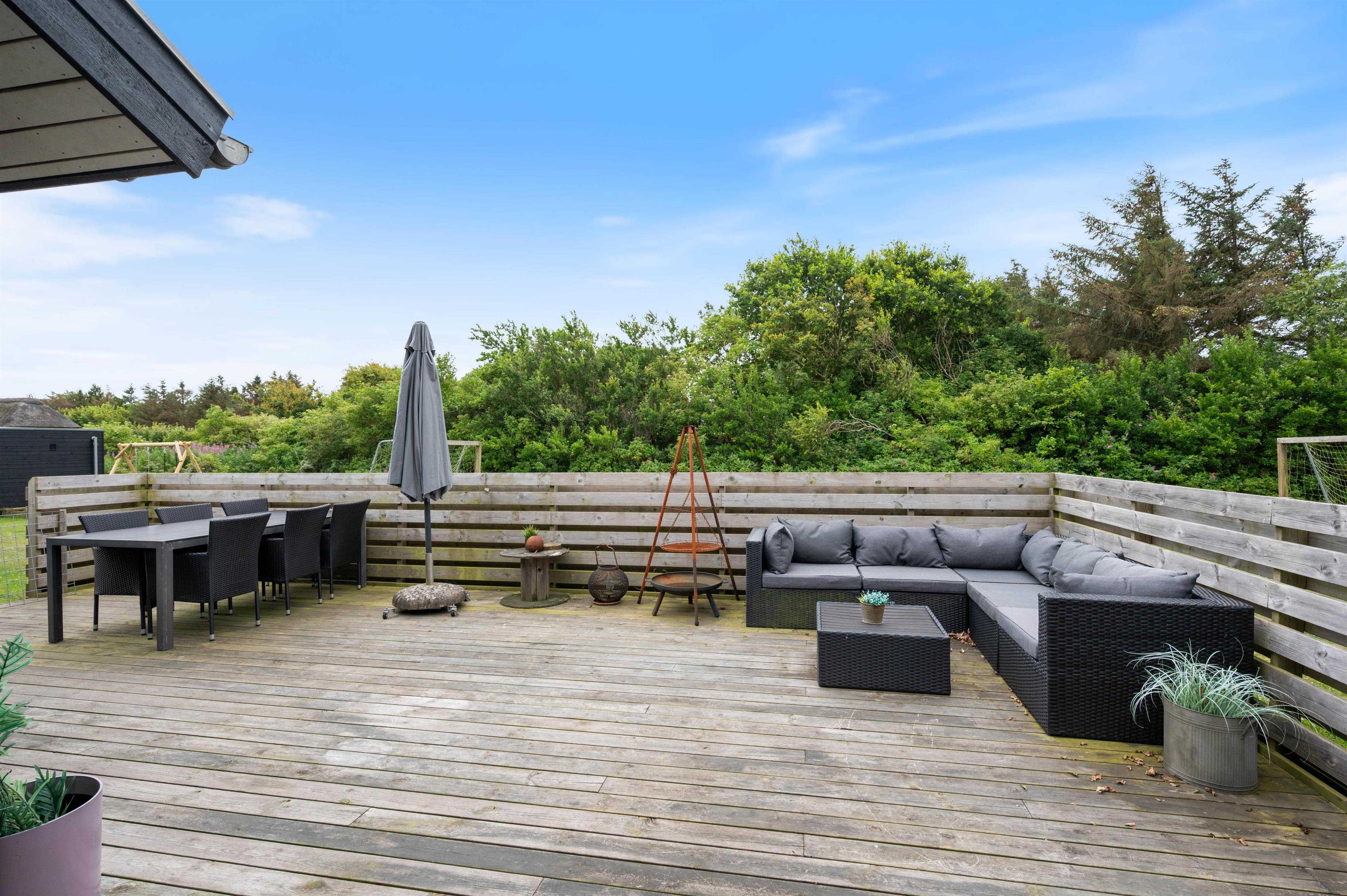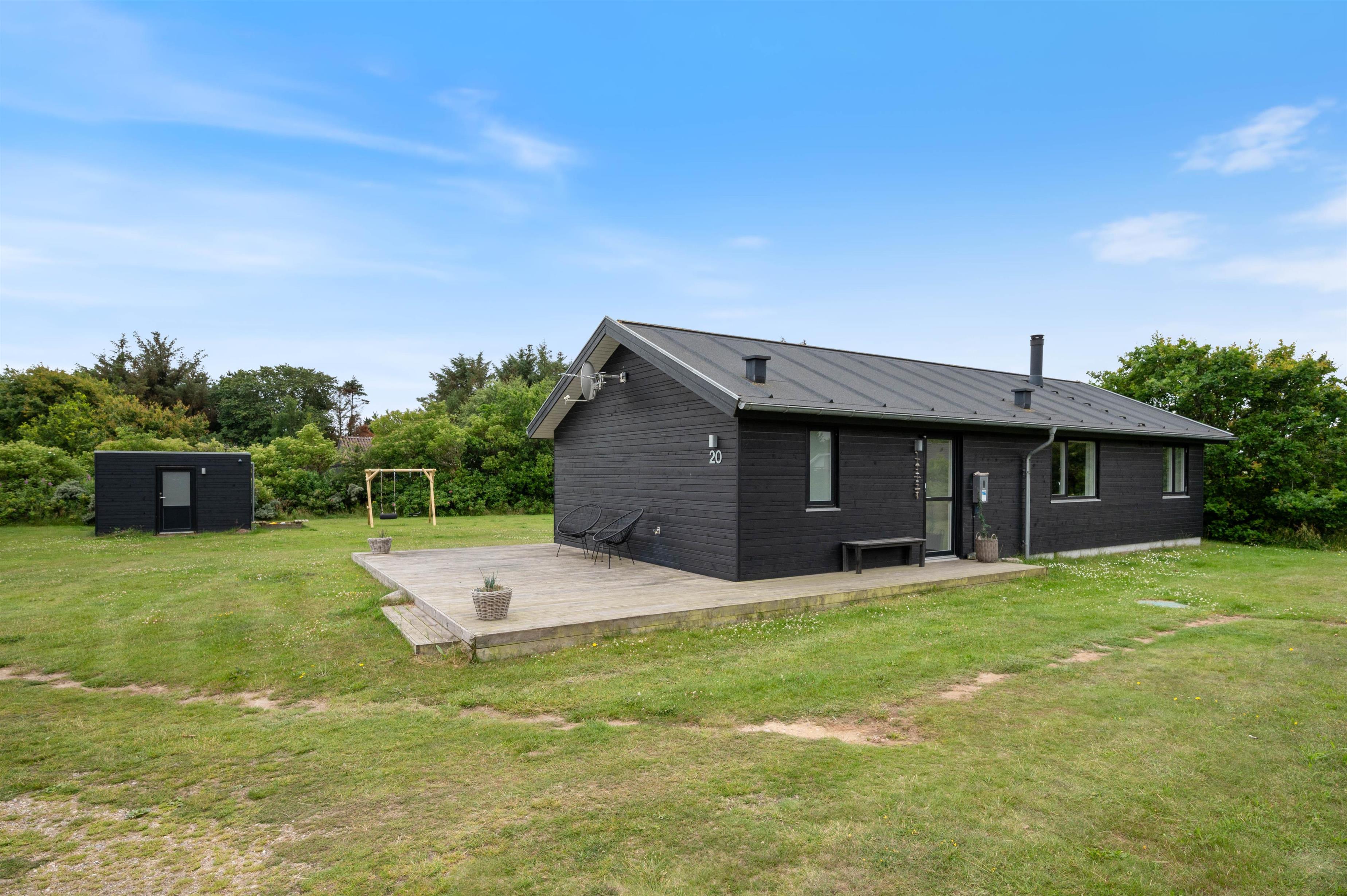 Lodbjerg Hede er et populært ferieområde, der især er kendt for sin grønne natur, store feriehusgrunde og fredfyldte atmosfære. Det er også tilfældet på Brunbjergvej 20 - der er både en stor terrasse med masser af plads til at slappe af og solbade og ikke mindst en stor have med sandkasse og gynge til børnene.