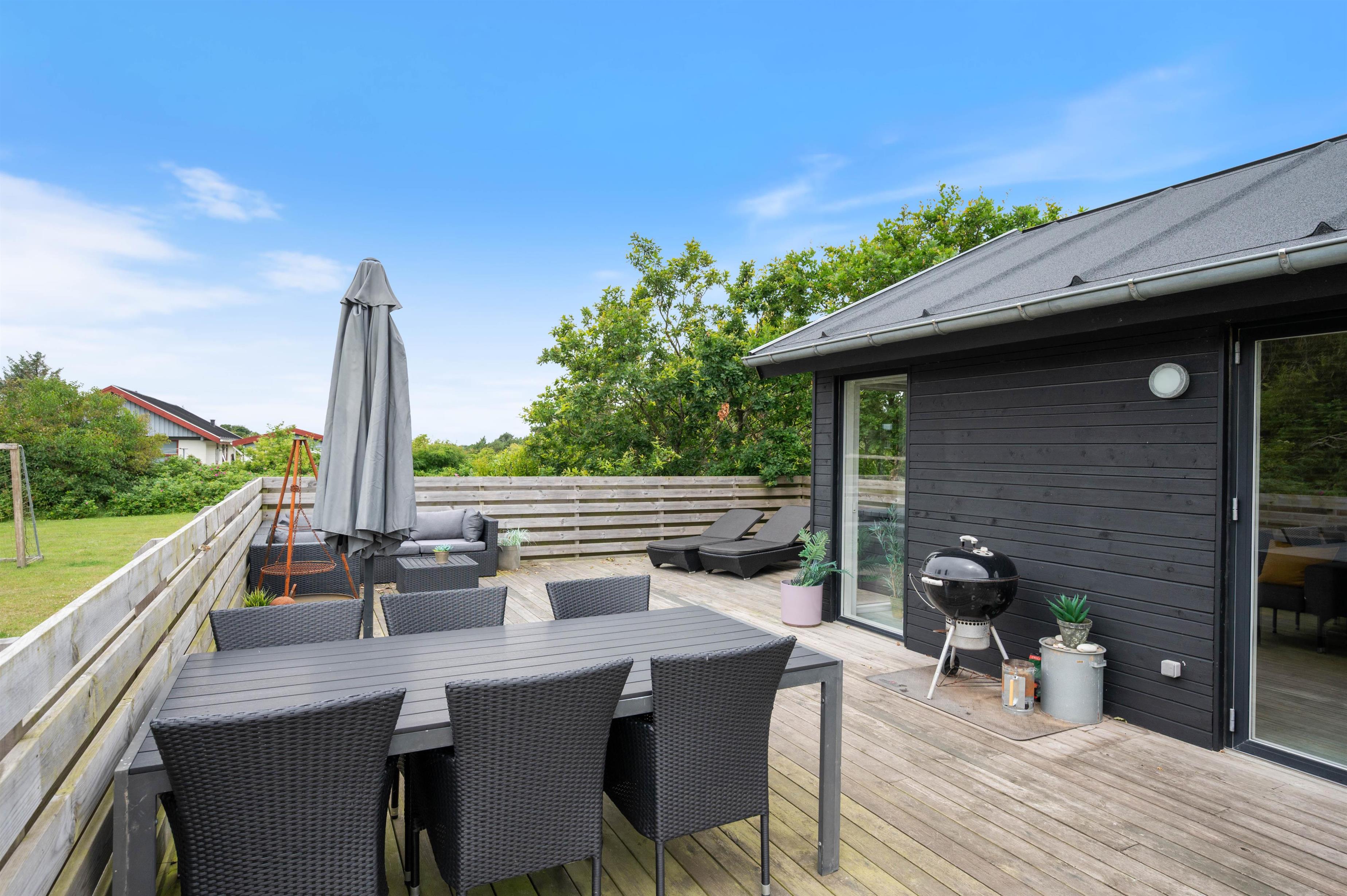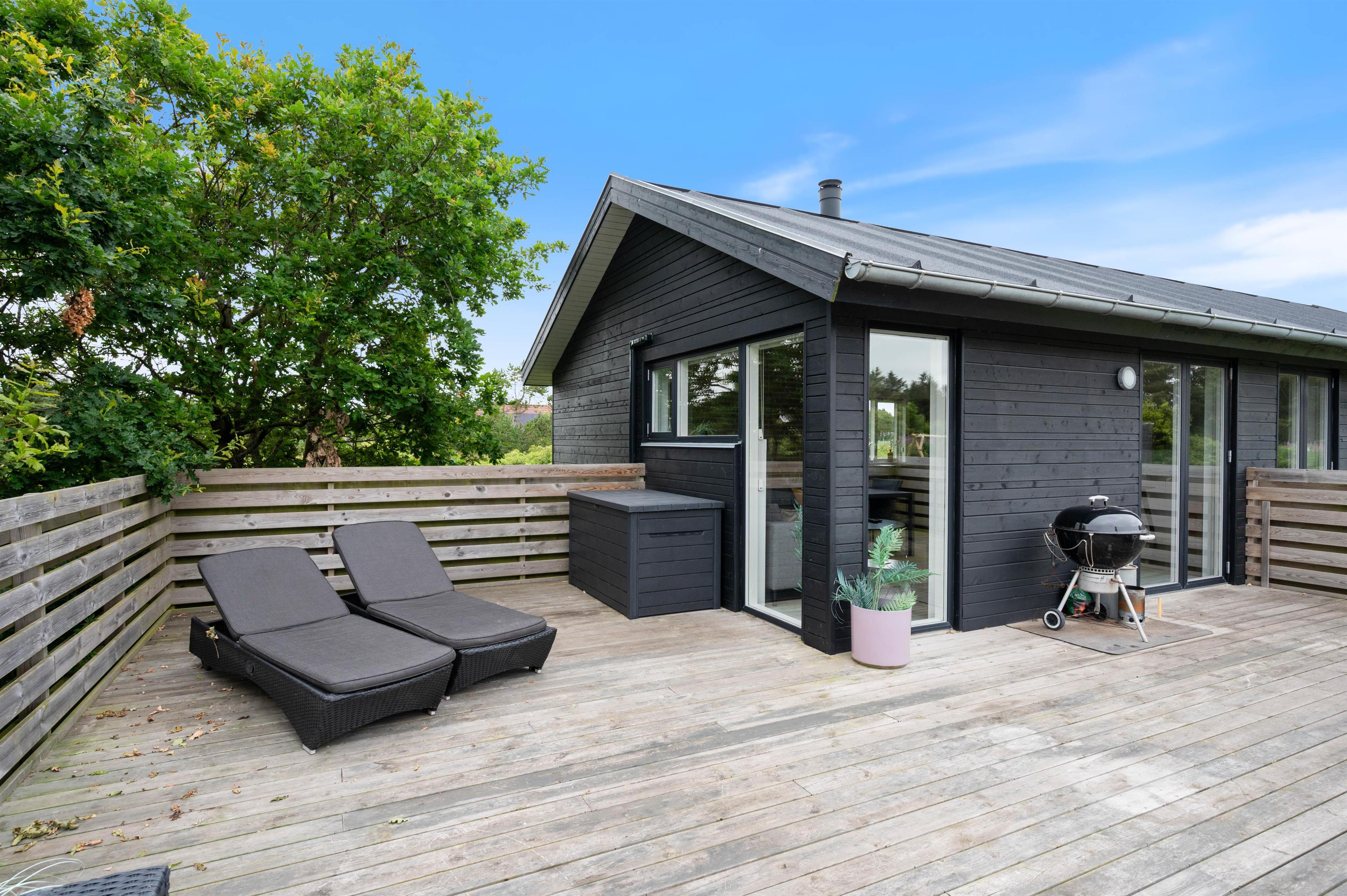 På en knap 2.500 kvadratmeter stor plænegrund nær søndervig på Brunbjergvej 20 finder I dette stilfulde og lækre feriehus, som byder på en sommerhusferie lidt ud over det sædvanlige. Huset er opført i 2019 er stilfuldt indrettet kvalitetsbevidste møbler, en sauna og brændeovn, og udvendigt får I de lækreste omgivelser med stor terrasse mod sydvest og øst og masser af græsplæne, hvor børnene og hundene kan lege.