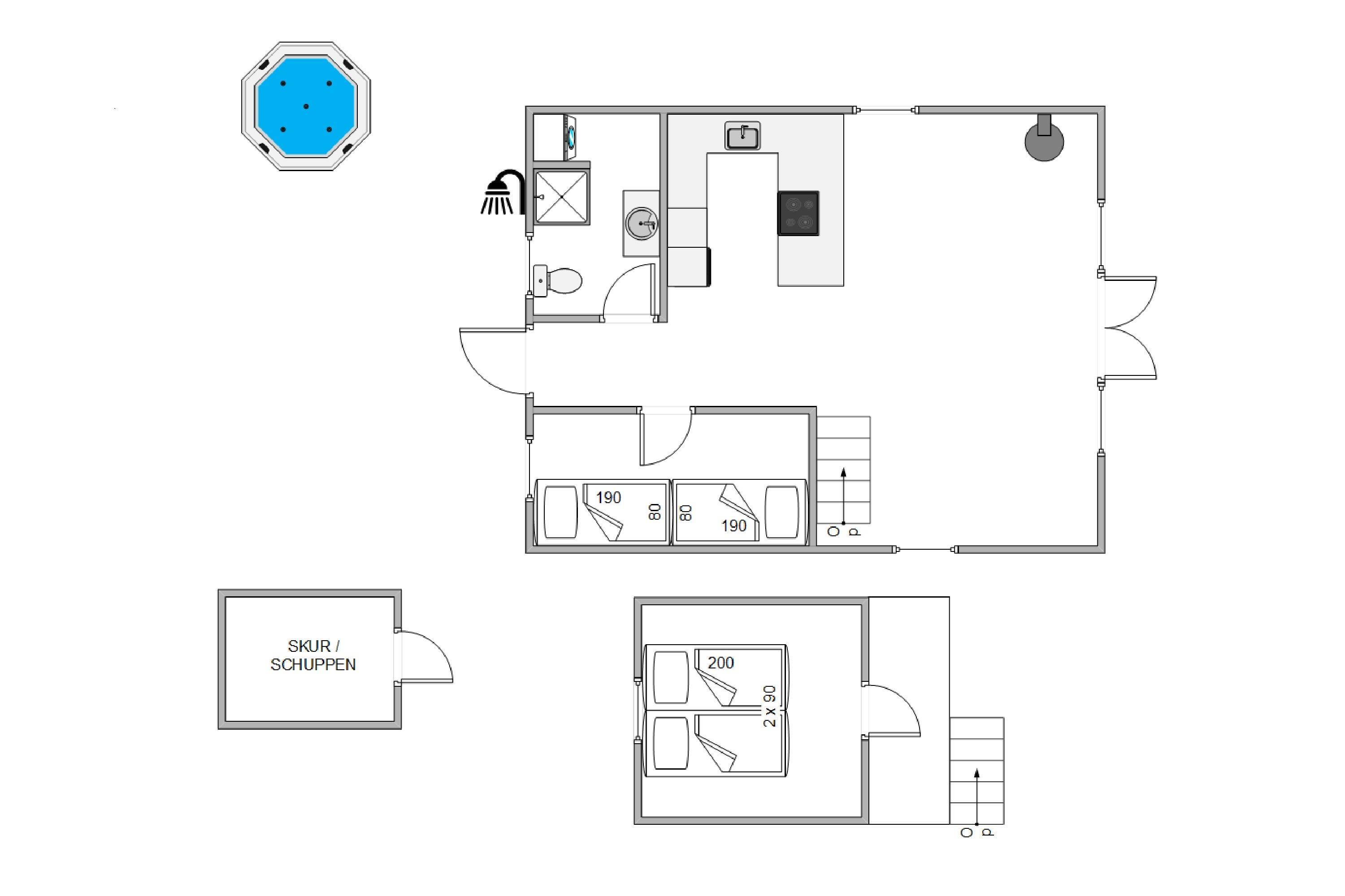 Derudover rummer stueetagen et soveværelse med 2 enkeltsenge og et badeværelse med gulvvarme. Brusenichen på badeværelset er blevet renoveret i 2023. Det sidste soveværelse er udstyret med dobbeltseng og befinder sig på førstesalen.