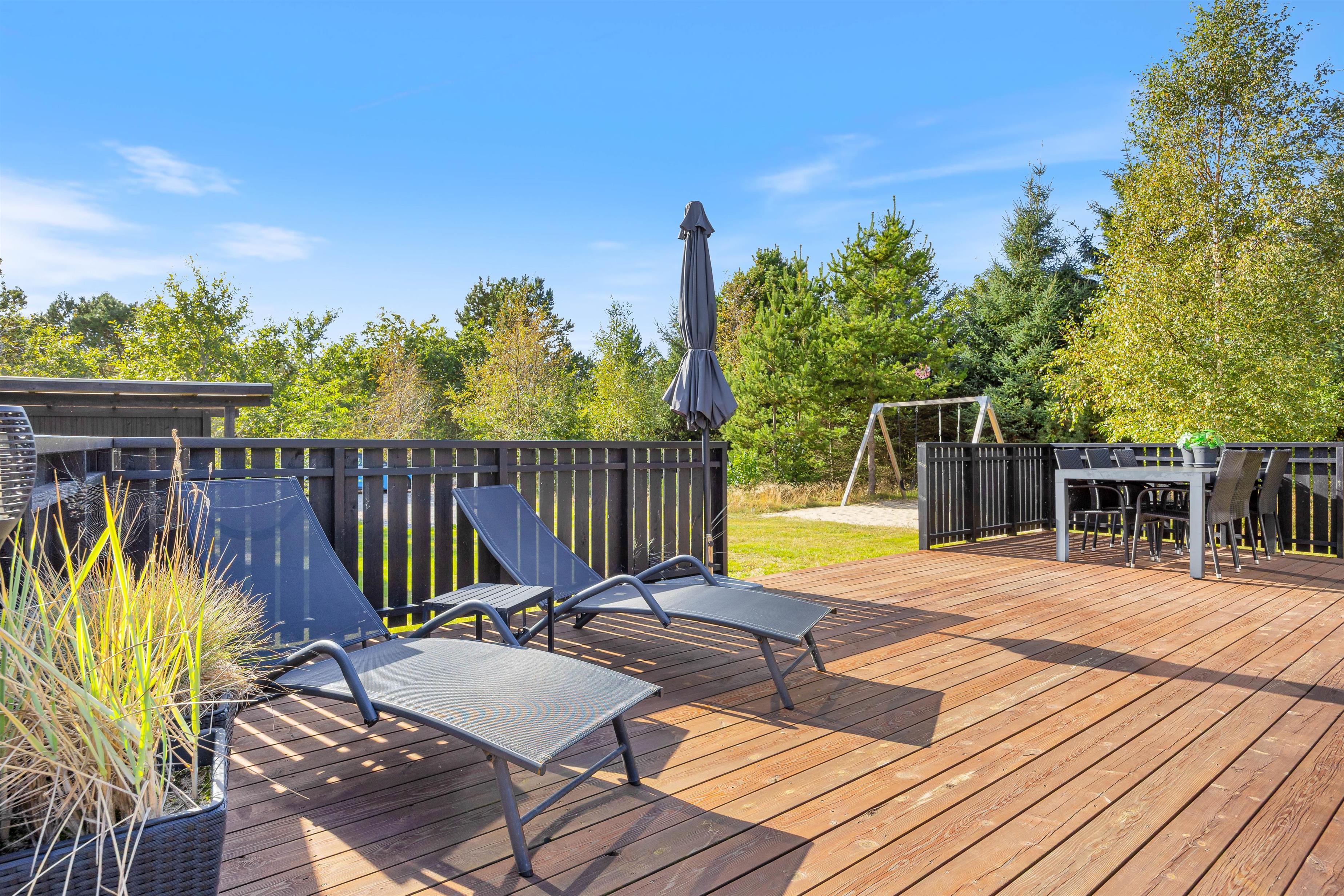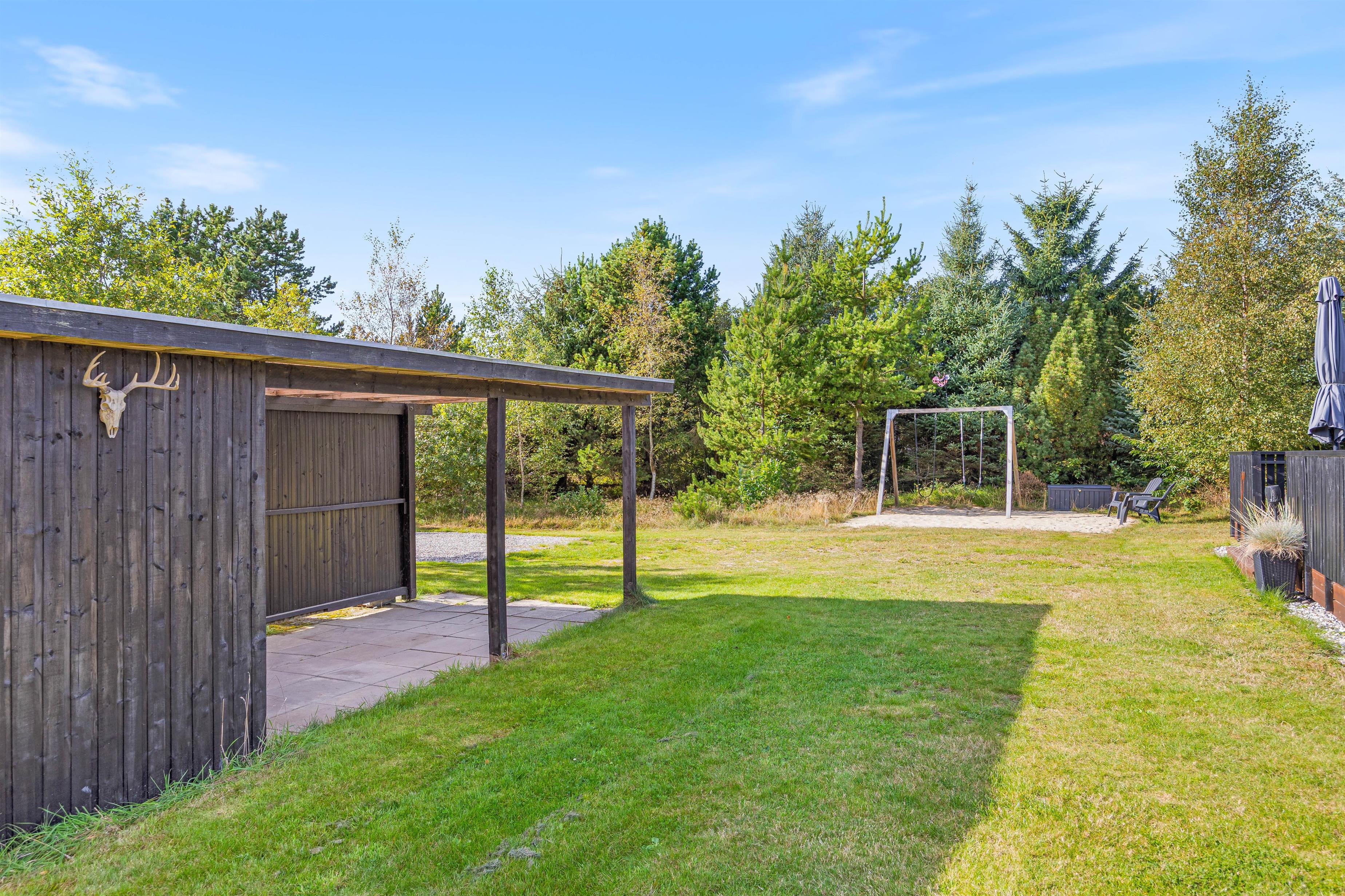 Blot 2300 meter fra det betagende Vesterhav kan strandelskere nyde sol og sand uden lange køreafstande. Når I har behov for at fylde køleskabet, findes indkøbsmuligheder bekvemt og nemt 3500 meter fra sommerhuset. Udendørs kan I nyde de dejlige terrasser, hvad enten man foretrækker den åbne, overdækkede eller afskærmede del, og der er havemøbler til pure afslapning. Børnene vil elske at lege i haven med gynge og sandkasse, hvilket giver jer mulighed for afslapning i solen. Med dets mange faciliteter og en beliggenhed, der balancerer roen fra den danske natur med let adgang til havet, er dette sommerhus i Lodbjerg Hede den perfekte base for jeres næste ferie sammen.