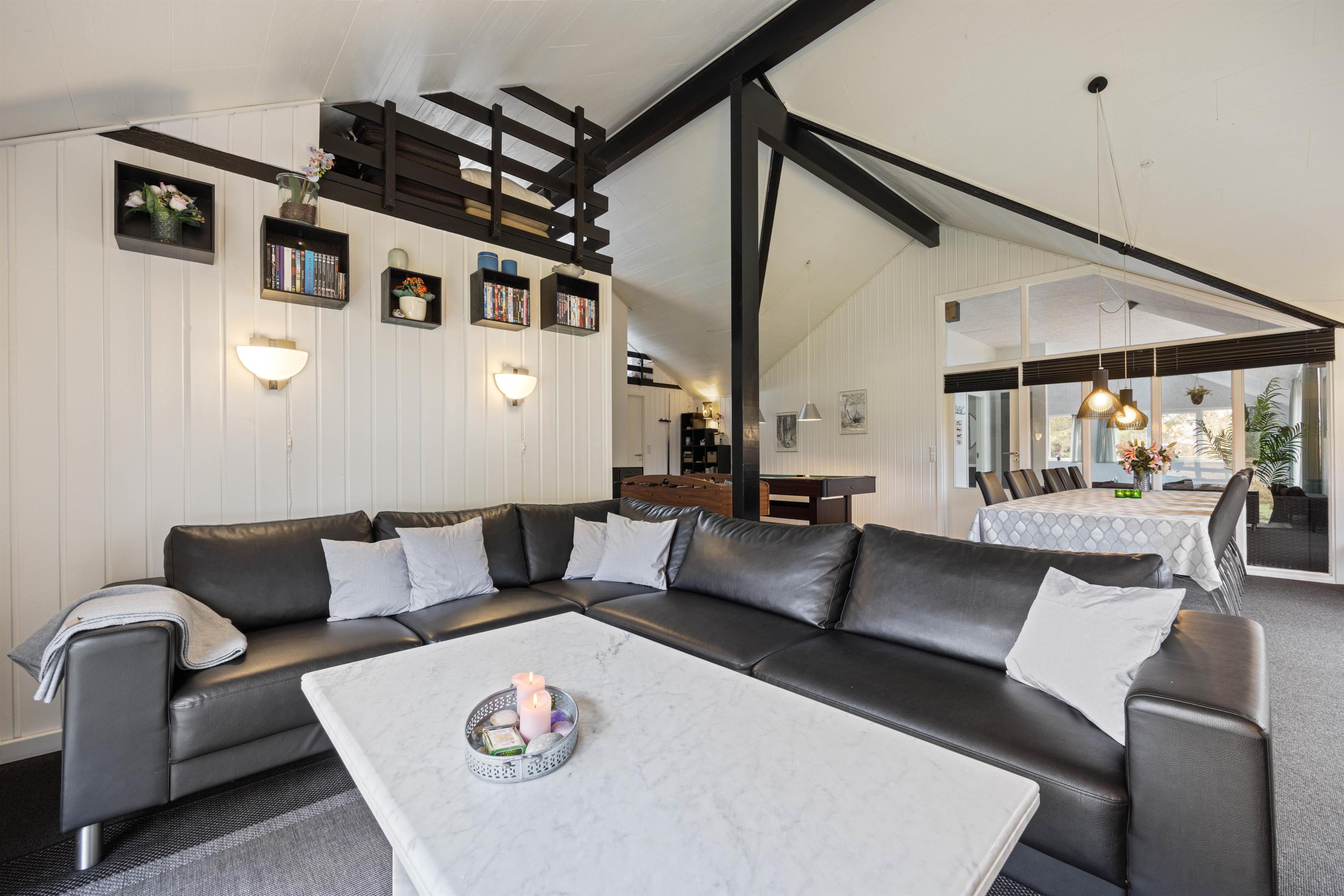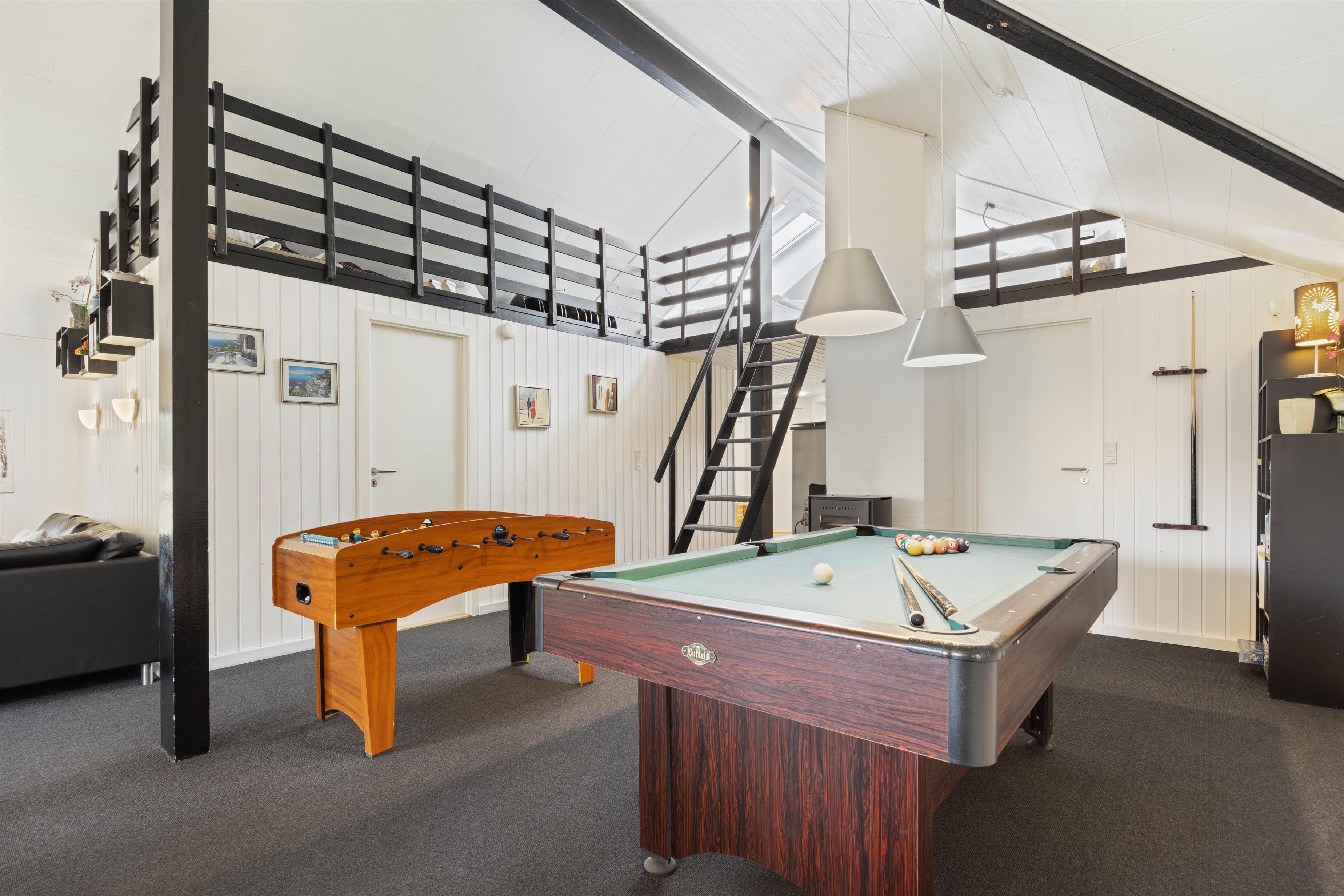Når I træder ind i feriehuset, bliver I mødt af det store opholdsrum, som forbinder køkken, stue, spiseplads og aktivitetsrum. Her kan I lave mad sammen, planlægge jeres næste ferieaktiviteter eller se en film sammen. På regnvejrsdage byder feriehuset på masser af aktiviteter med et poolbord og et bordfodboldbord, så der er ingen chance for kedsomhed. Du kan krone billardmesteren, mens brændeovnen i baggrunden sørger for hyggelig varme og den typiske sommerhusstemning. Der er også installeret en energibesparende luft-til-luft varmepumpe, som spreder en behagelig varme i hele feriehuset.