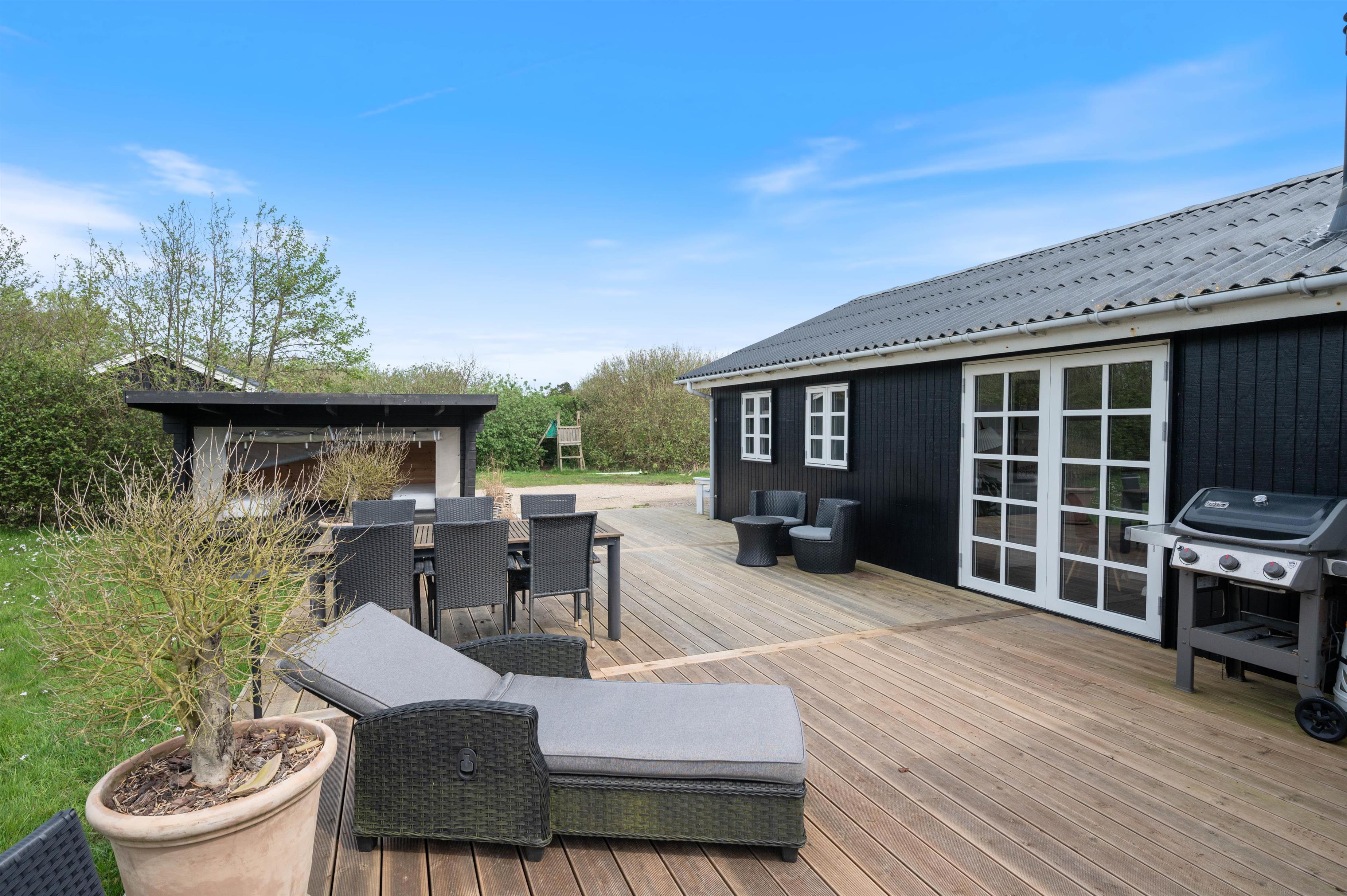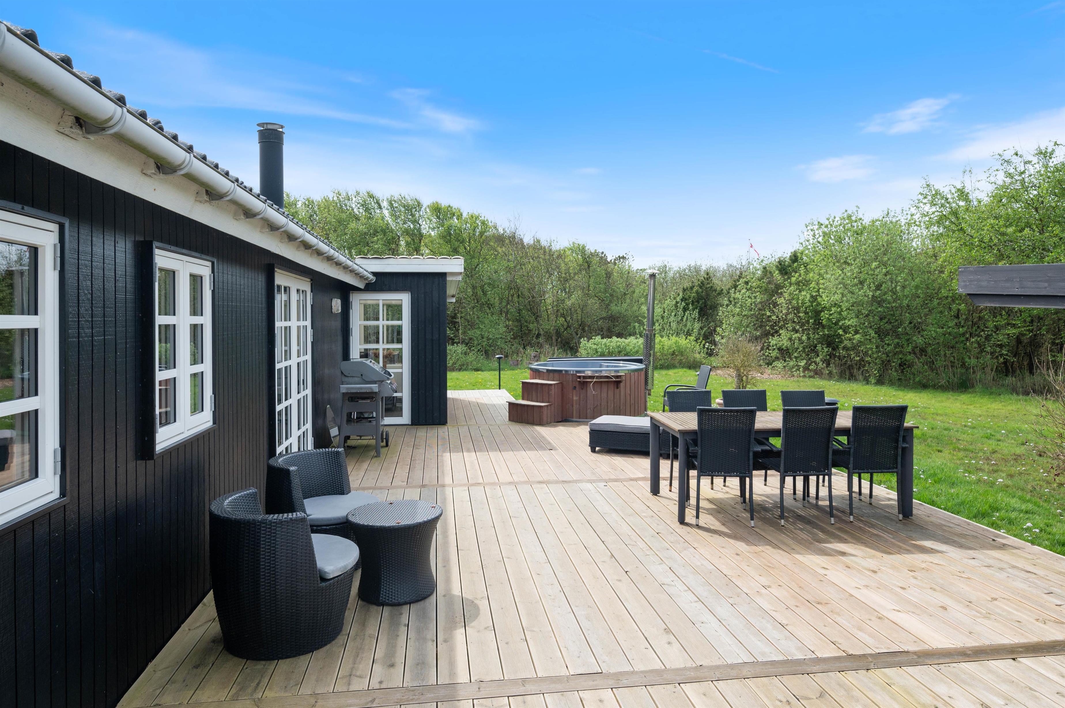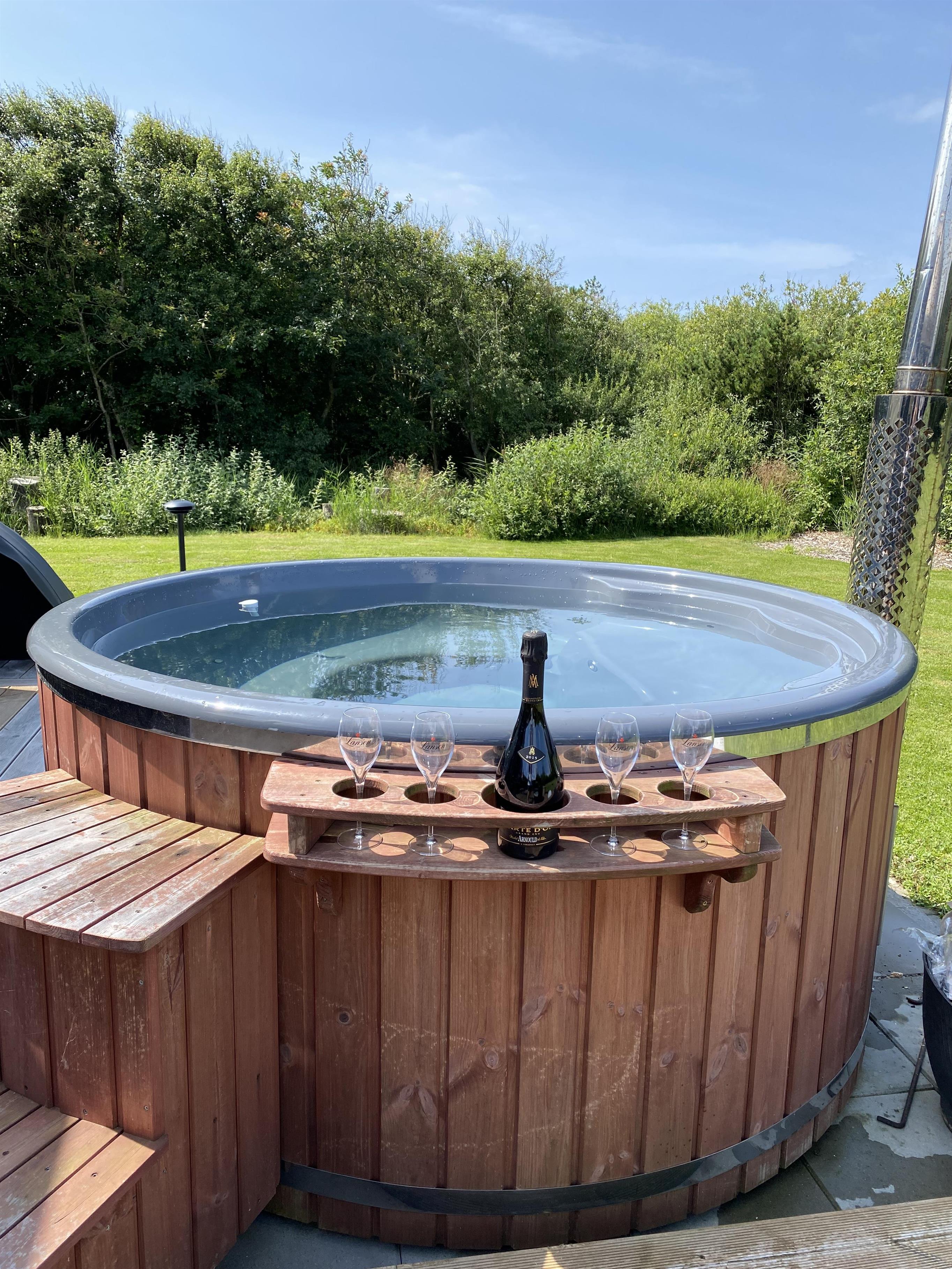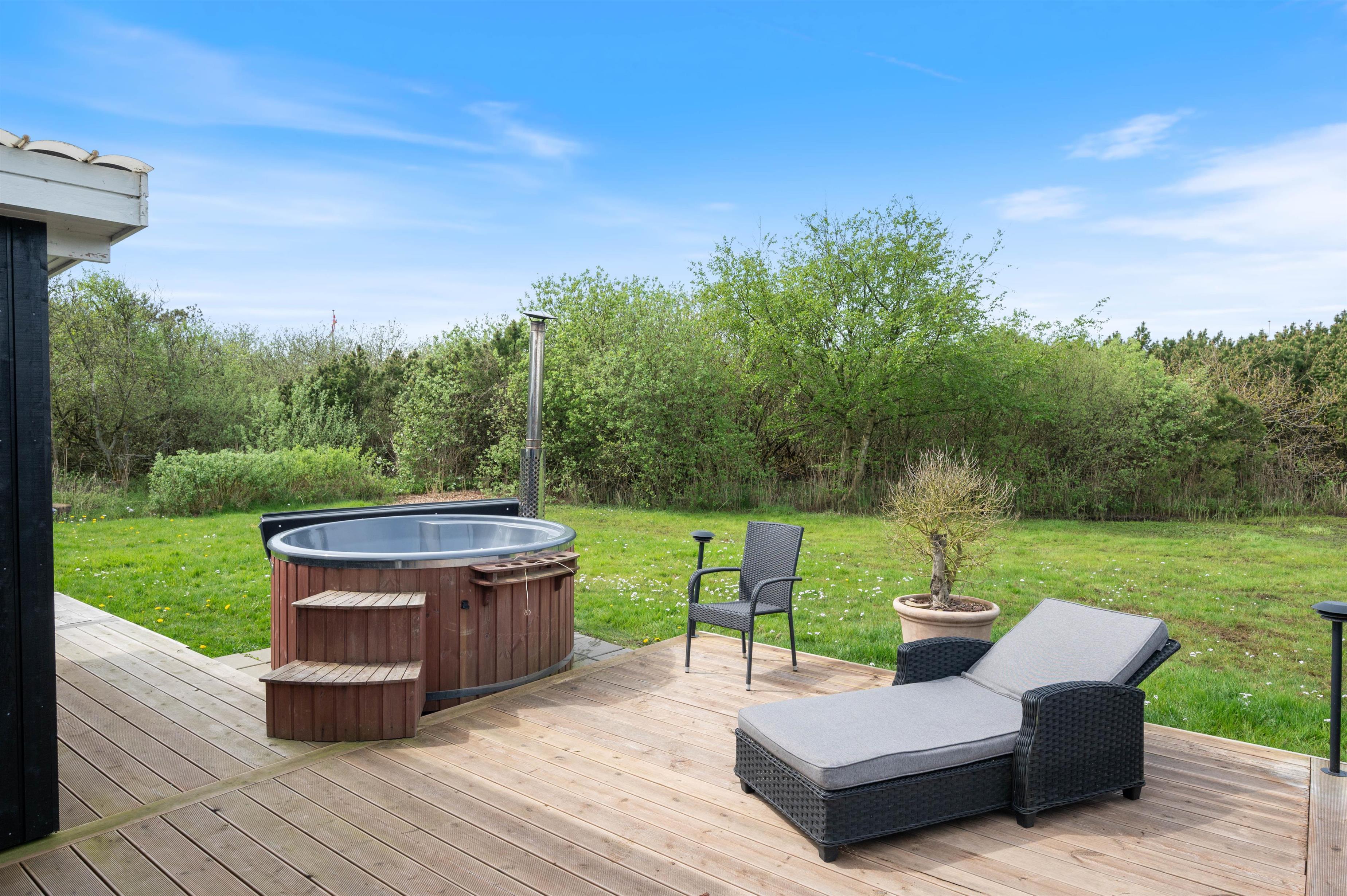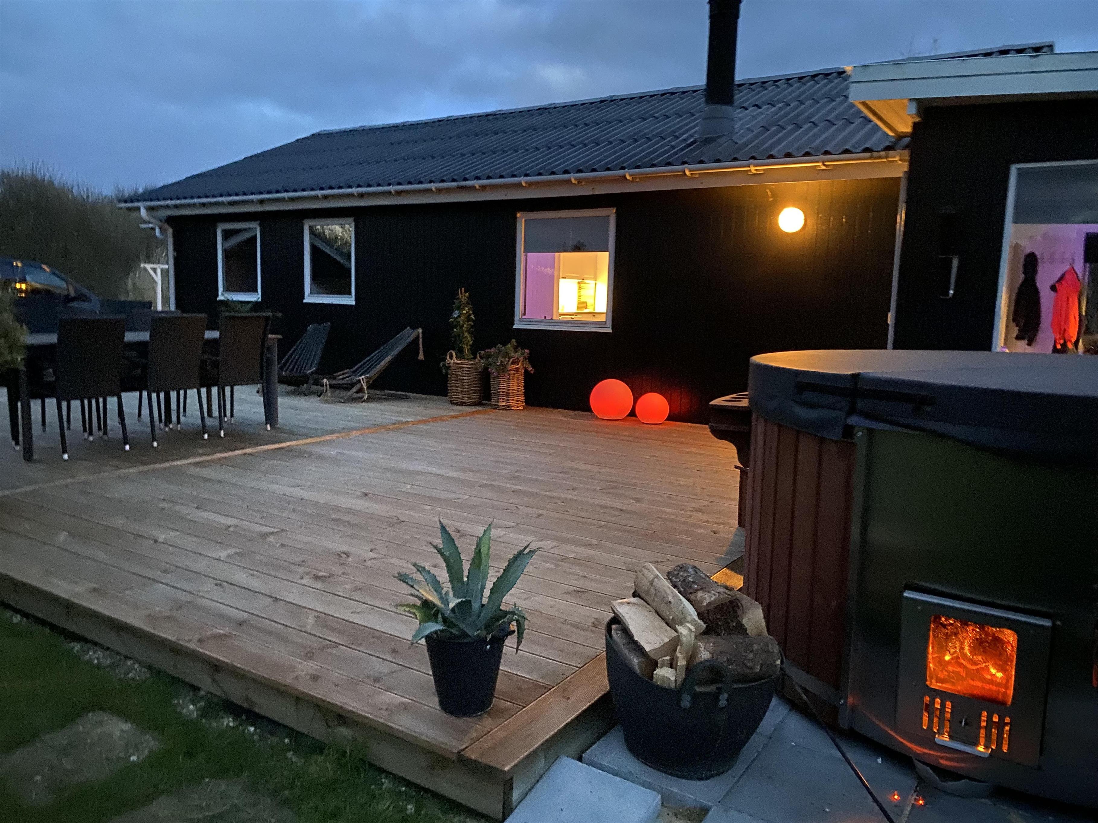 Også på terrassen vil I mærke ferien. Nyd solens stråler og nyd et lækkert måltid fra den tilhørende grill, mens børnene og jeres firbenede ven kan slippe dampen løs på grunden. I denne atmosfære smager den lækre kolde drink så meget bedre, og I kan samtidig med nyde boblerne fra det skønne vildmarksbad. Sæt jer godt til rette i det varme vand, nyd en drink under stjernehimlen. Vildmarksbadet vil give jer fantastiske ferieøjeblikke og en masse glæde. På grunden finder I også et shelter.