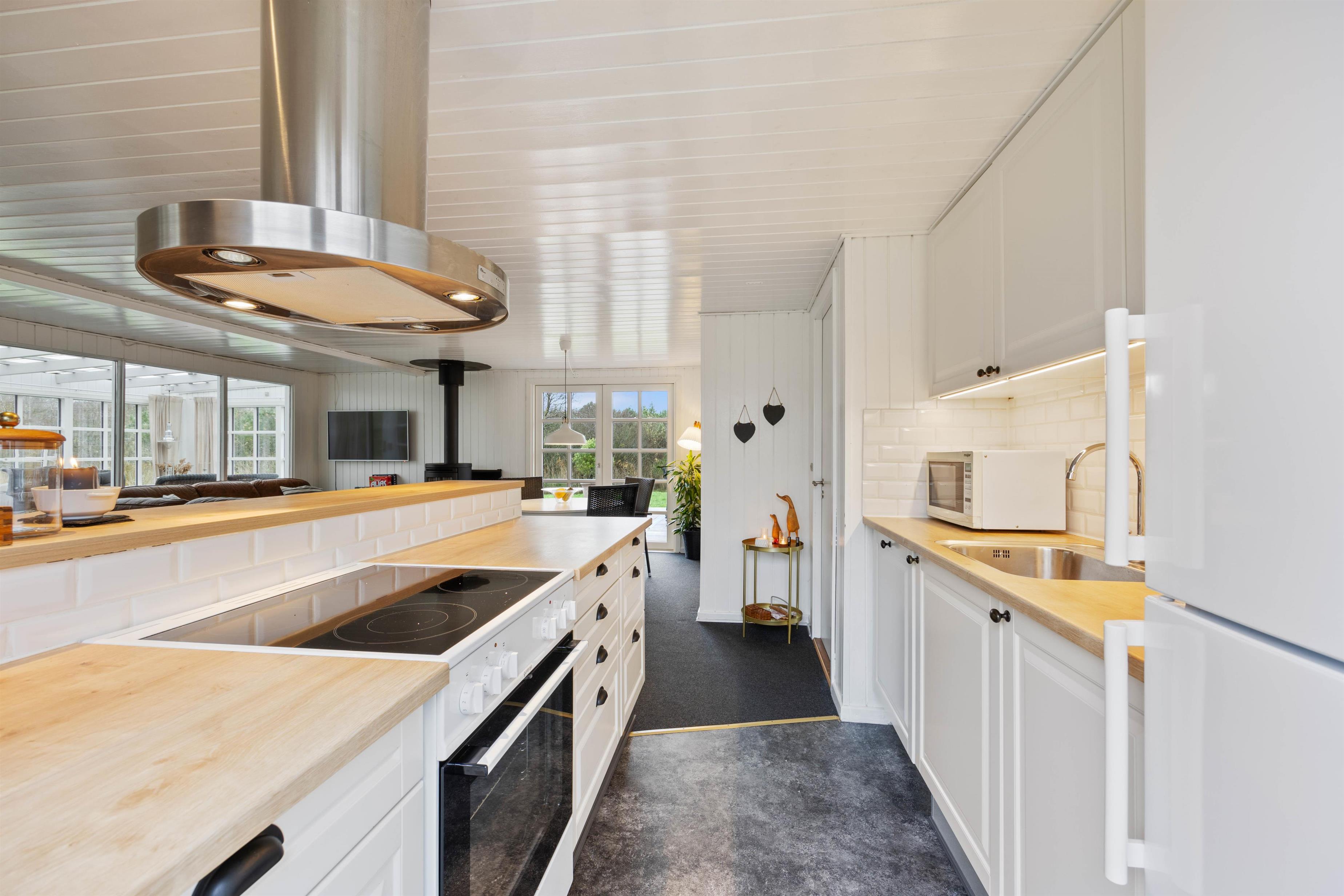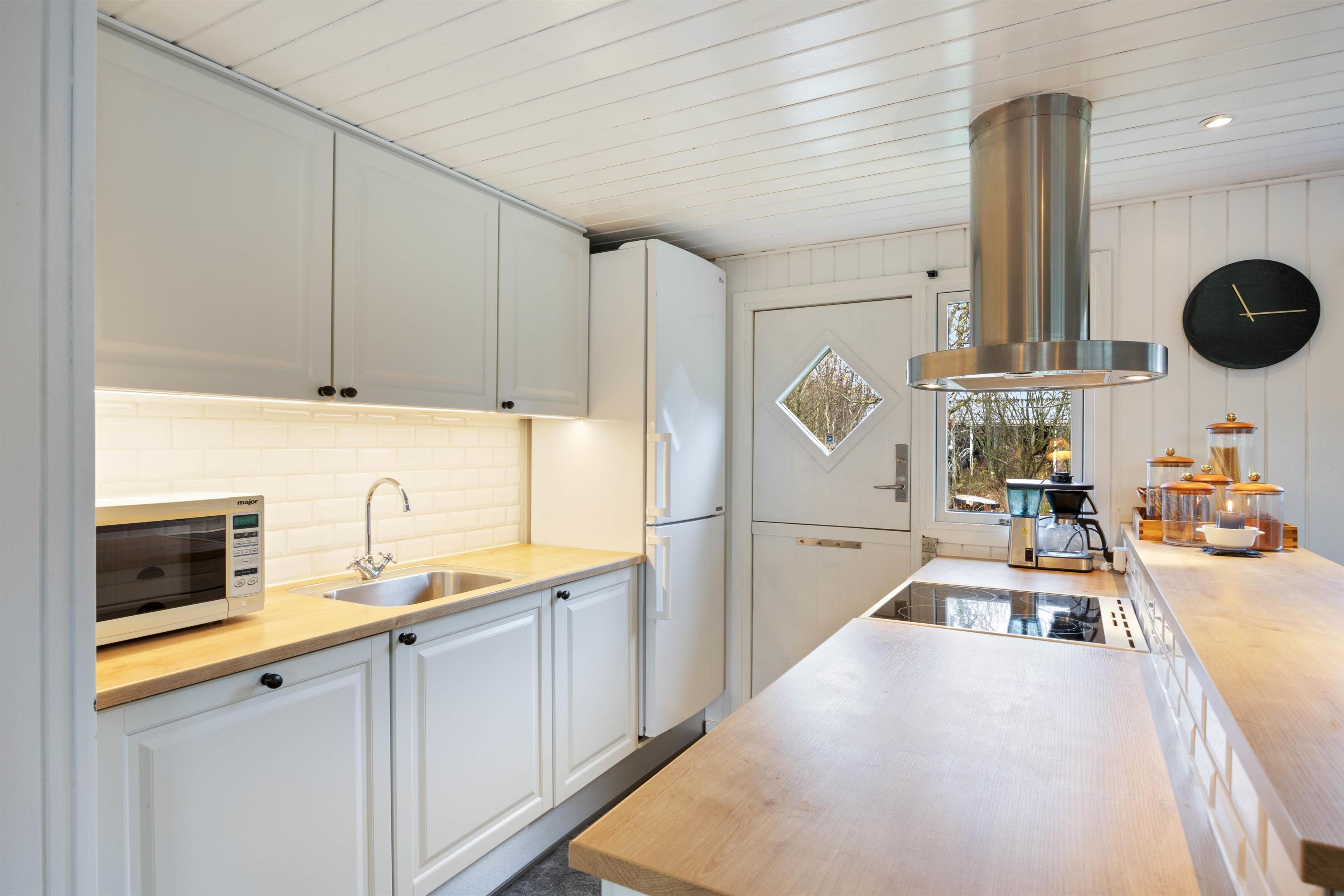 Det er en fornøjelse at lave mad i det veludstyrede køkken og efterfølgende at nyde aftensmaden sammen. Selv maden kan I være fælles om, takket være feriehusets åbne indretning. Om aftenen kan I hygge jer med spil ved spisebordet eller slappe af foran pejsen med et godt glas vin. Dette feriehus byder på ren feriehygge.