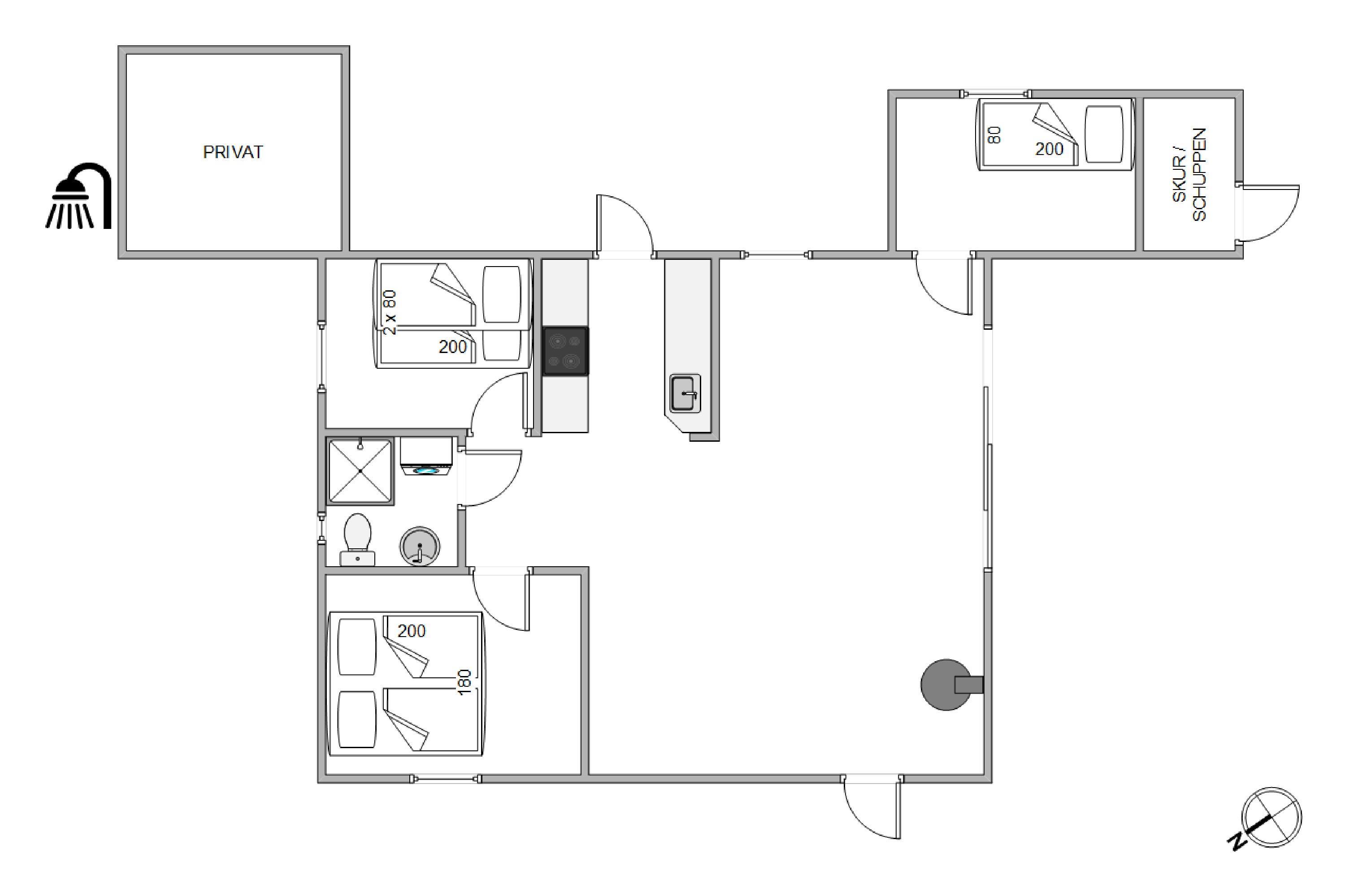 Her på Rævekrogen 5 har I nogle indbydende udearealer, som gør sommerhuset endnu mere attraktivt. På den 2000 m² store grund er der masser af plads til udendørs aktiviteter. I vil kunne finde en trampolin, et gyngestativ et legetårn med rutsjebane og en sandkasse, der kan underholde børnene i timevis. Plænegrunden indbyder også til masser af leg, hvor det kun er fantasien, der sætter grænserne.