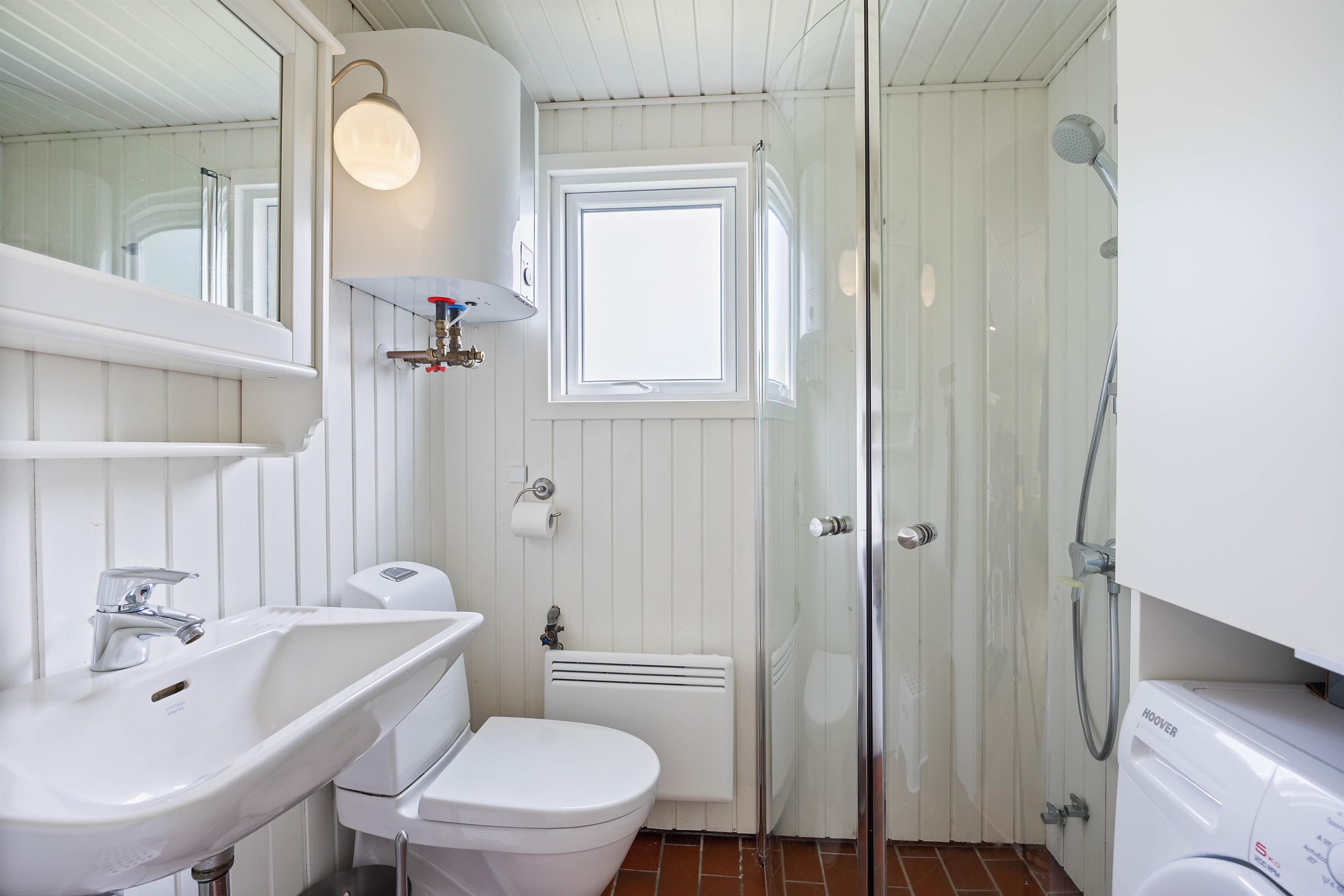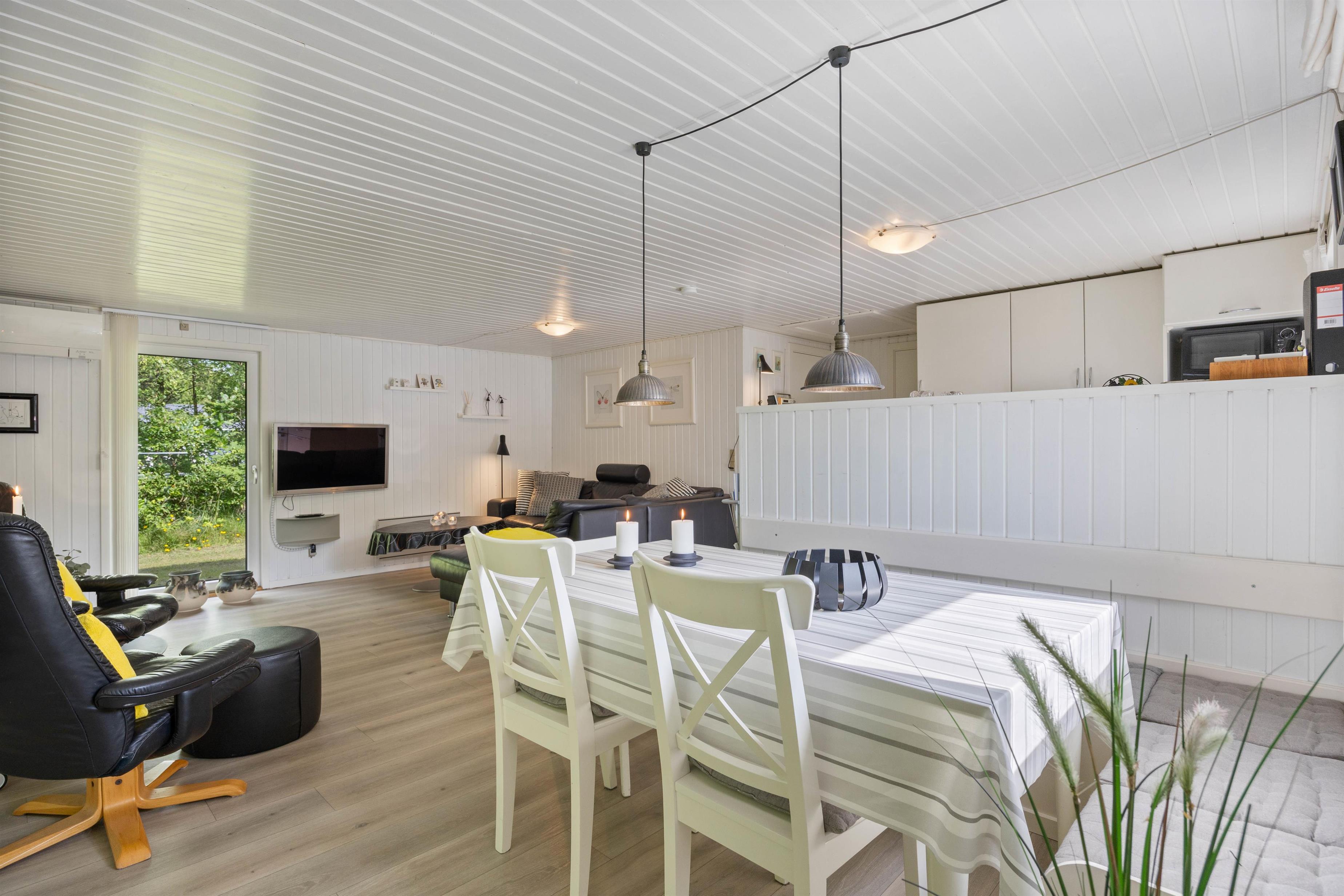 I det hyggelige køkken-alrum finder I brændeovnen og en energibesparende luft-til-luft-varmepumpe, der sørger for en behagelig temperatur uanset årstiden. I vil også finde en opvaskemaskine og en vaskemaskine, der letter de daglige huslige pligter, så I kan fokusere på at nyde jeres ferie.