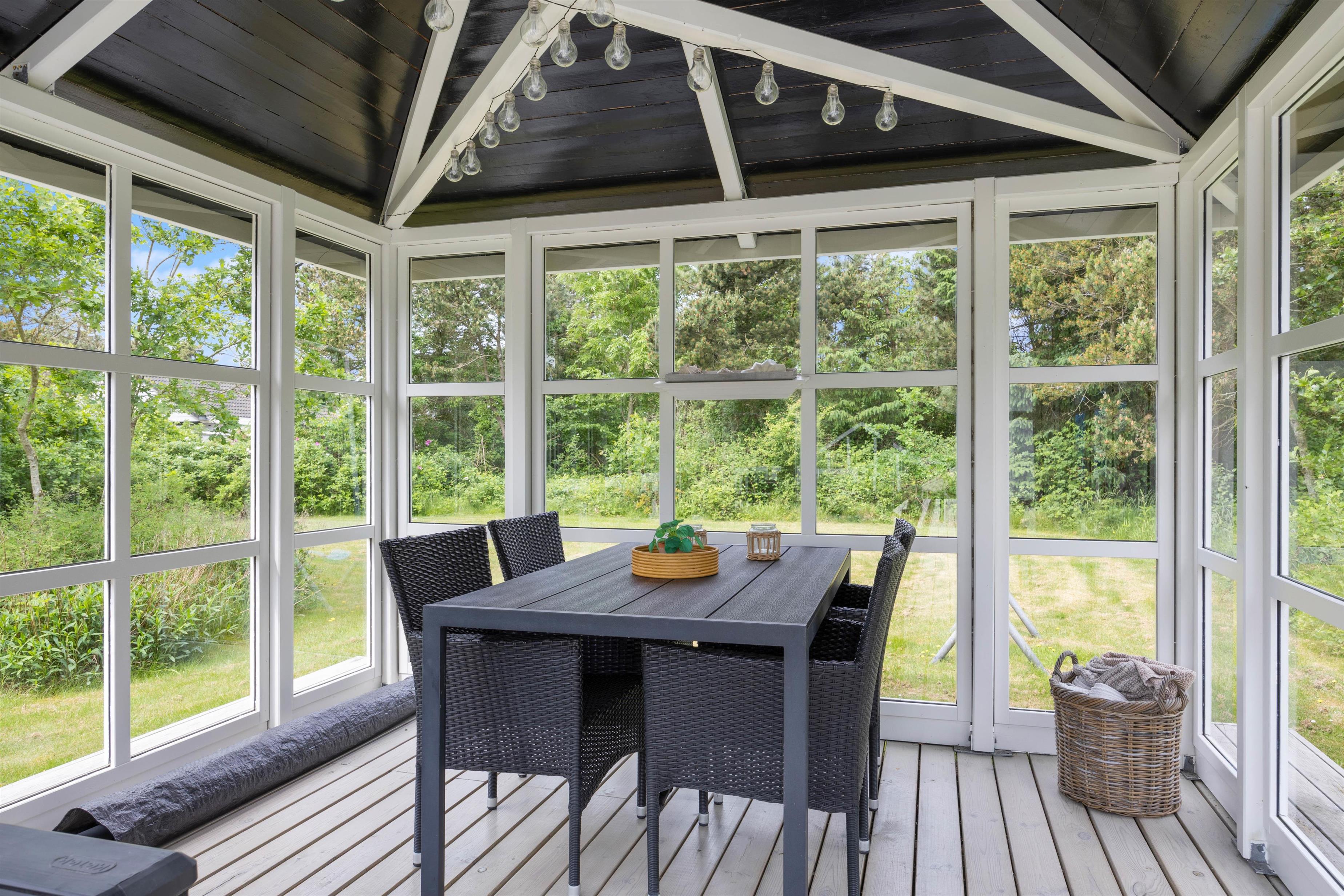Indenfor sørger de lyse og smagfulde omgivelser for en harmonisk og hjemlig stemning, så I straks vil falde til. Den stilrene og samtidig personlige indretning giver den perfekte blanding af traditionel og moderne sommerhusferie, så der er noget for enhver smag. Den åbne spisestue kommer til at danne rammerne om masser af nye ferieminder med gode grin over aftensmaden og sene aftener på sofaen foran den knitrende brændeovn.