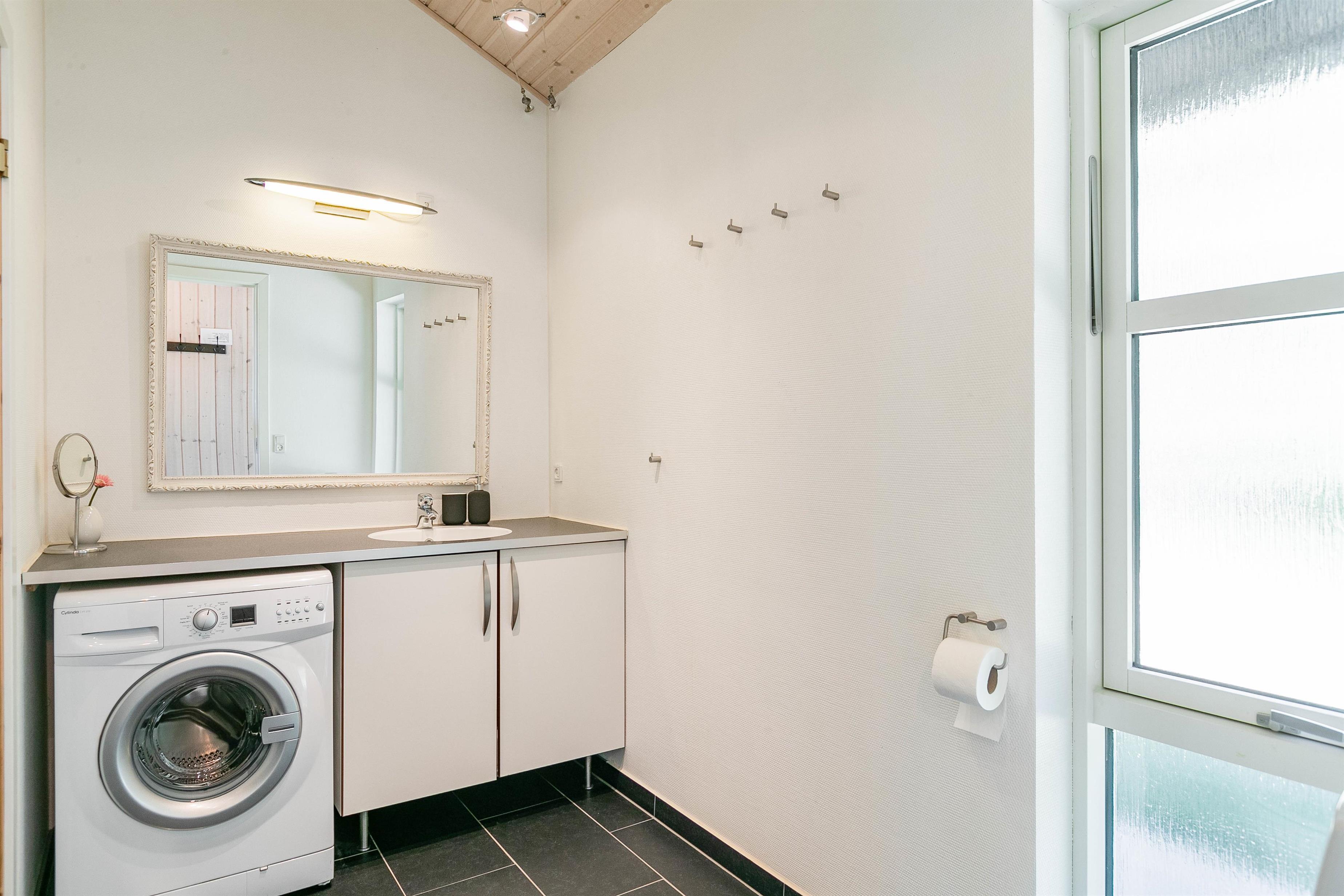Det åbne køkken og den hyggelige stue med spiseafdeling indbyder til sammenvær med familien. Det veludstyrede køkken i sommerhuset gør madlavningen til en sand fornøjelse. Her finder I en opvaskemaskine, der sikrer hurtig og nem rengøring, samt en praktisk 50 L separat fryser, der giver jer rigelig med plads til at opbevare alle jeres madvarer. Hvis I ønsker at nyde en ægte dansk grillmiddag, er der grill til rådighed sammen med komfortable havemøbler på den åbne terrasse. Perfekt til lune sommeraftener omgivet af natur.