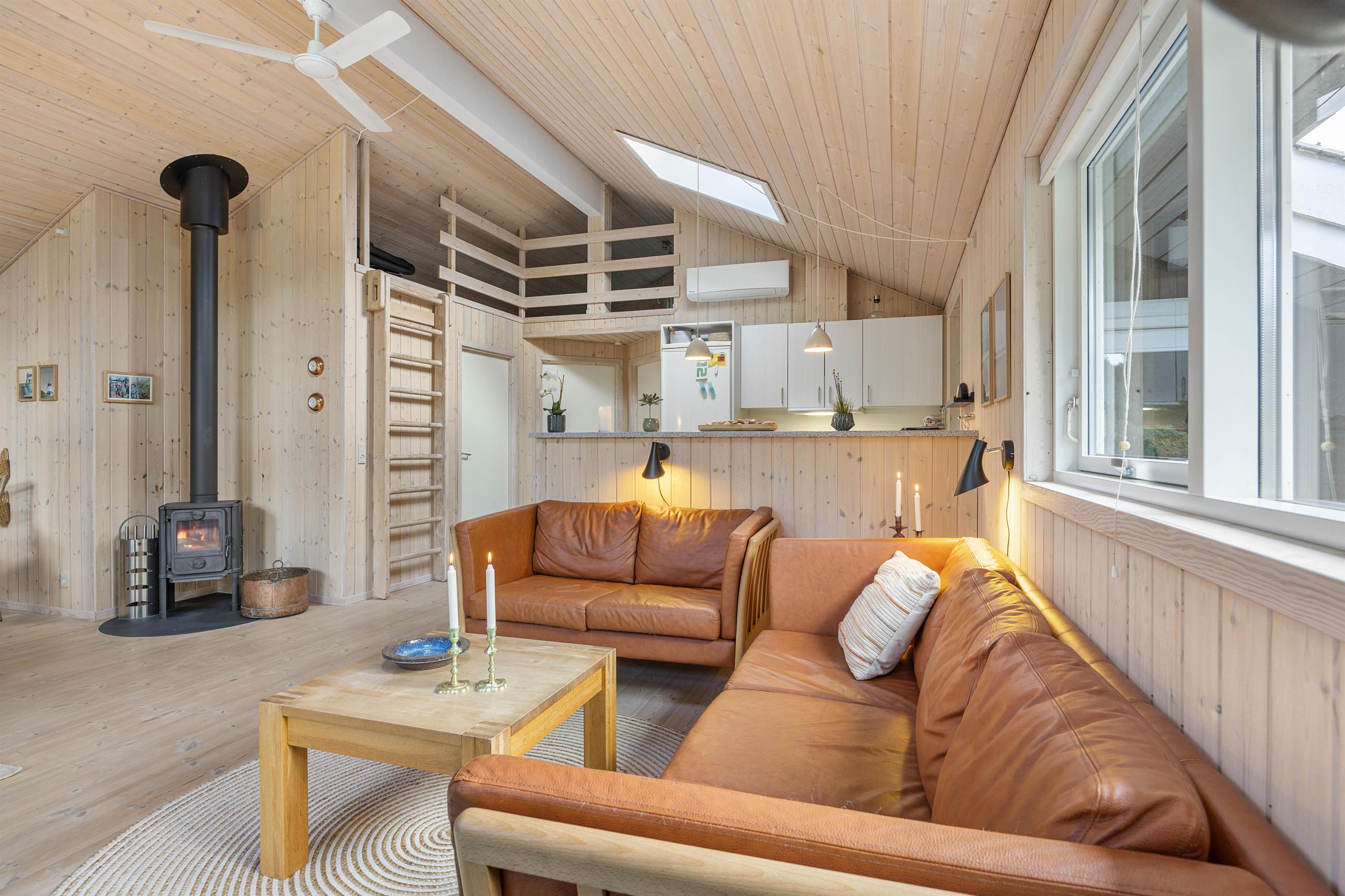 Så snart I træder indenfor på Klitrosevej 18, vil I uden tvivl føle jer hjertelig velkommen. For den lyse og indbydende rumlighed tager imod sine gæster med åbne arme. Sommerhuset består af et stort opholdsrum med loft til kip, hvor der både er dagligstue, spisestue og køkken. Her er masser af luft og albuerum, men alligevel har I følelsen af at være tæt på hinanden.