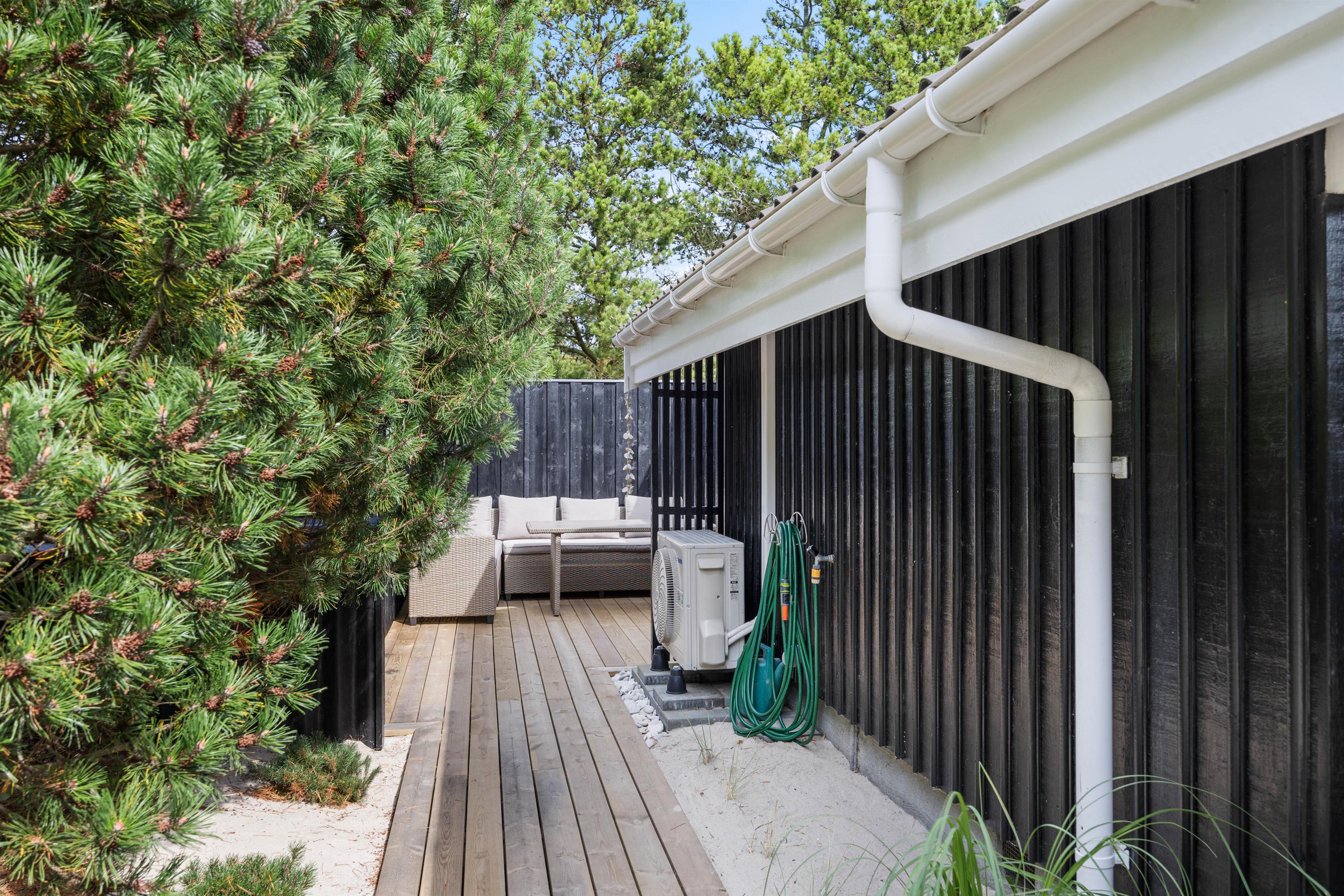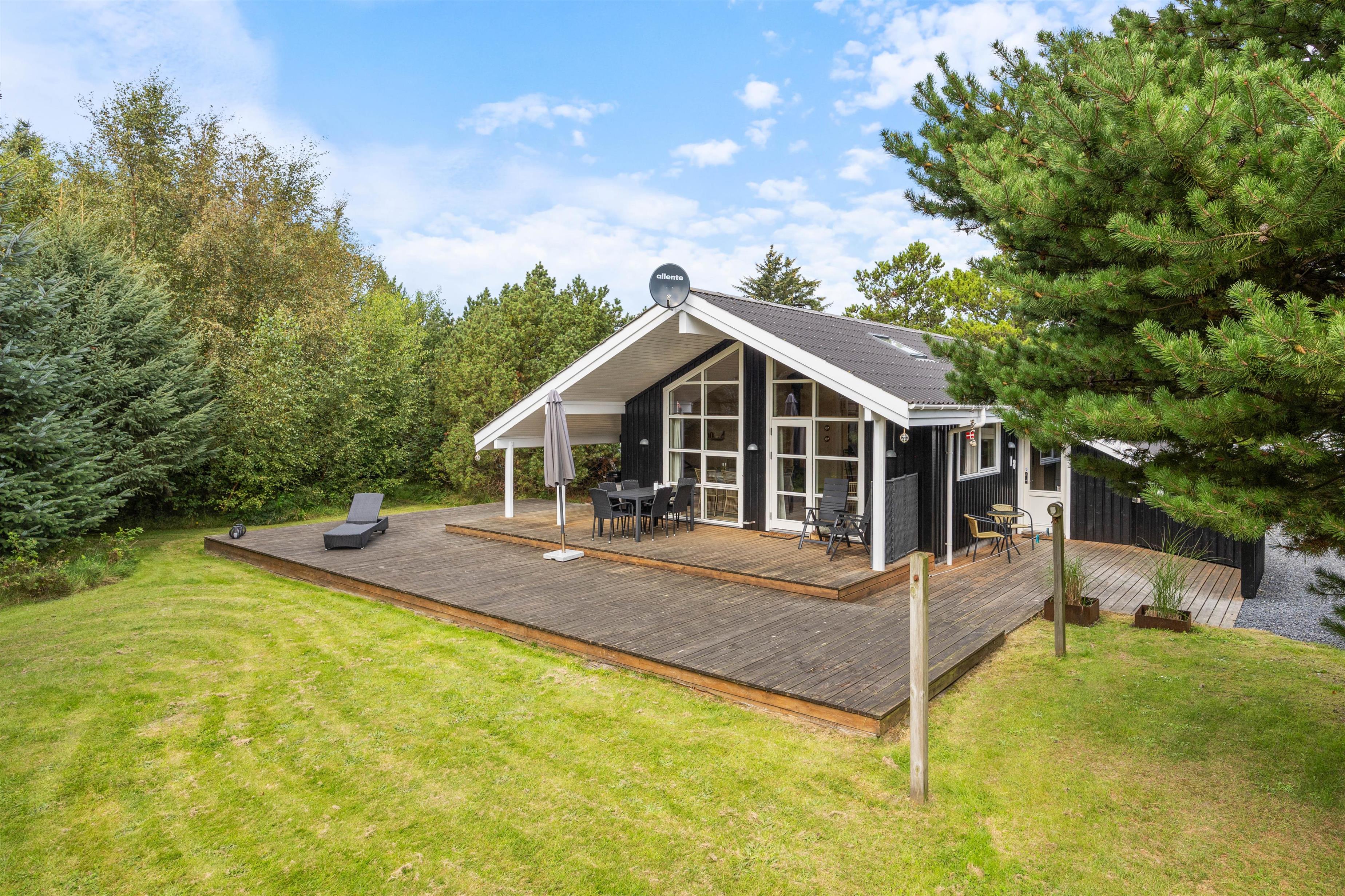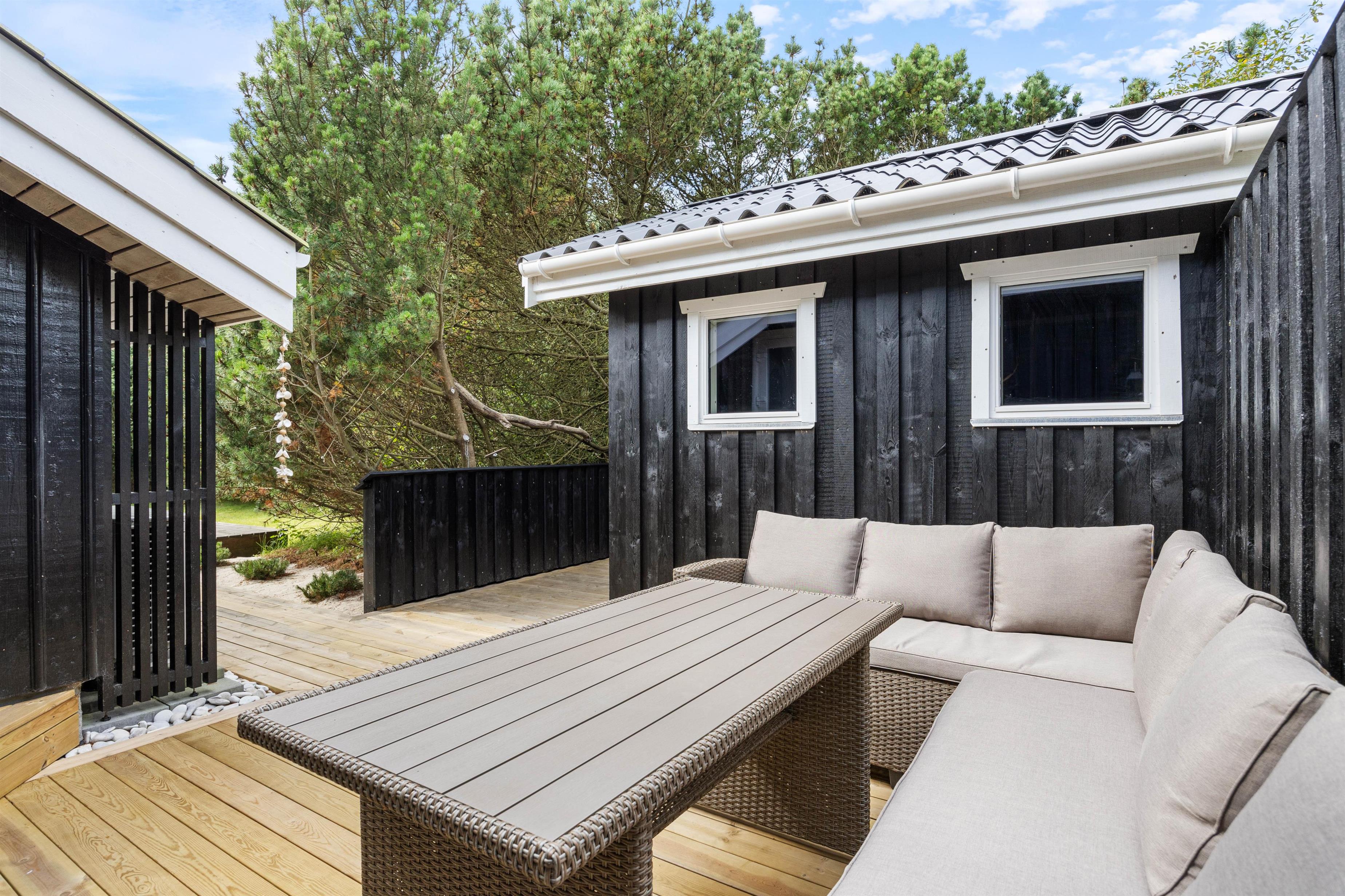 Omgivelserne på Klitrosevej er ideelle for familieferien. Her er der masser af udendørsrum, hvor både børn og voksne kan slå sig løs. Den dejlige naturgrund består af en stor, grøn plæne, der ligger belejligt omgivet af træer og buske. Det afskærmer grunden, så I føler det som om, I befinder jer i jeres eget lille ferieparadis.