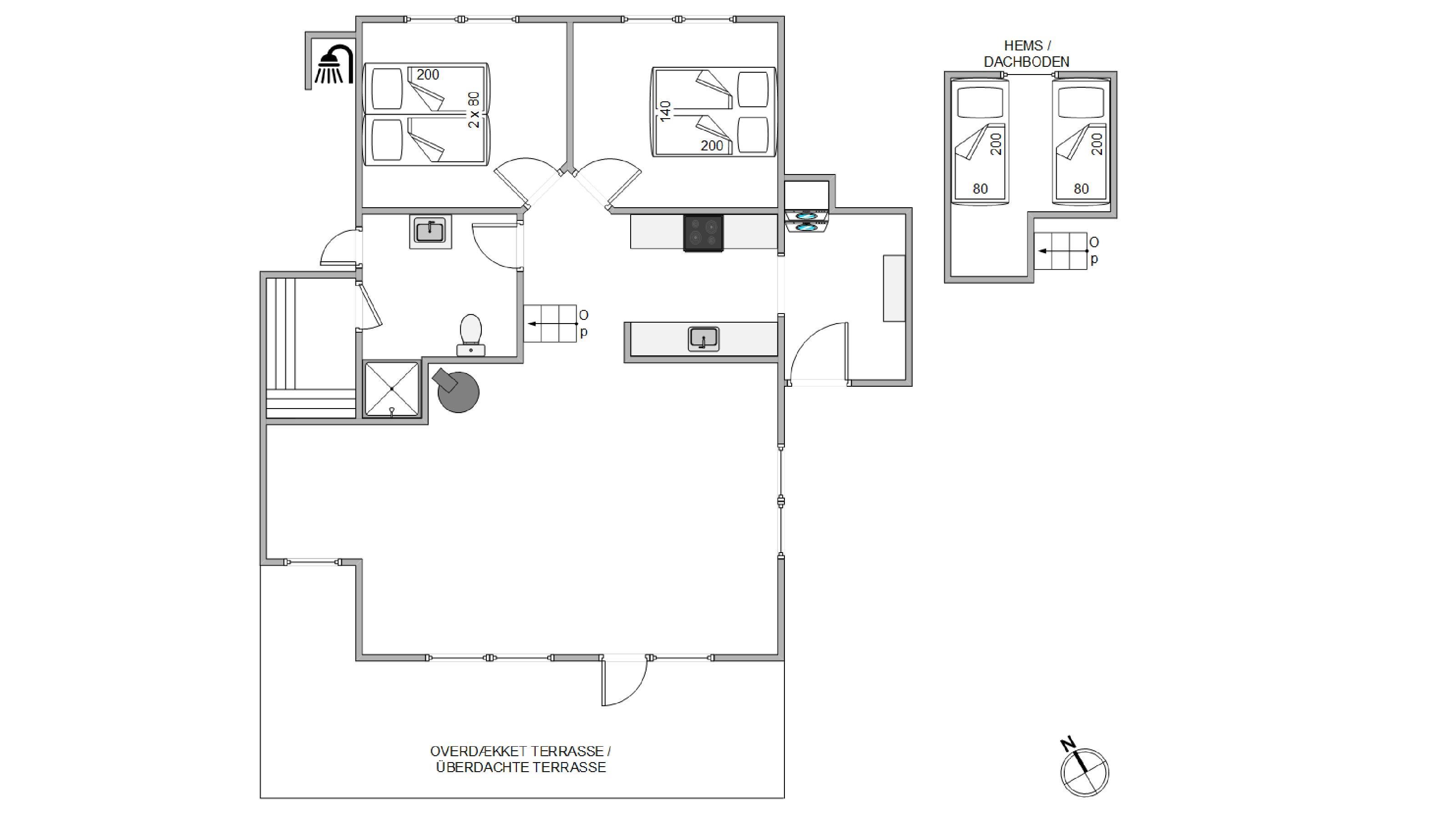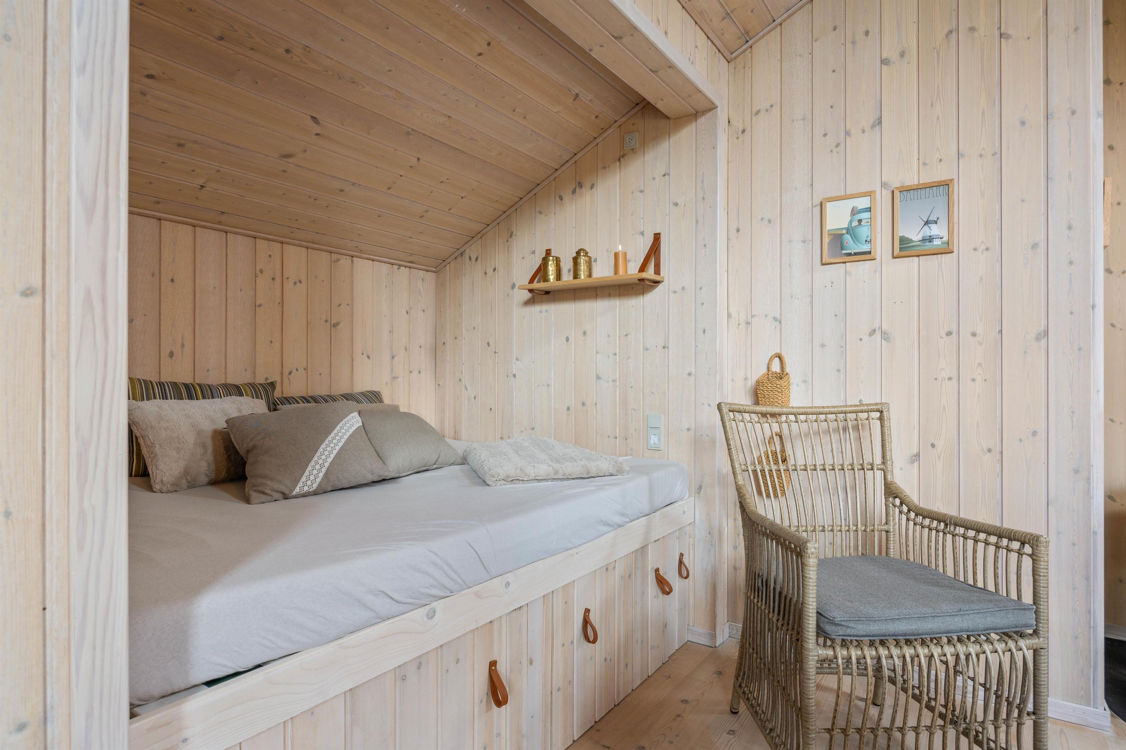 Foruden det store opholdsrum er sommerhuset indrettet med yderligere 2 værelser med dobbeltseng, samt en hems med 2 sovepladser. Et oplagt sovested for familiens yngste, og der vil med sikkerhed være rift om pladserne.
