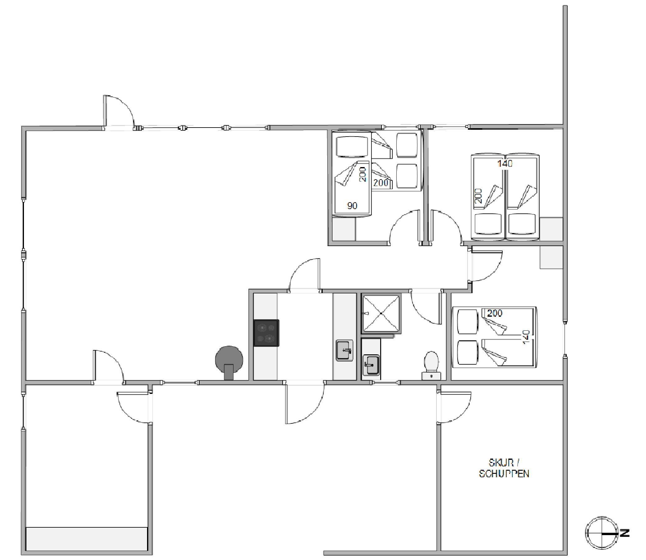 Sommerhuset har tre fantastiske soverum, hvoraf hvert værelse er indrettet med komfort og hygge for øje. Det ene soverum er ekstra specielt og vil helt sikkert vække begejstring hos børnene - det har nemlig en 'svævende' køjeseng, som er en sjov og unik måde at sove på.