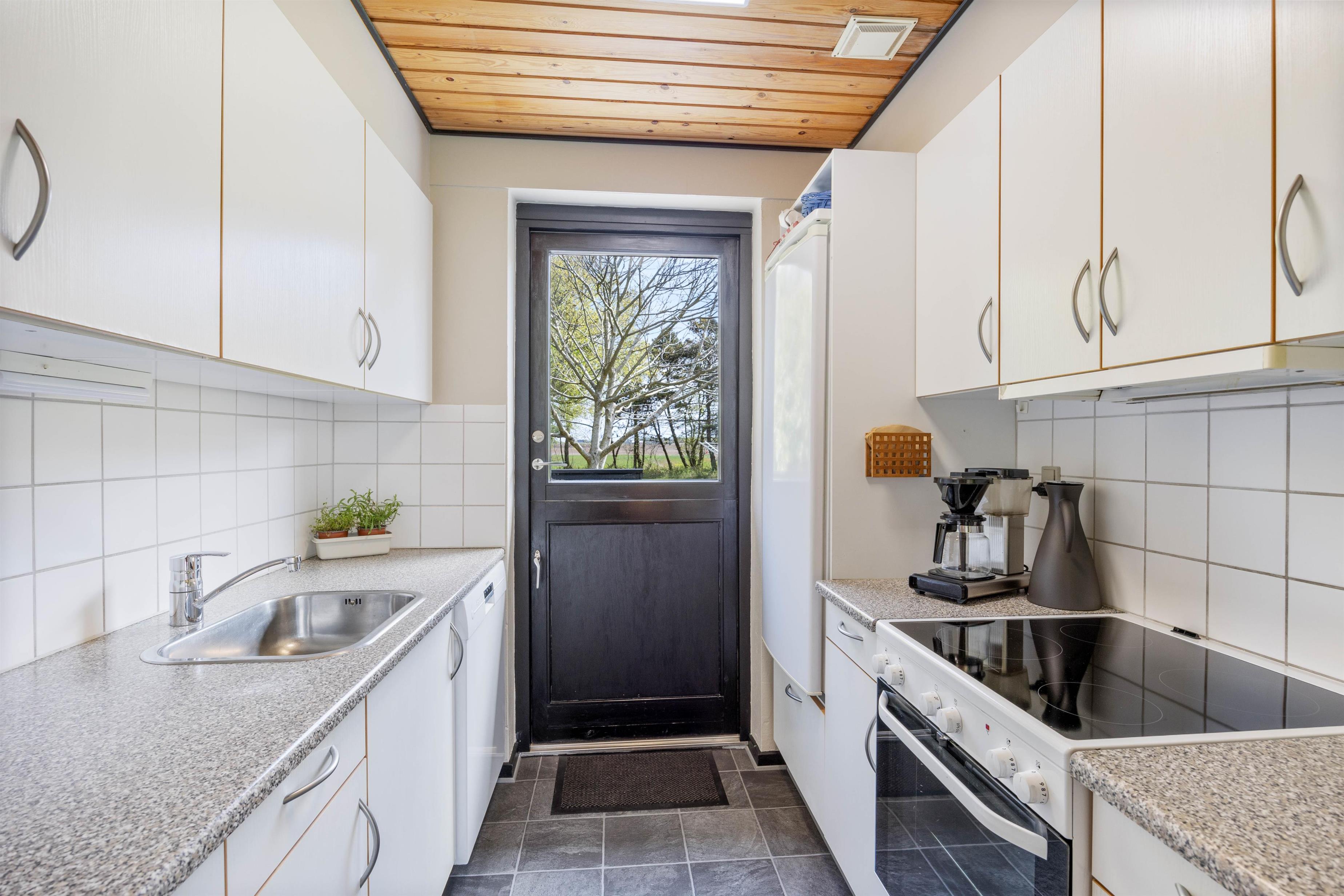 Køkkenet - det er superhyggeligt og rummeligt, så du kan tilberede lækker feriemad i ro og mag. Der er god plads på køkkenbordet og i køleskabet til alle jeres madvarer, og du vil elske at tilberede måltider i dette køkken. Opvaske klares heldigvis af opvaskemaskinen. Efter en lang dag med sol og sjov, vil du elske at slappe af i det hyggelige sofahjørne i stuen. Der er rigelig plads til alle, og du kan nyde varmen fra brændeovnen, mens du spiller brætspil eller ser fjernsyn. Det er den perfekte måde at tilbringe aftenen på og skabe gode minder med dine nærmeste.