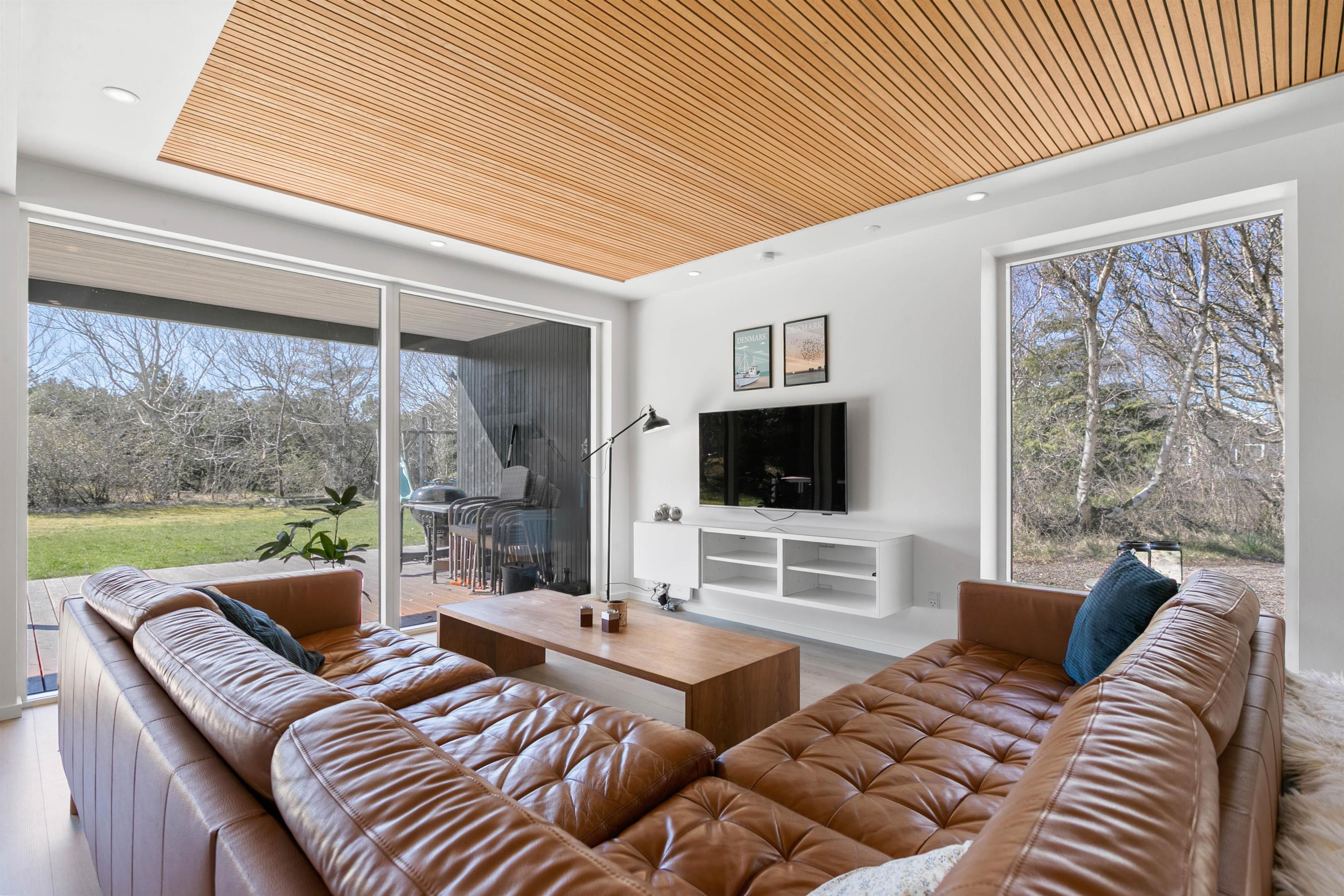 I stuen sørger brændeovnen for at gøre indretningen ekstra hyggelig: Brændeovnen står året rundt klar til at varme jer igennem indendørs, mens vildmarksbadet sørger for varm afslapning udendørs. På badeværelset er der gulvvarme, sådan at I ikke fryser tæerne om morgenen.