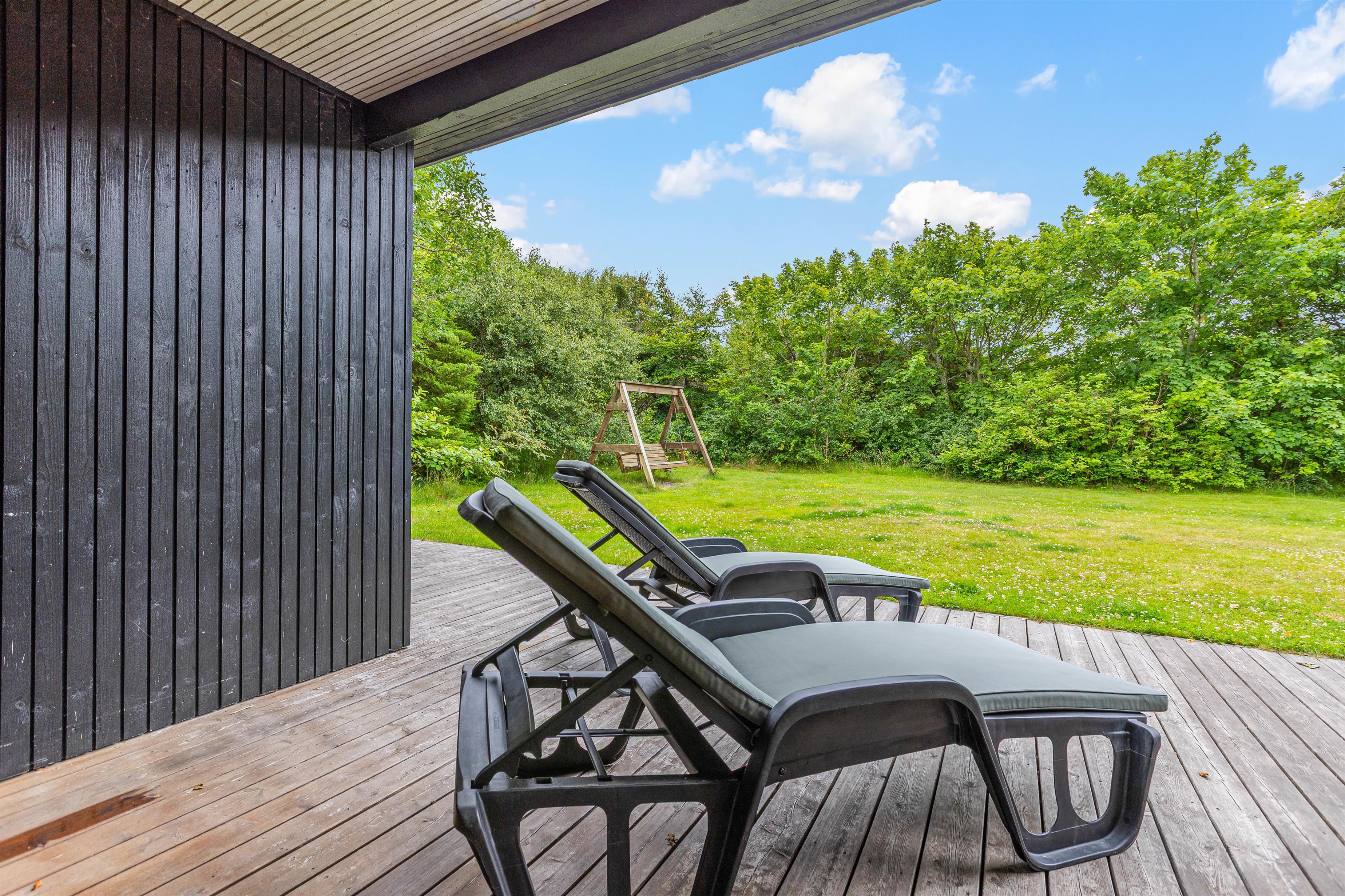Feriehuset ligger på en stor naturgrund på Lodbjerg hede. Her har I fred og ro og kan læne jer tilbage på liggestolene og solbade. Der er også tænkt på børnene: Et gyngestativ og en sandkasse giver børnene flere timers sjov og leg.