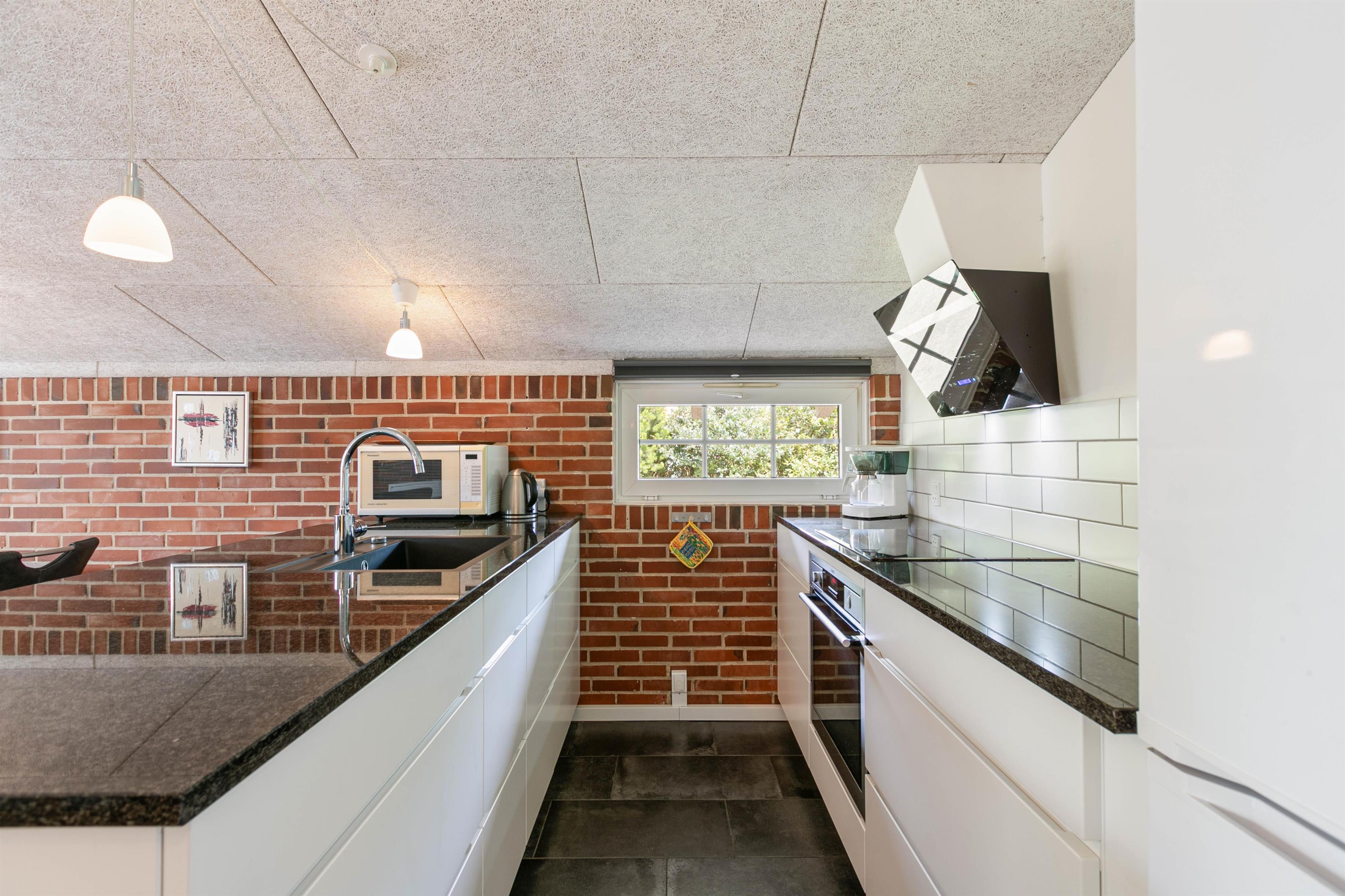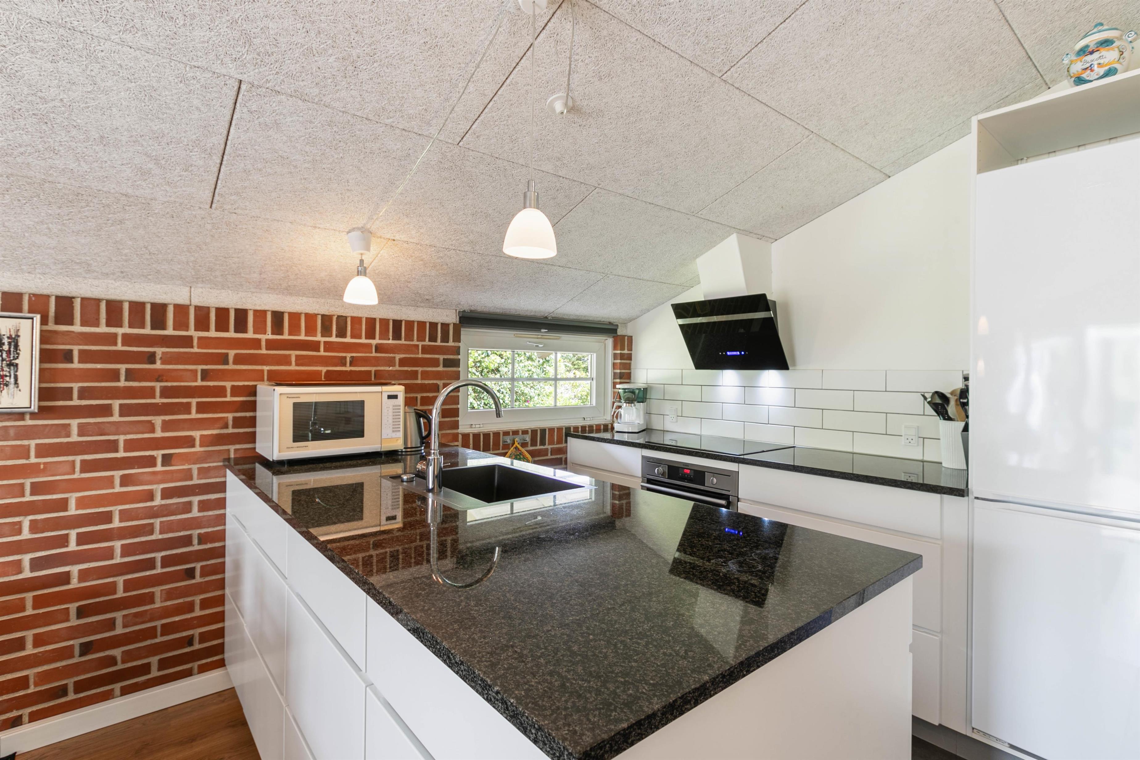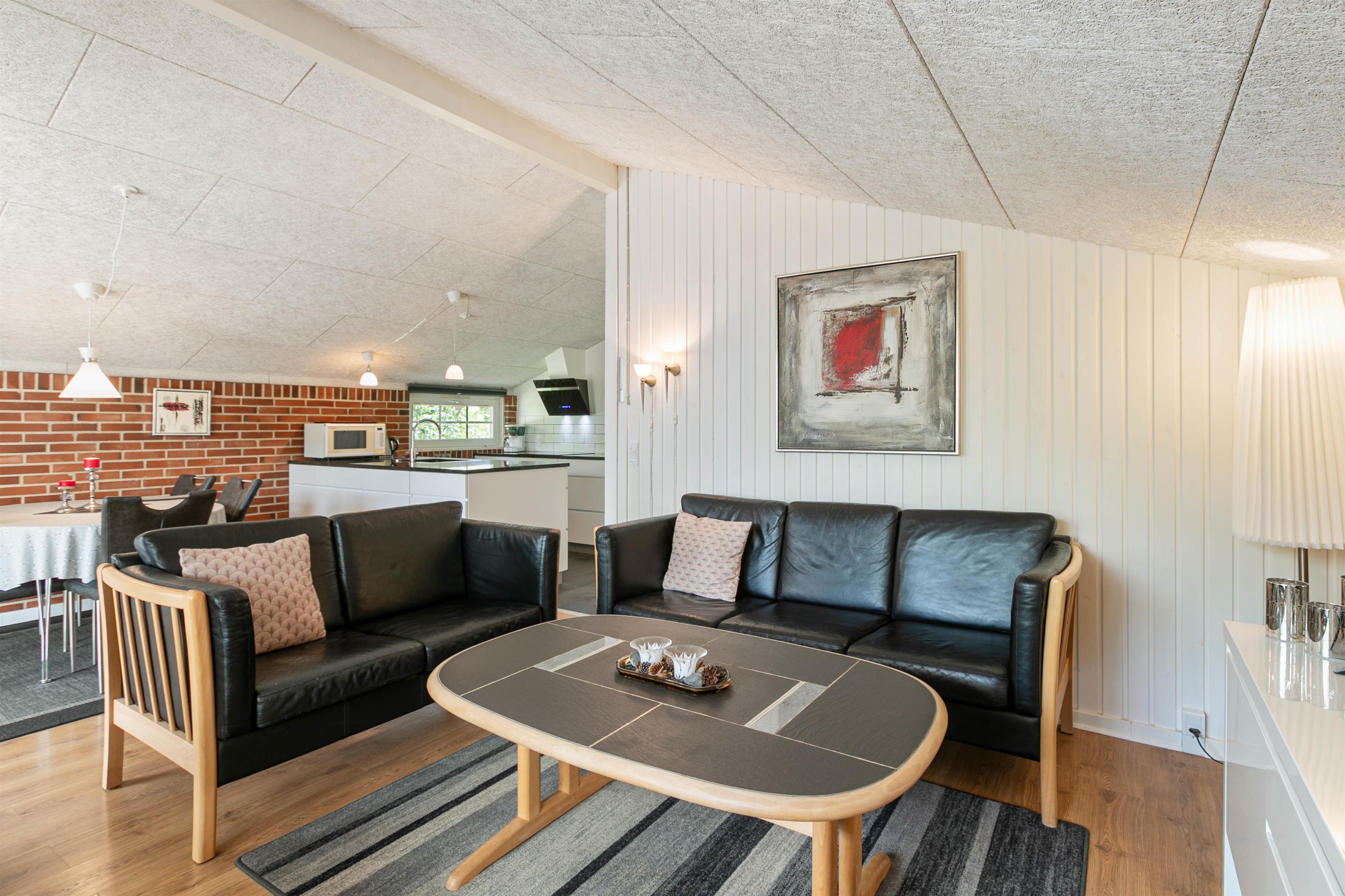 I vil hurtigt falde til i den hyggelige indretning med pejseindsats i alrummet samt en energivenlig varmepumpe, som sikrer en behagelig temperatur i feriehuset året rundt. Der er desuden gulvvarme i alle klinkebelagte områder, så I ikke behøver at fryse fødderne.