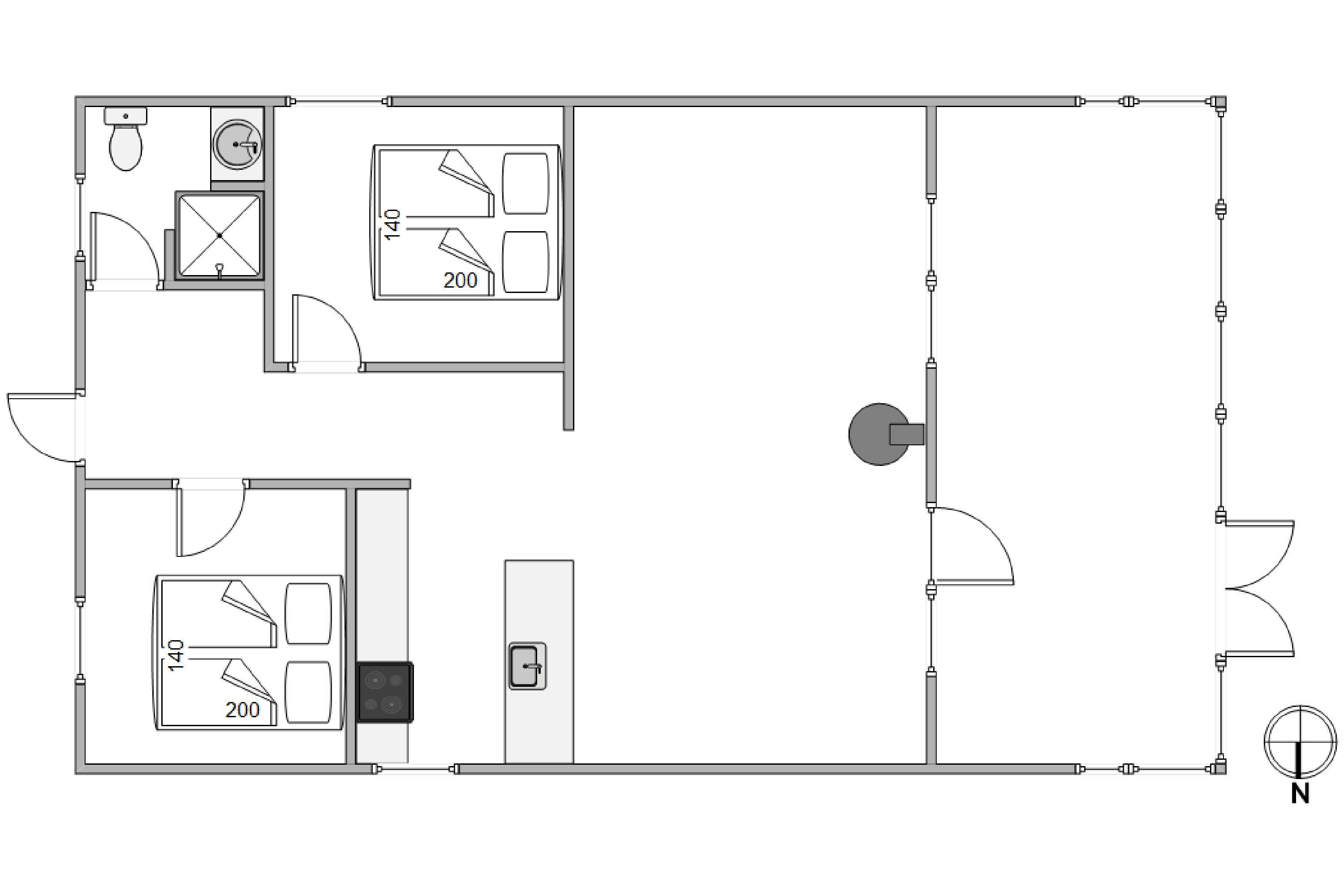 I feriehuset er der en Chromecast til rådighed, hvor fra I kan streame imens I er på ferie, og med en gratis internetforbindelse kan I være online på jeres medbragte devices. Sovepladserne er fordelt på to soveværelser med dobbeltsenge (140x200), og der er god skabsplads, så I hurtigt kan få pakket kufferterne ud.