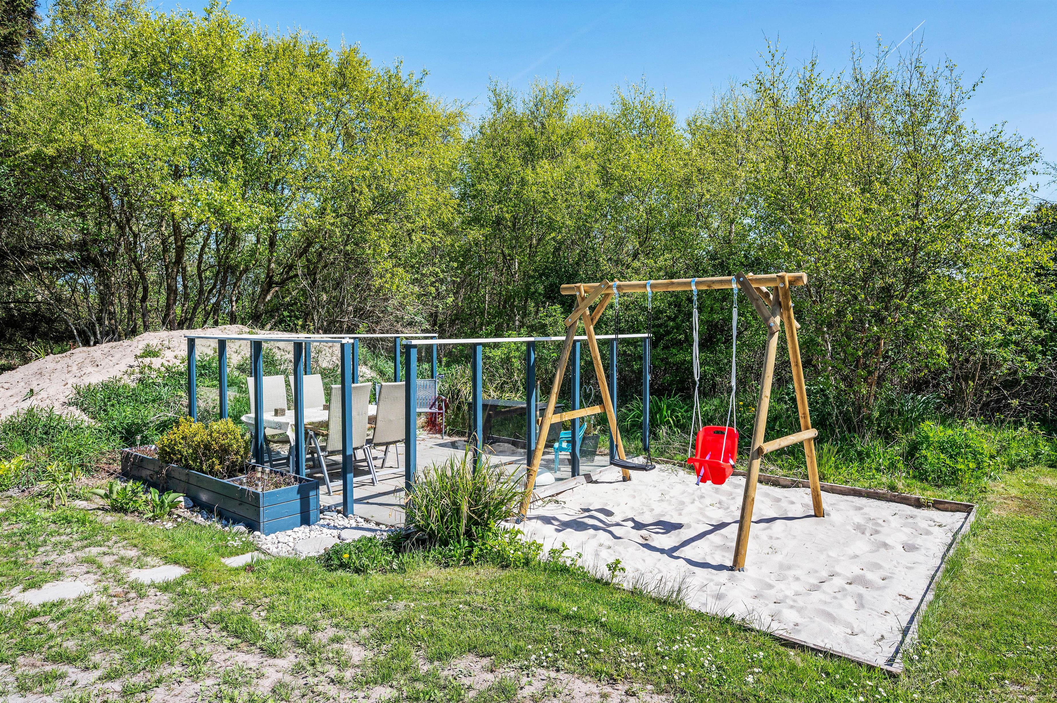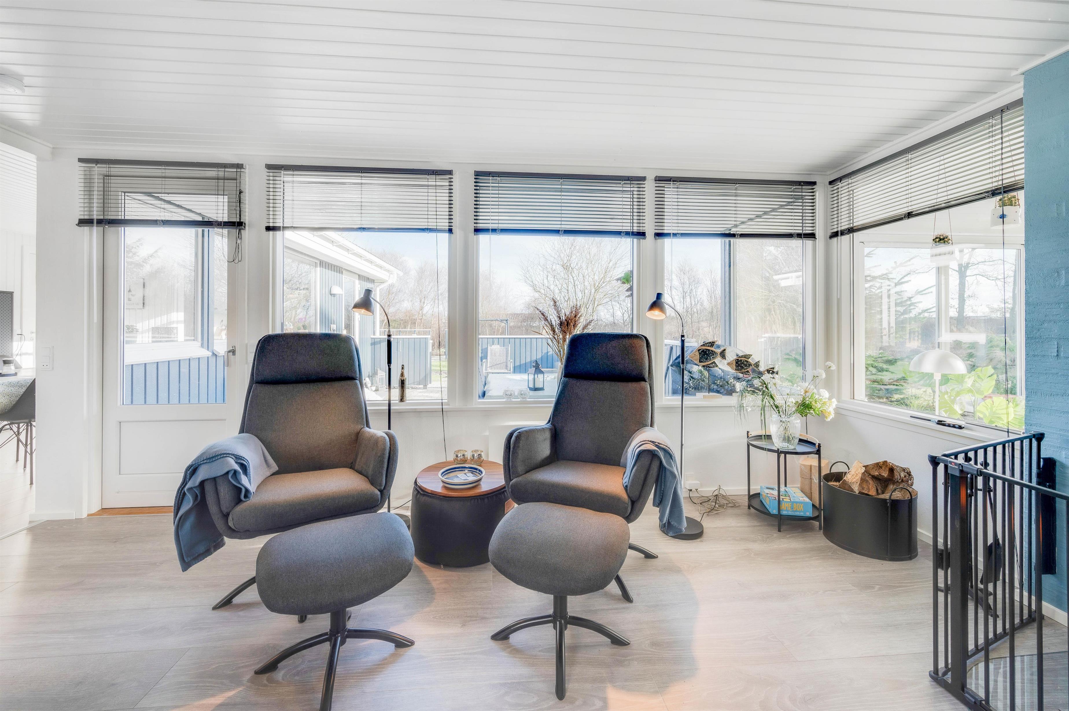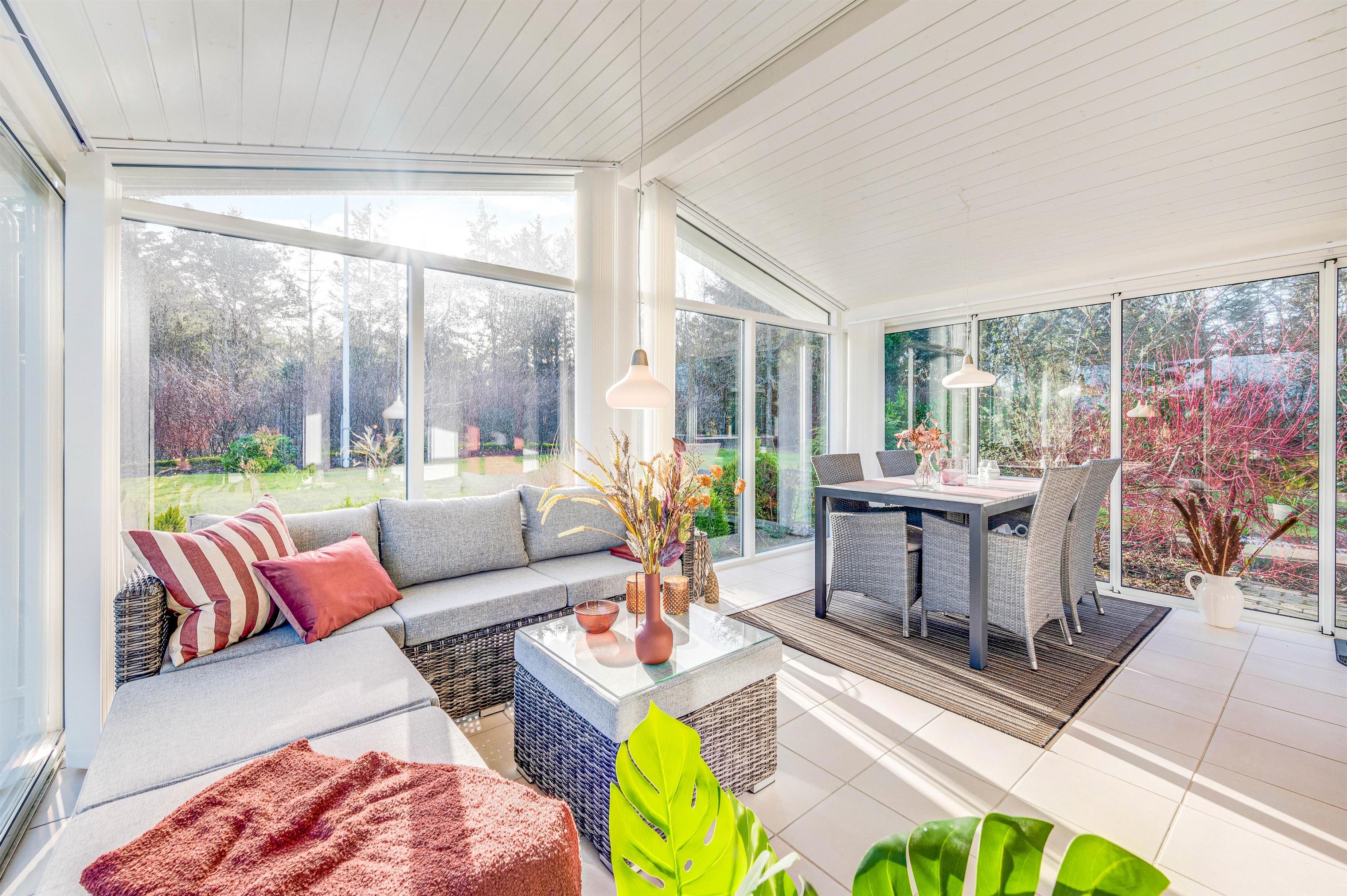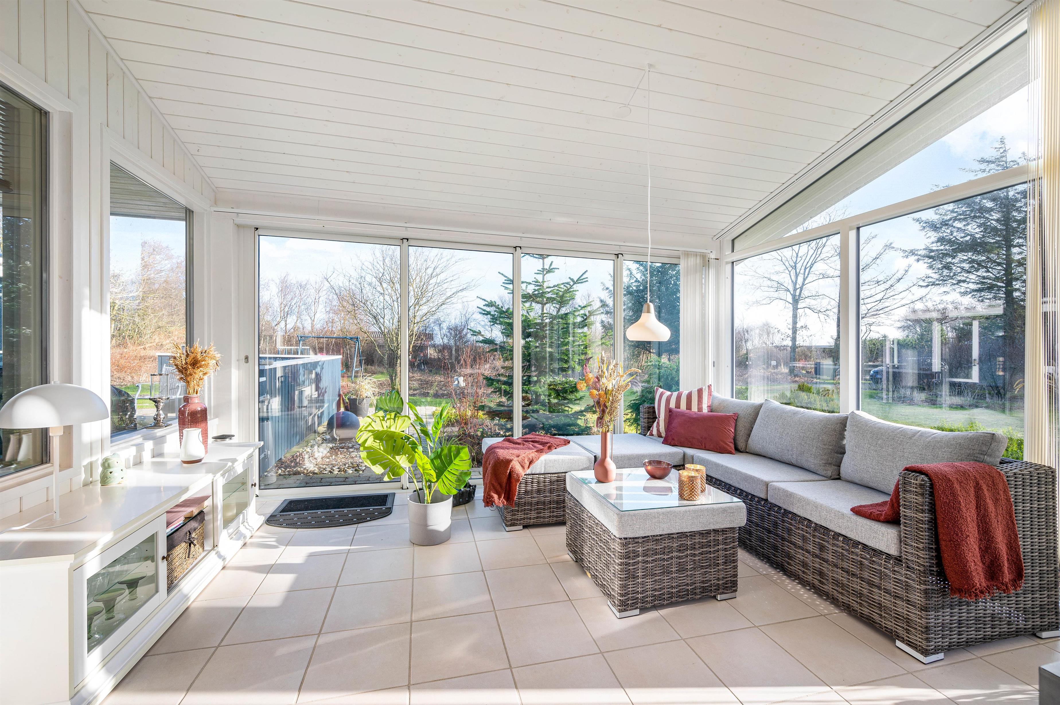 Derudover er sommerhuset indrettet med en lækker udestue, hvor I uden tvivl vil komme til at tilbringe mange dejlige timer sammen om aftenen eller på de lidt køligere feriedage.Herfra vil I uden problemer kunne holde øje med børnene, imens de leger i haven eller tager sig en rask gyngetur. I kan desuden på de lidt varmere sommerdage være lige i nærheden, imens børnene gynger, da feriehuset råder over en lille hyggekrog udenfor.