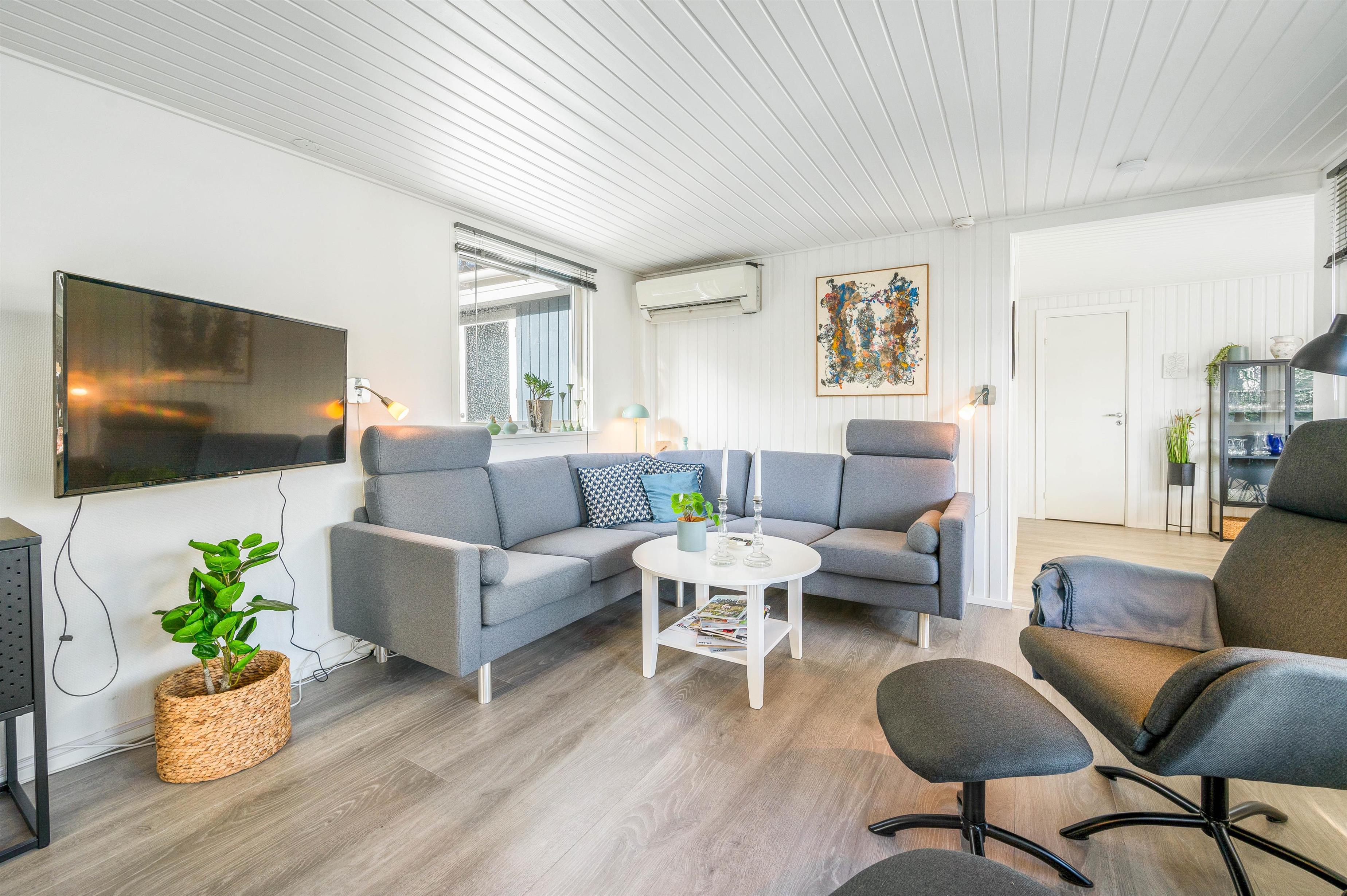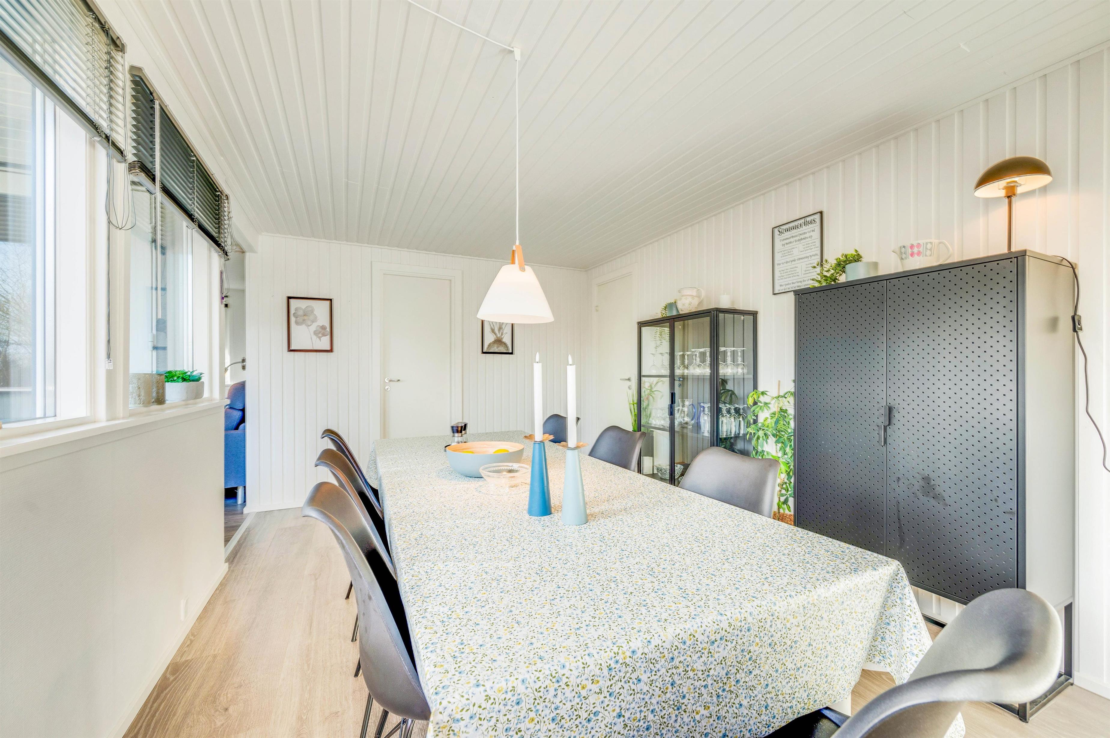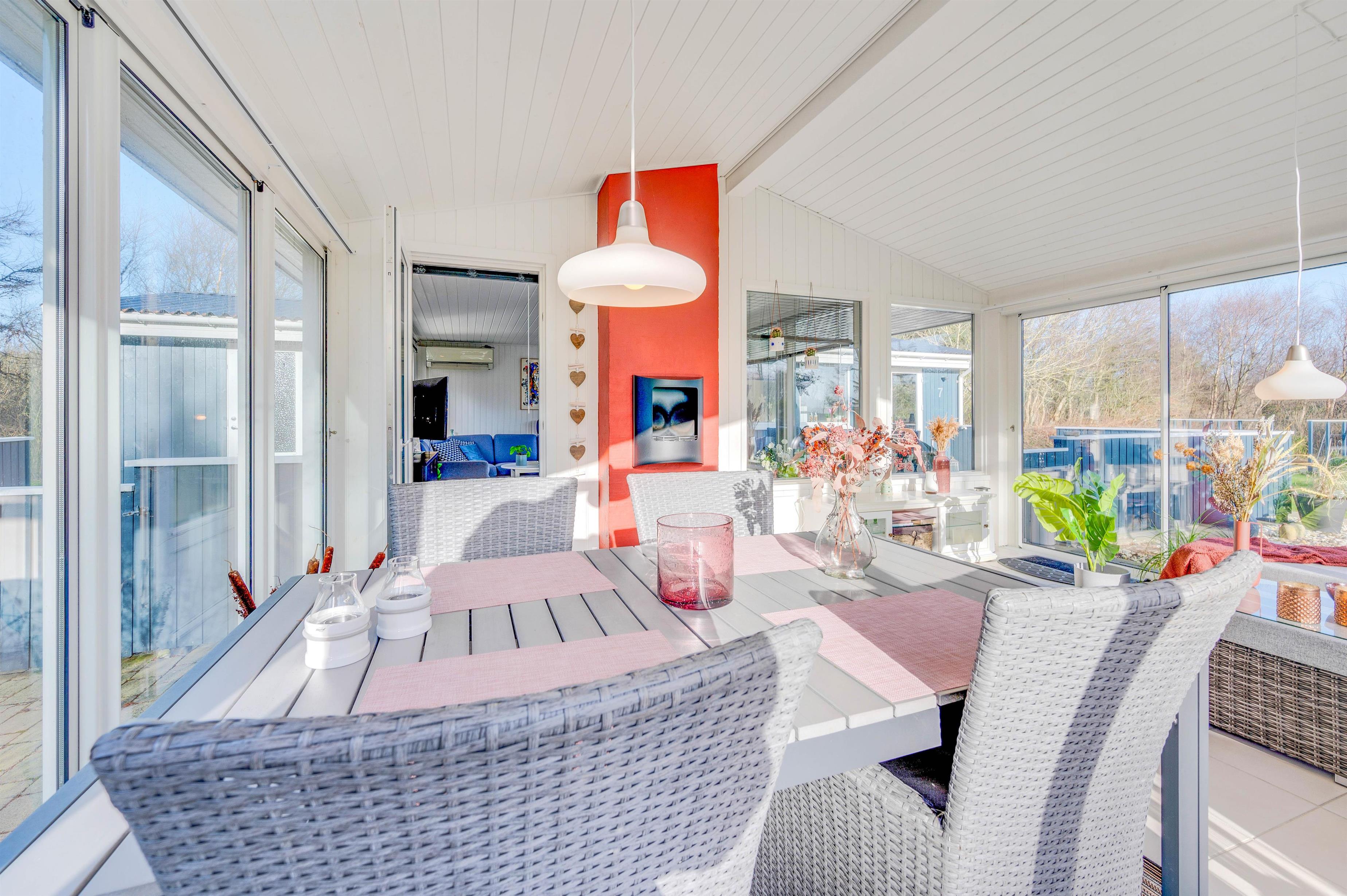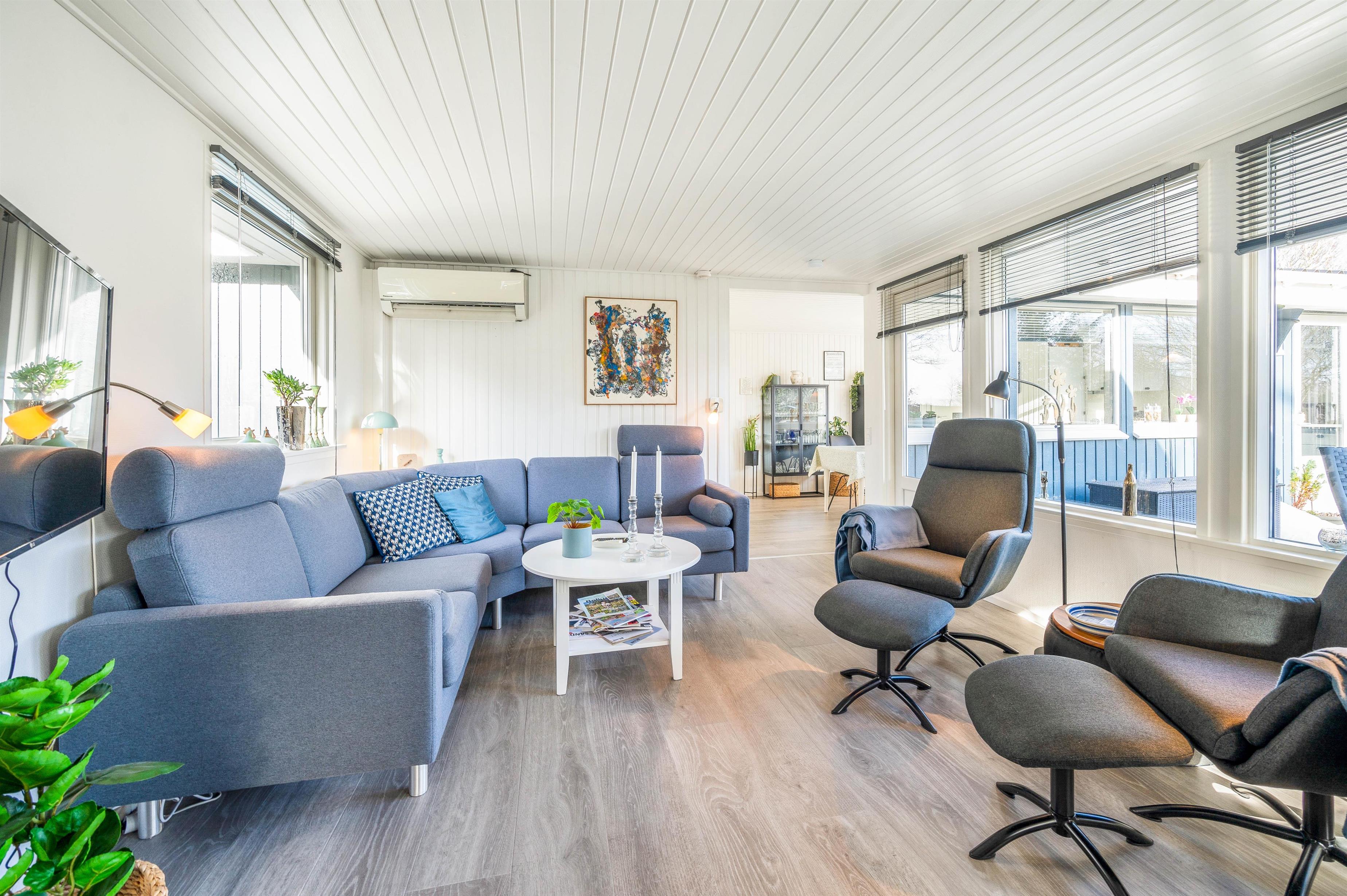 Derudover er sommerhuset indrettet med en lækker udestue, hvor I uden tvivl vil komme til at tilbringe mange dejlige timer sammen om aftenen eller på de lidt køligere feriedage.Herfra vil I uden problemer kunne holde øje med børnene, imens de leger i haven eller tager sig en rask gyngetur. I kan desuden på de lidt varmere sommerdage være lige i nærheden, imens børnene gynger, da feriehuset råder over en lille hyggekrog udenfor.