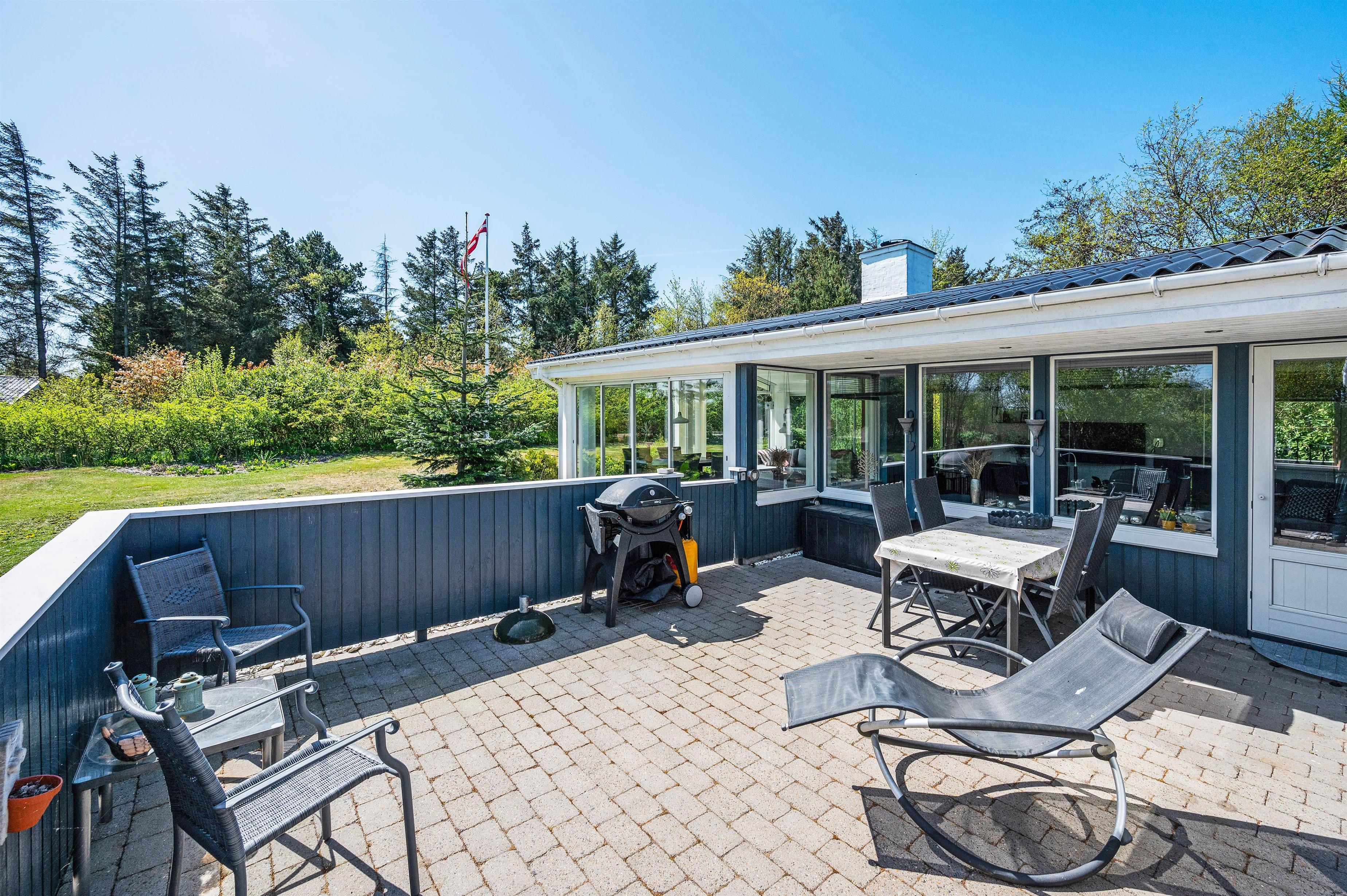 Feriehusets tilhørende terrasse byder på mange timers hygge på de lune sommeraftener. Terrassen er indrettet således, at I har mulighed for at opholde jer her uanset vejret. Efter en rask gåtur i området kan I være sammen om at tilberede et lækkert aftenmåltid på gasgrillen, der hører til feriehuset samtidig med, at I nyder en kold drink eller lignende. På de solrige dage kan I drage nytte af feriehusets havemøbler, hvor I i ro og mag kan nyde hinandens selskab.